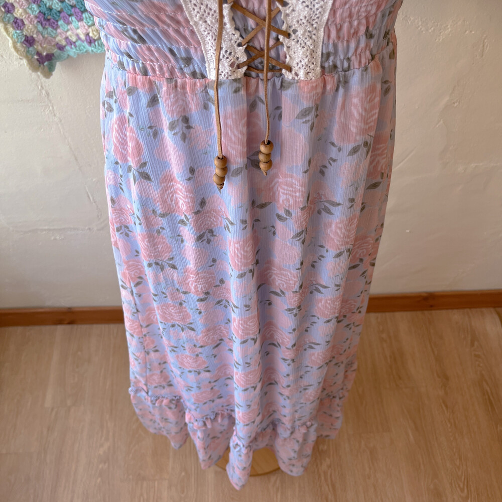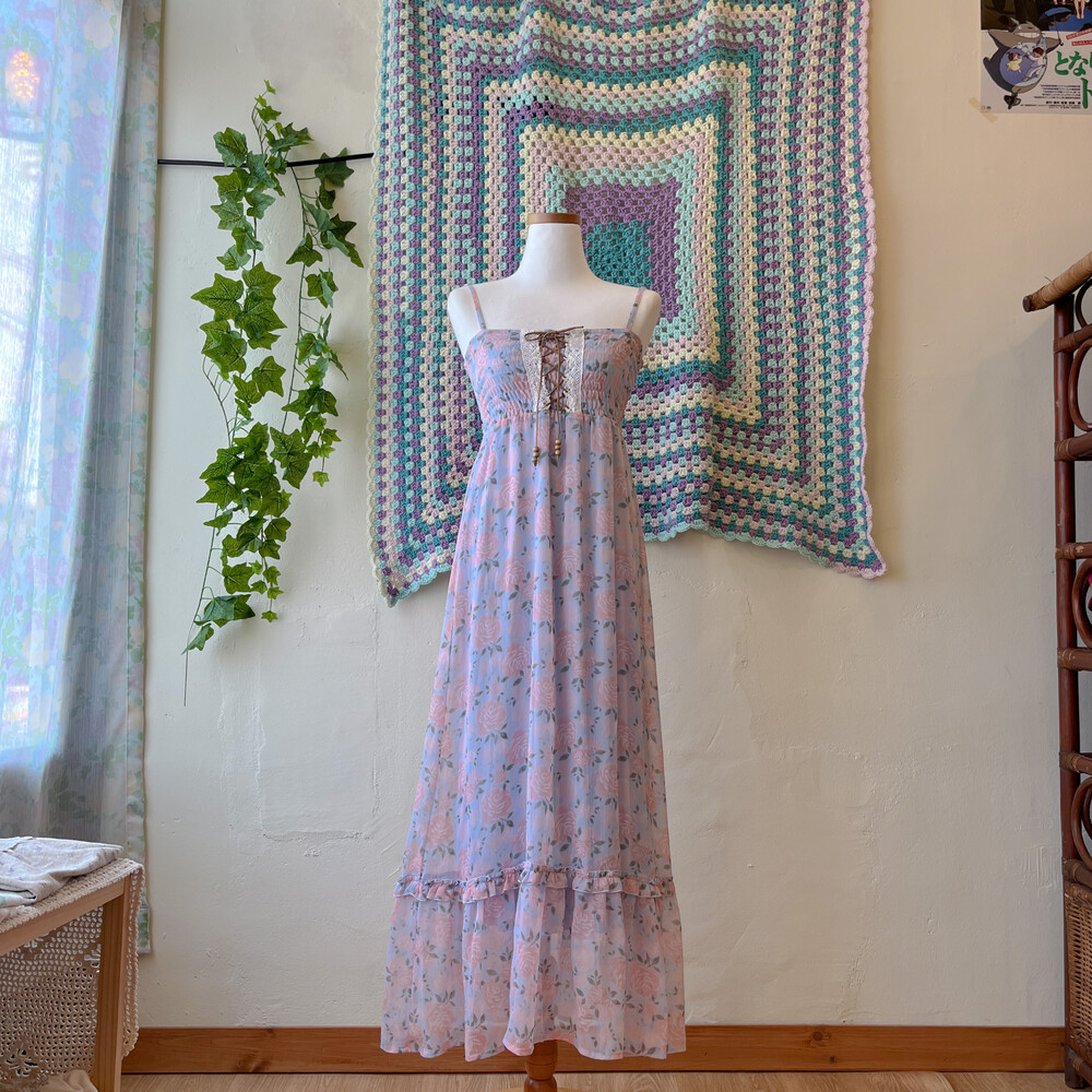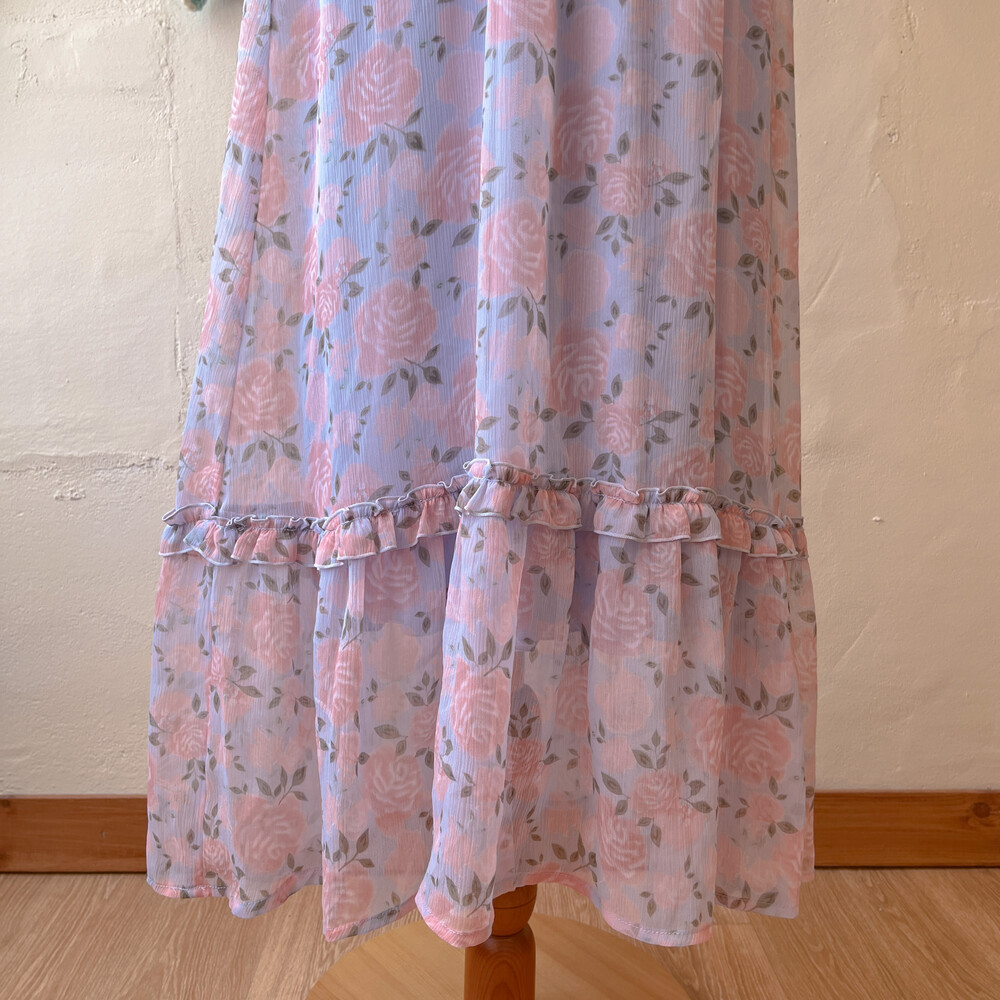 꽃무늬 쉬폰 아일렛 끈원피스예요