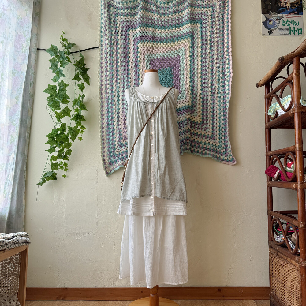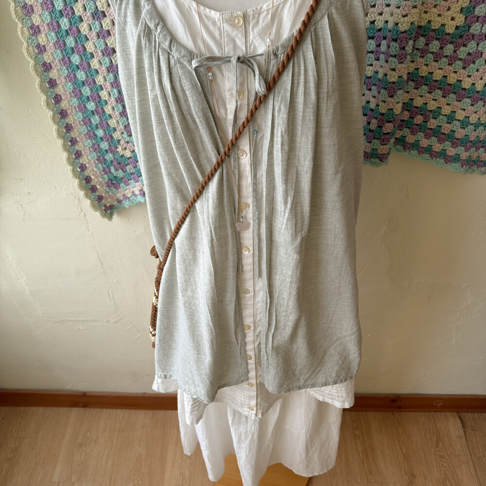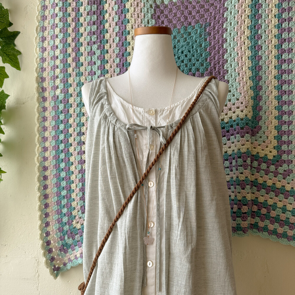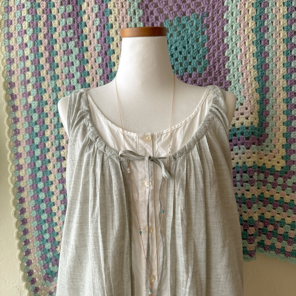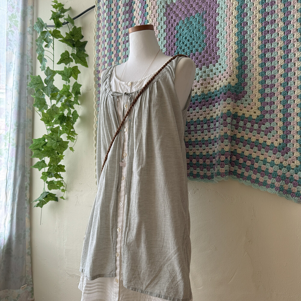 gray sleeveless layered button tunic