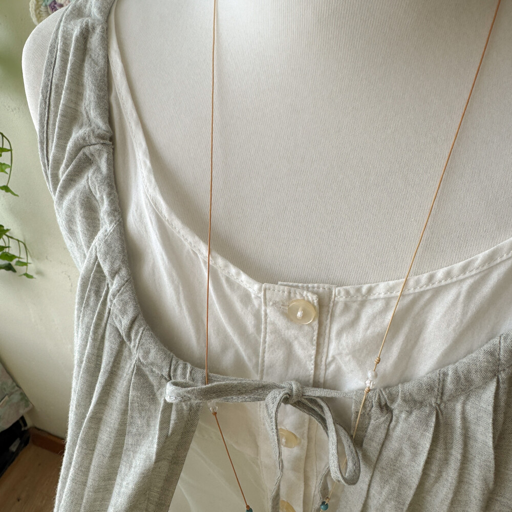연그레이 색감의 민소매 코튼 바선생 원피스예요