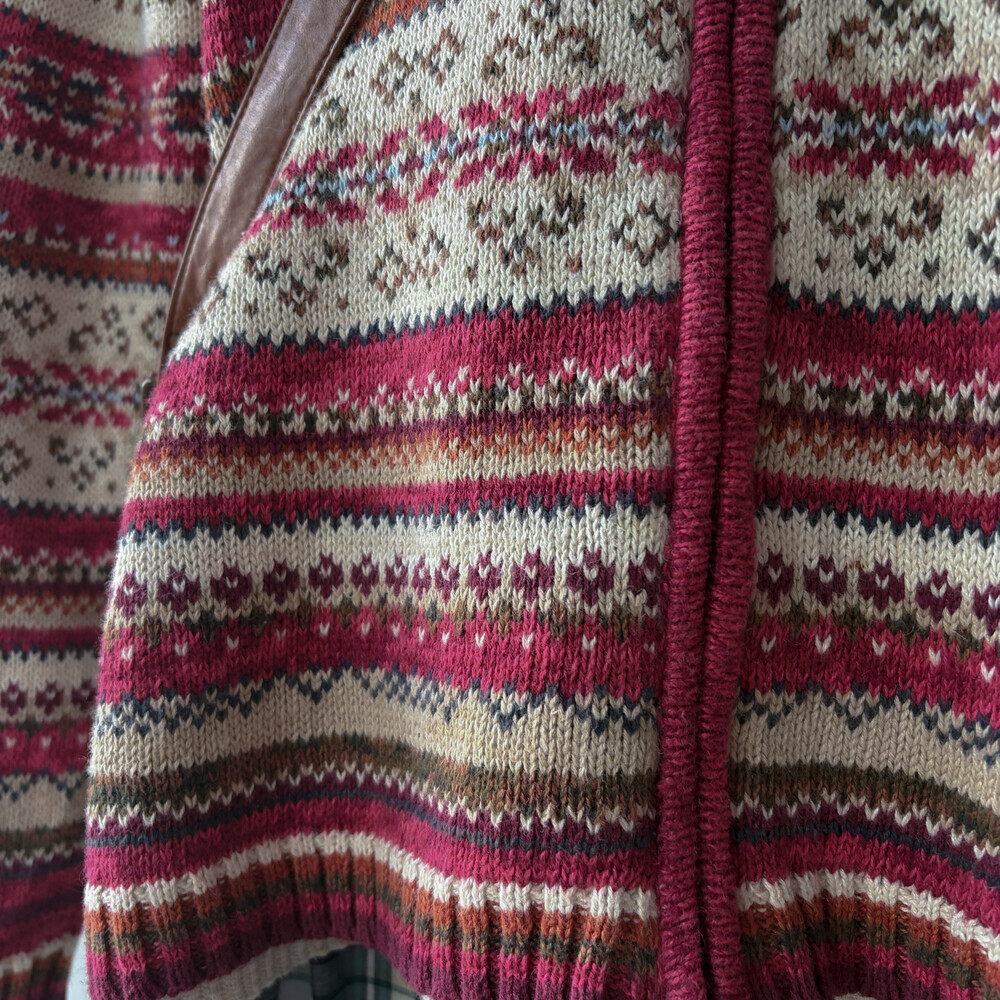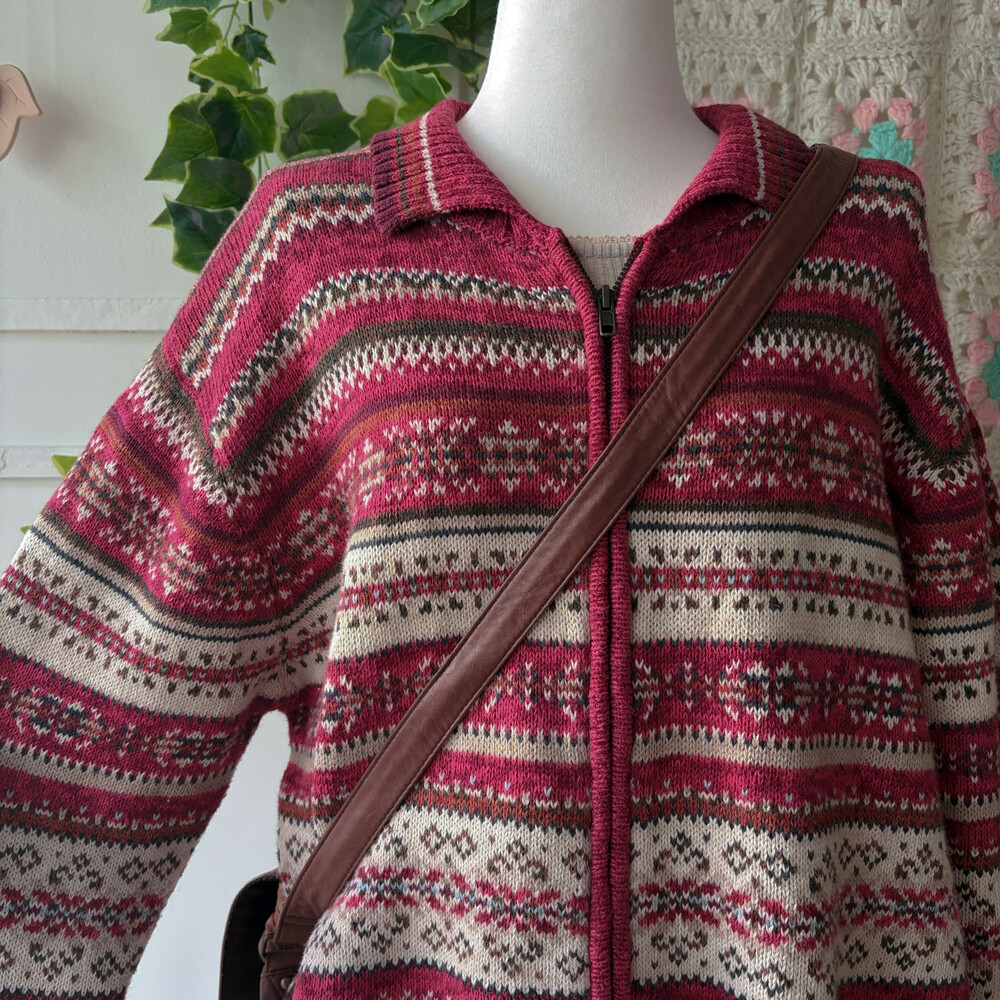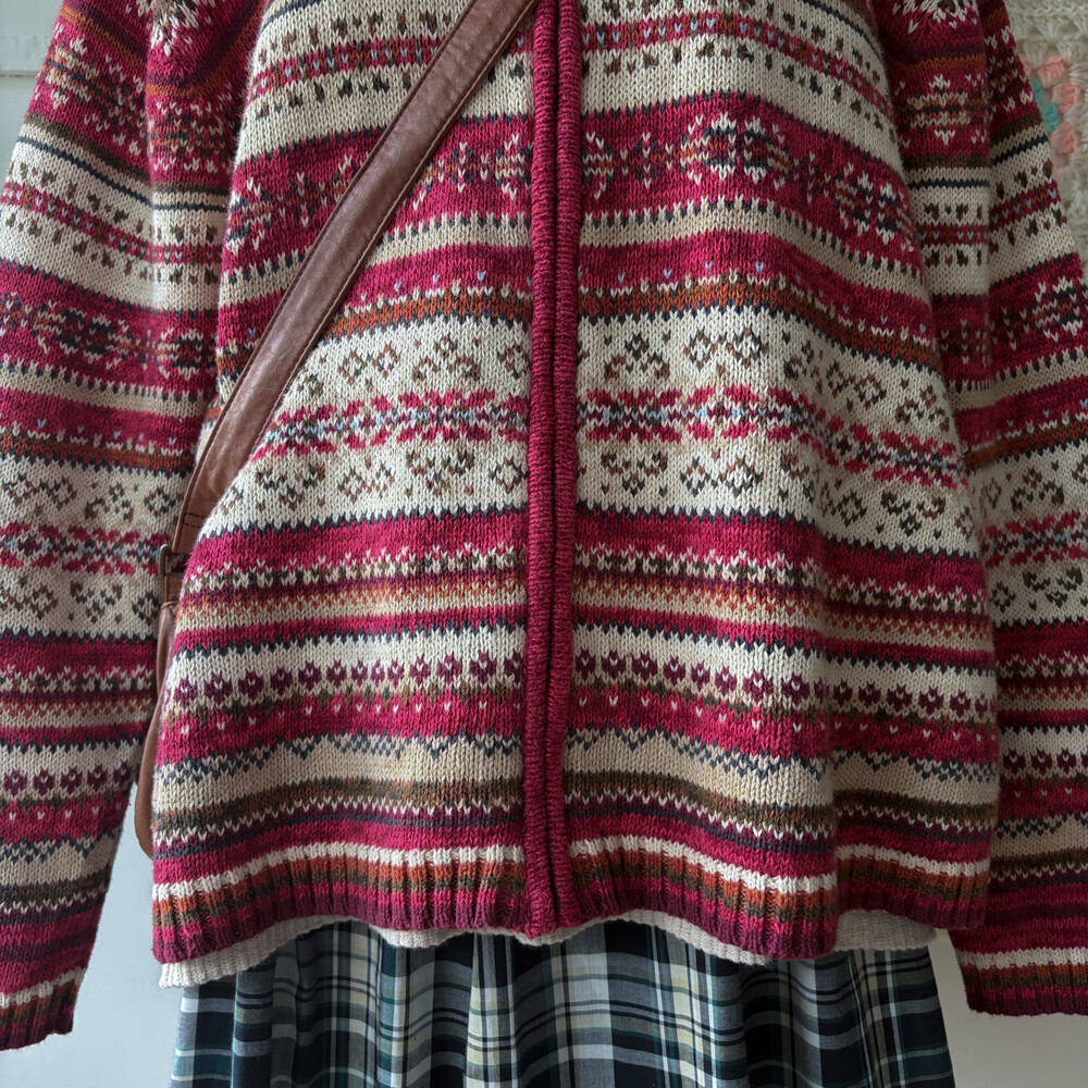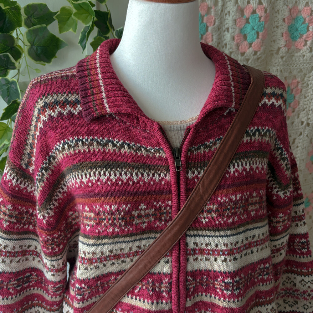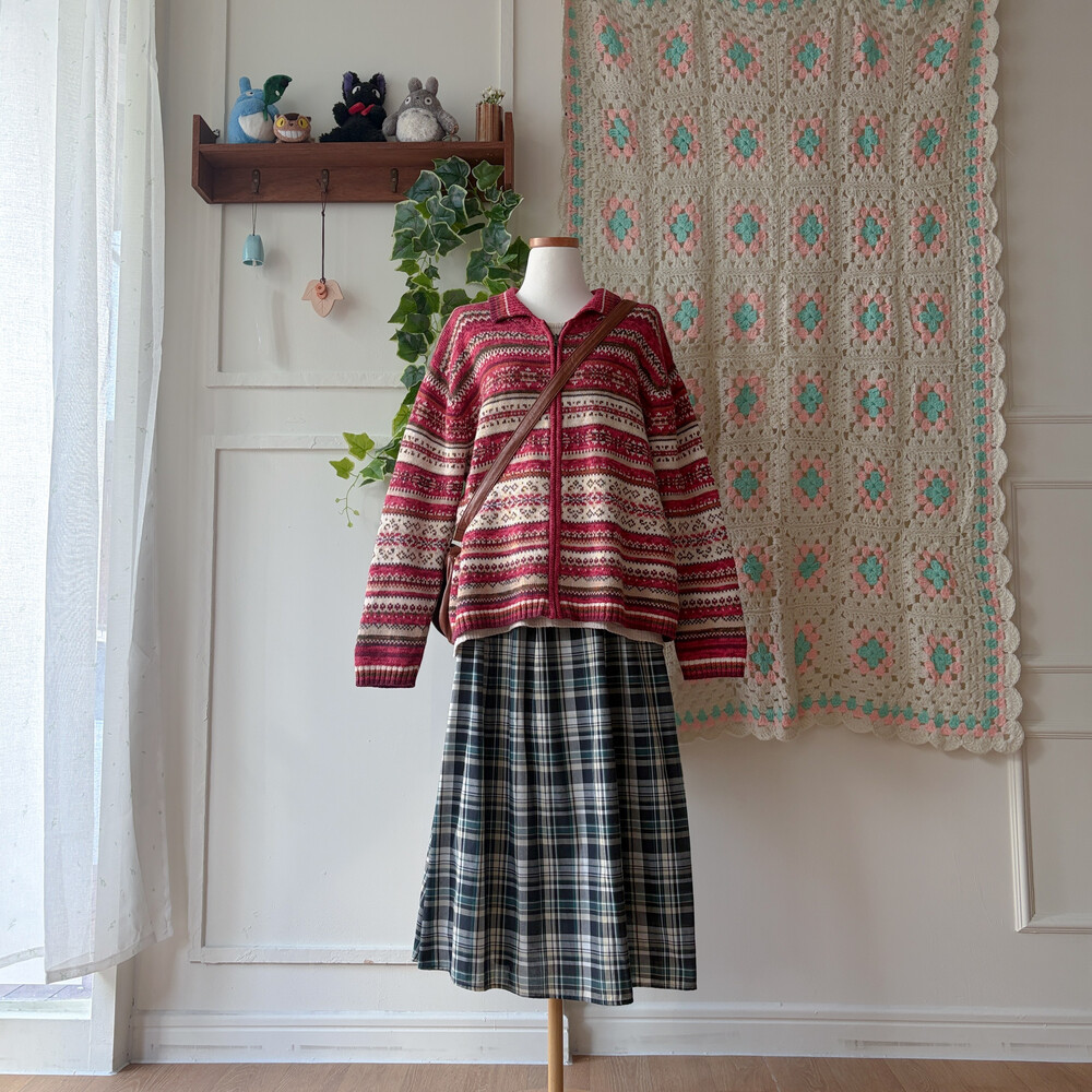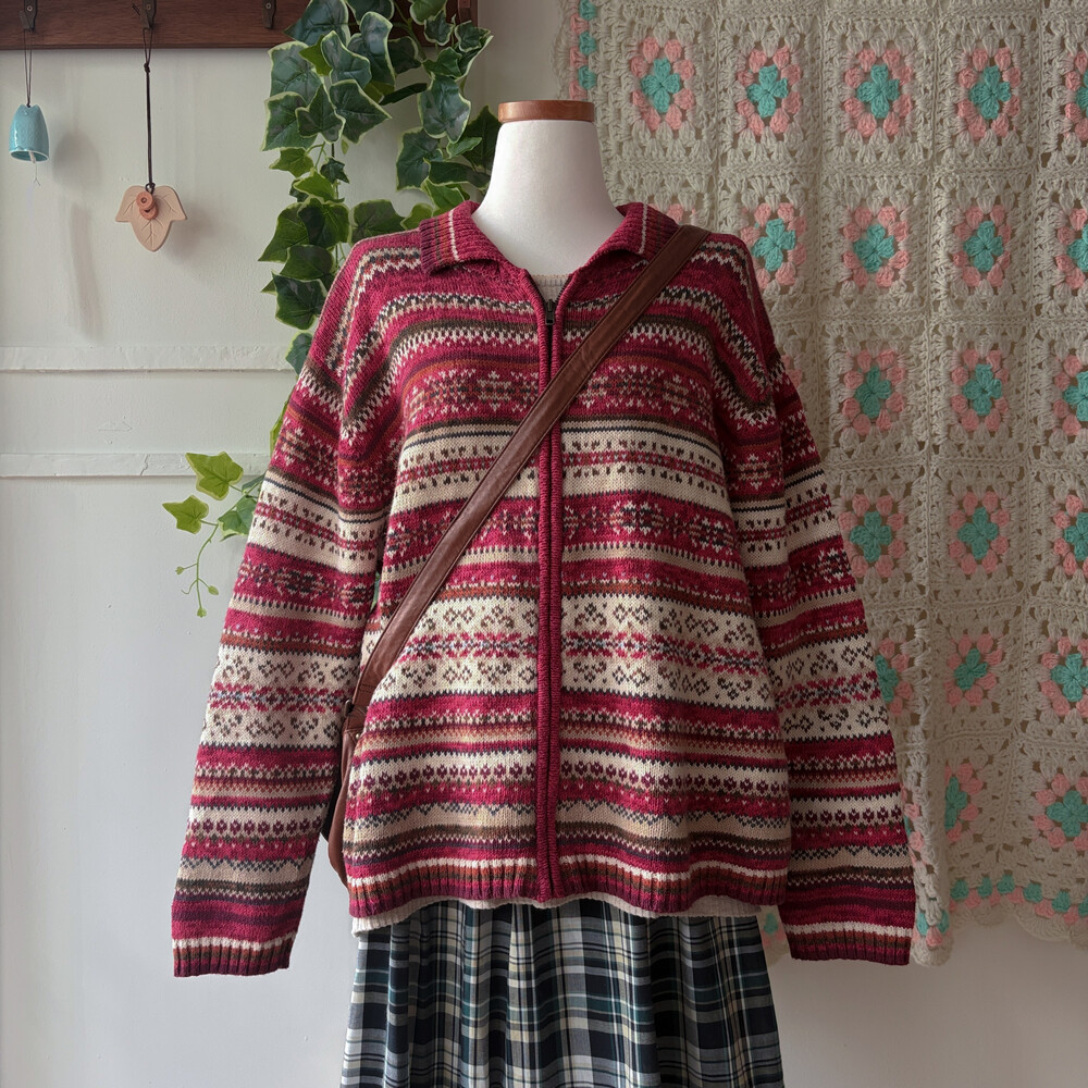 밝은 버건디와 핑크색 조합의 집업 카라 가디건이에요