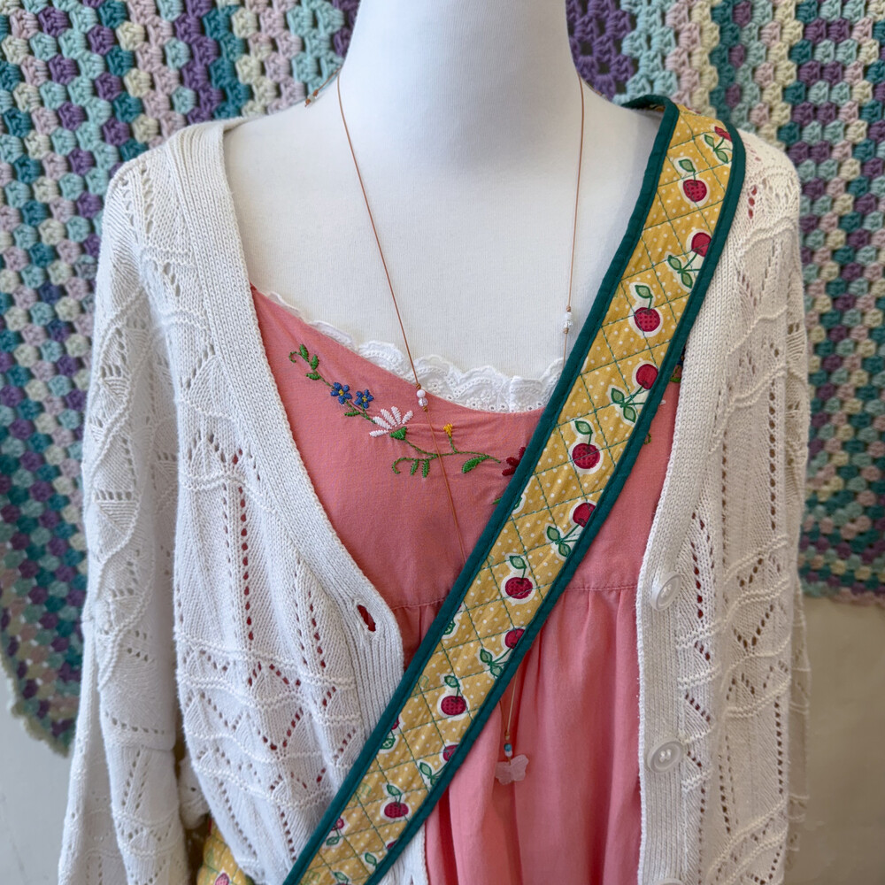 cherry mustard&green quilting cross bag