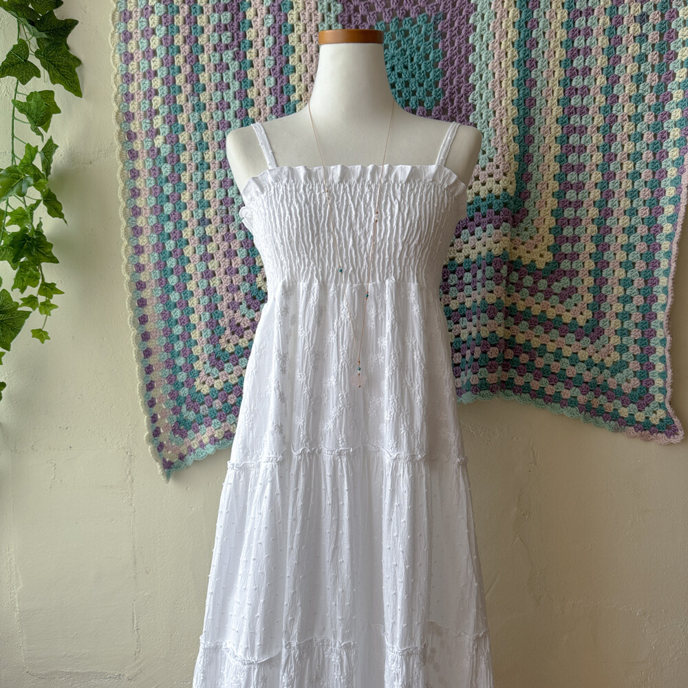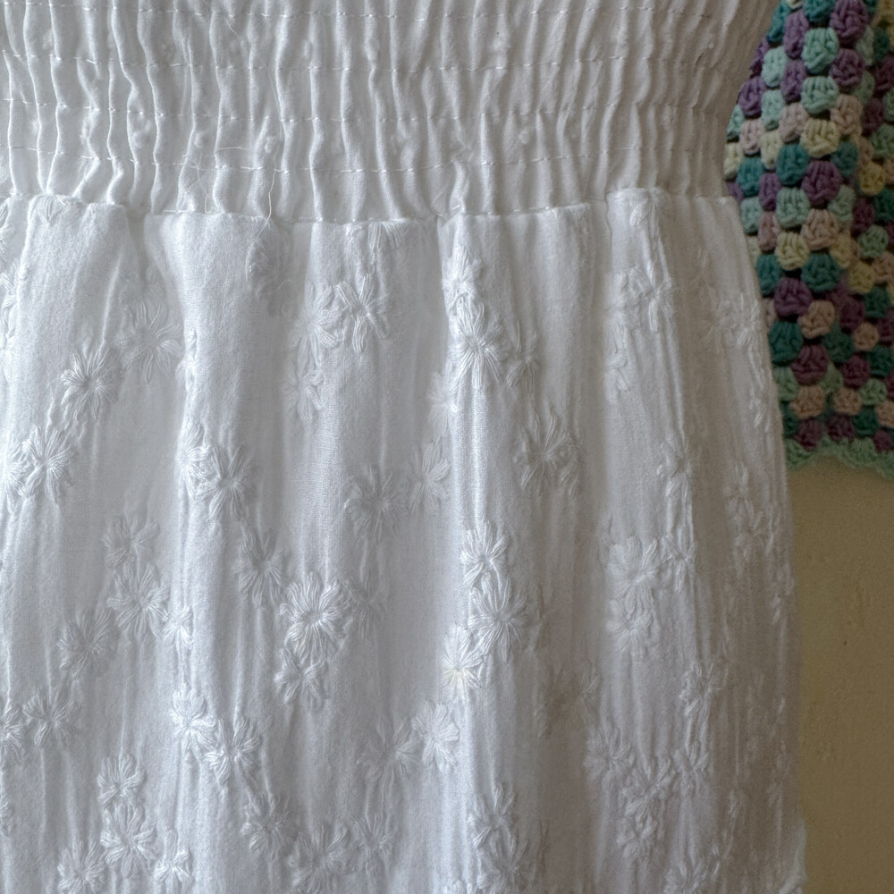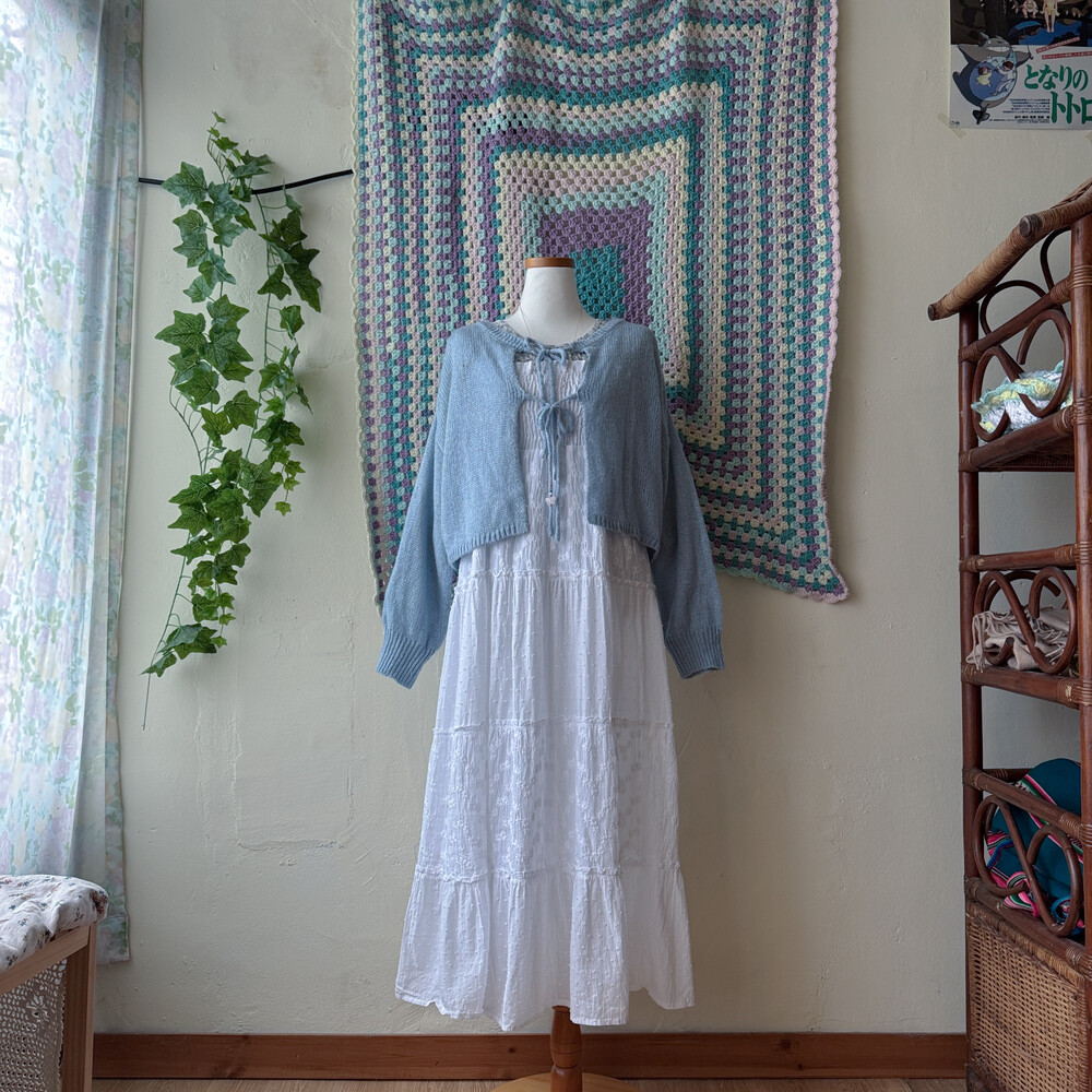 화이트 색감의 패치워크 끈원피스예요