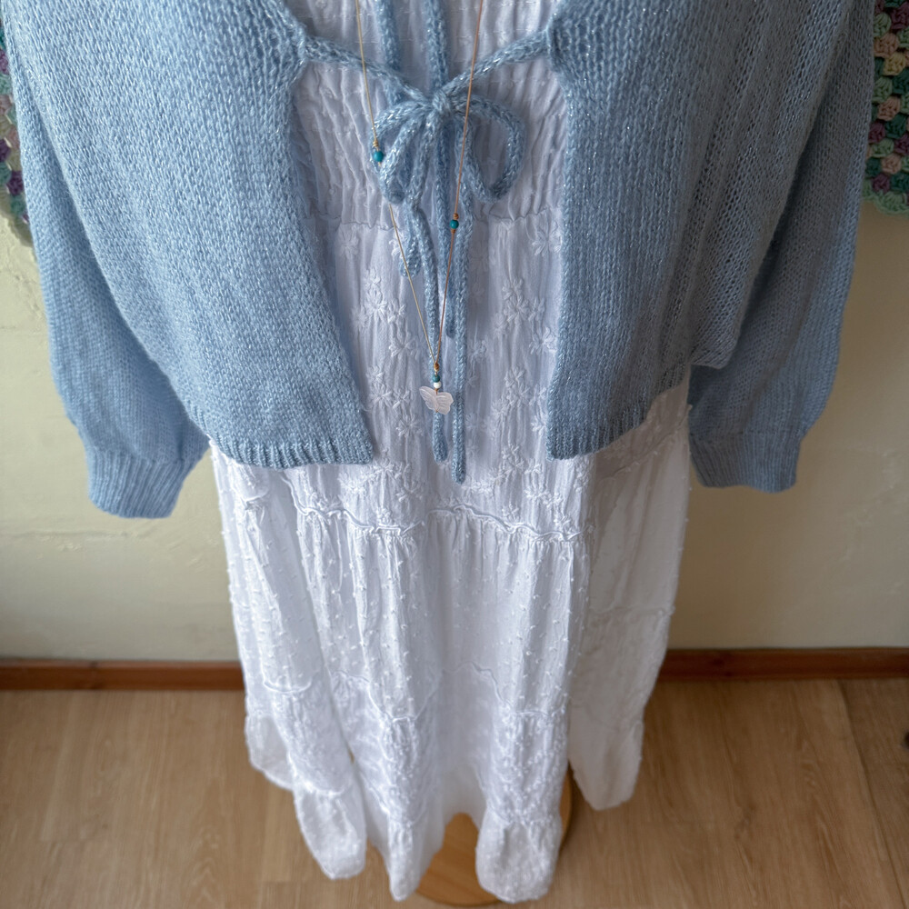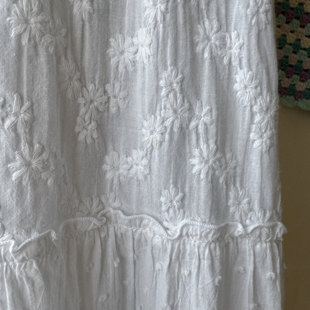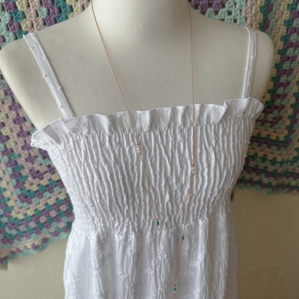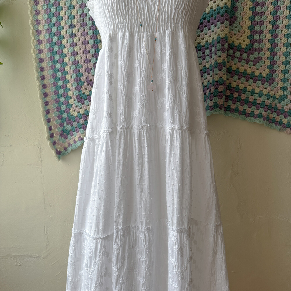 화이트 색감의 패치워크 끈원피스예요