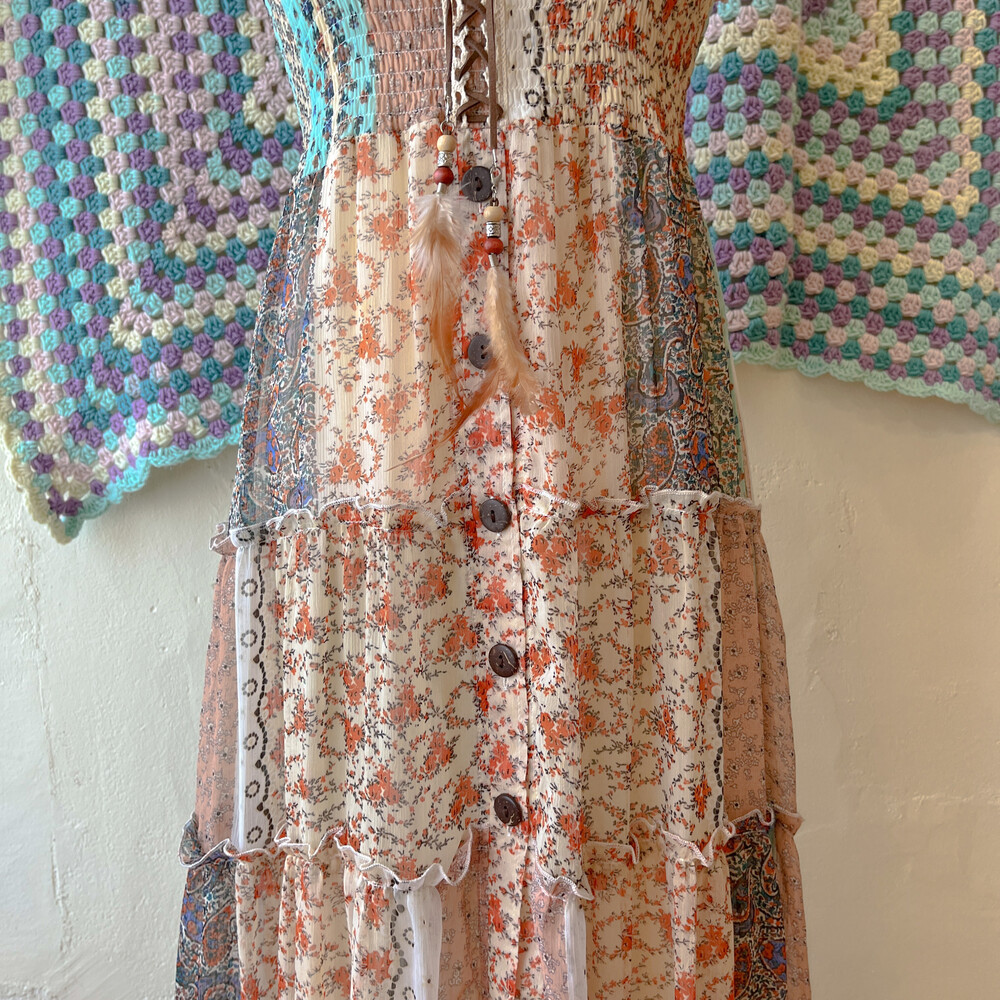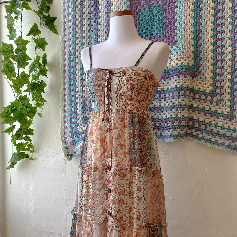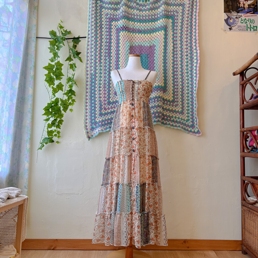 히피한 분위기의 아일렛 쉬폰 끈원피스예요