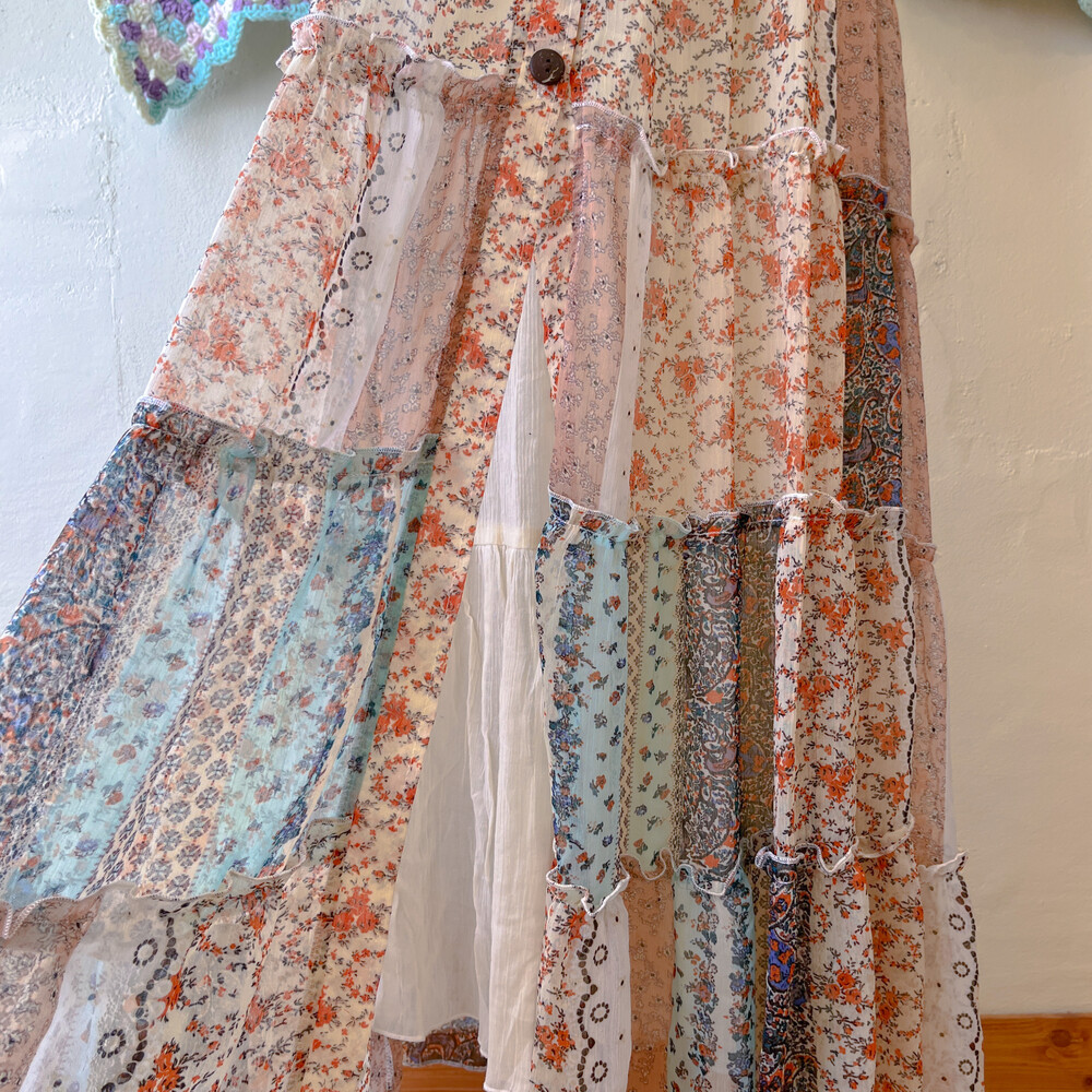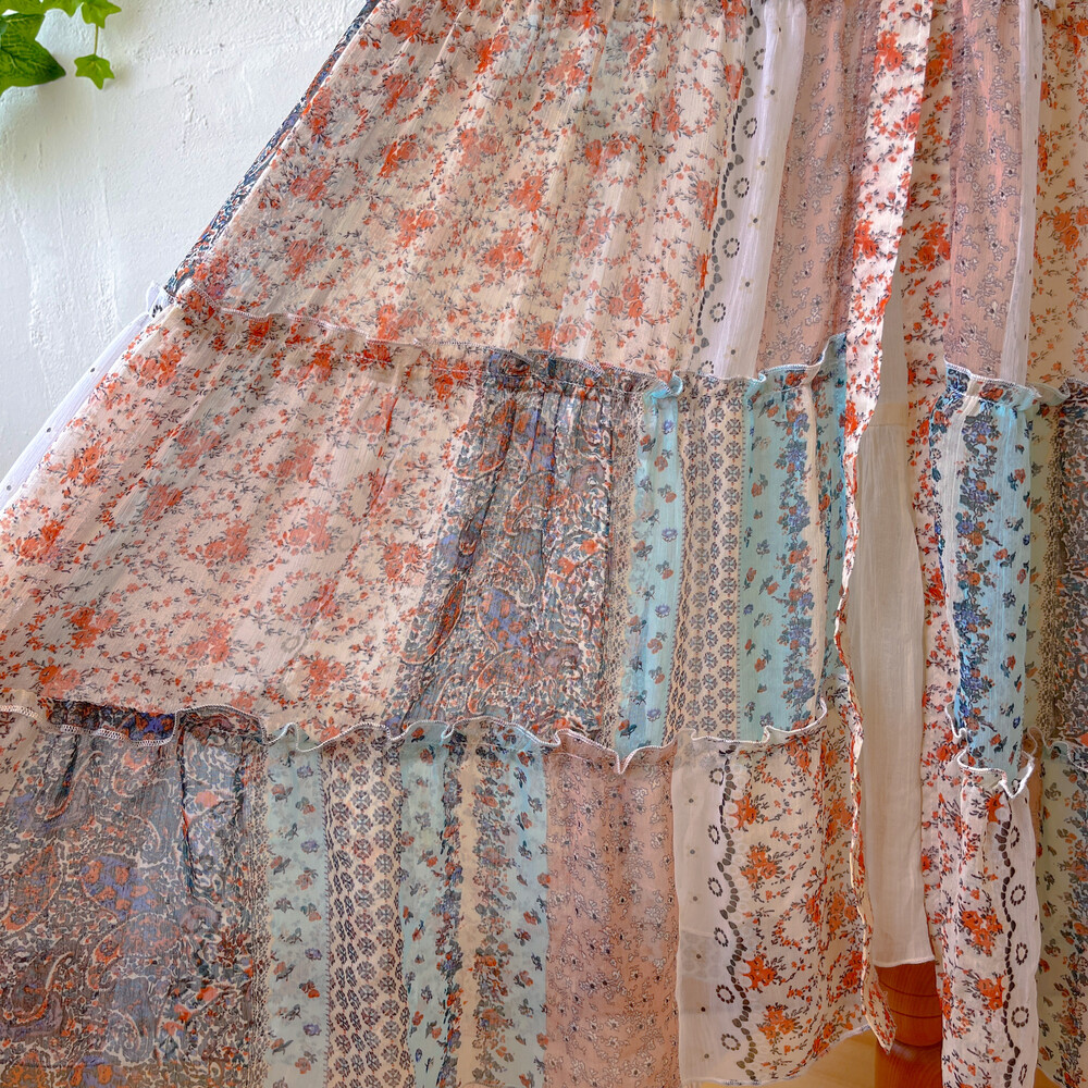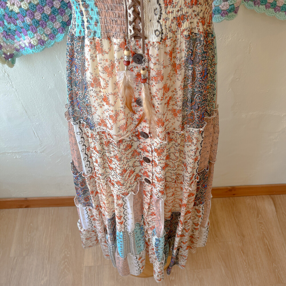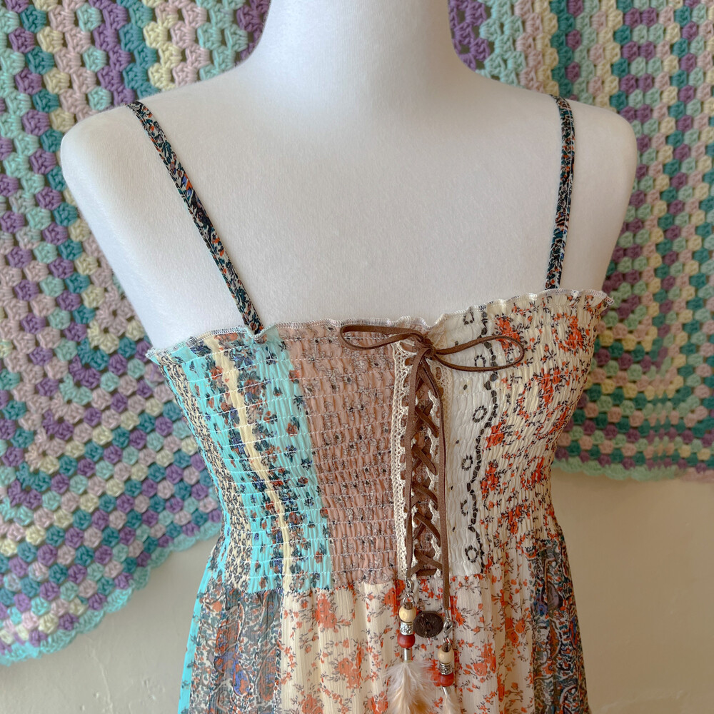히피한 분위기의 아일렛 쉬폰 끈원피스예요