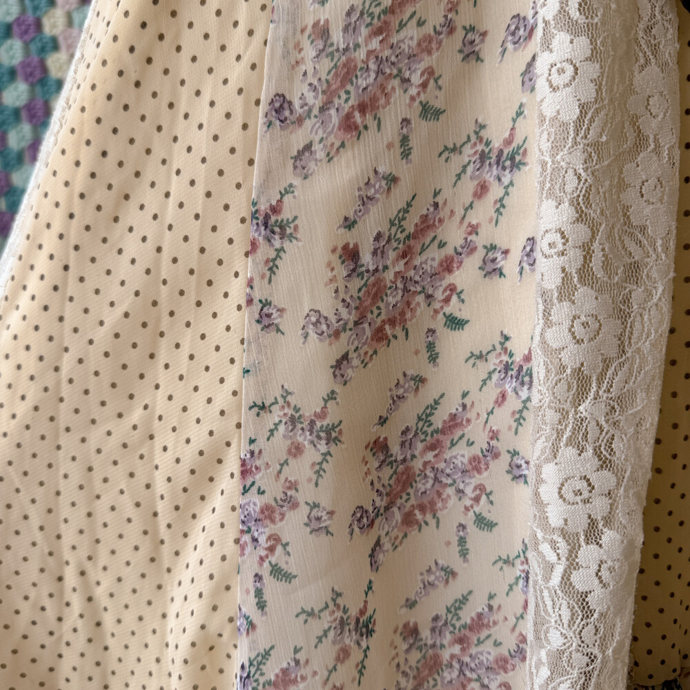 아일렛 디자인에다 도트 핑크 꽃무늬 레이스 패치가 조합된