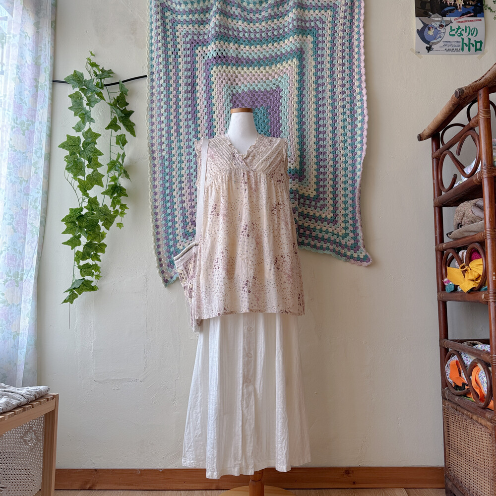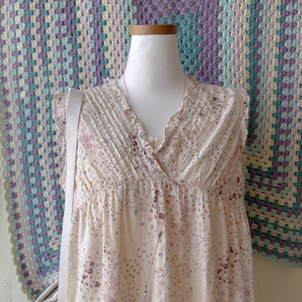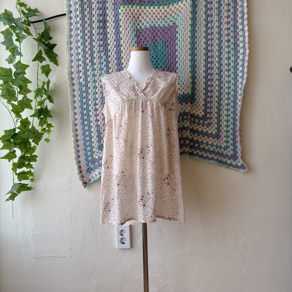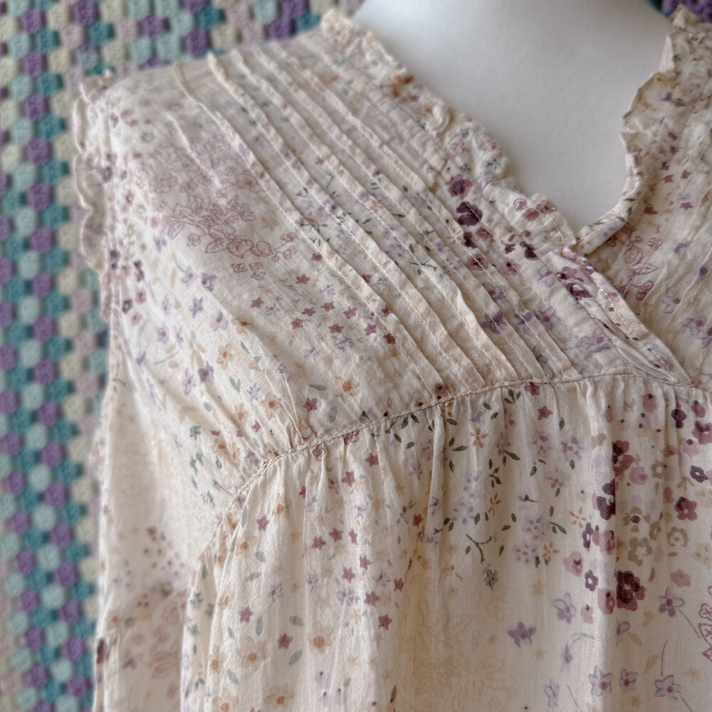 코튼 소재구요, 분홍색 보라색 계열의 잔꽃들이 가득 들어가 있어요