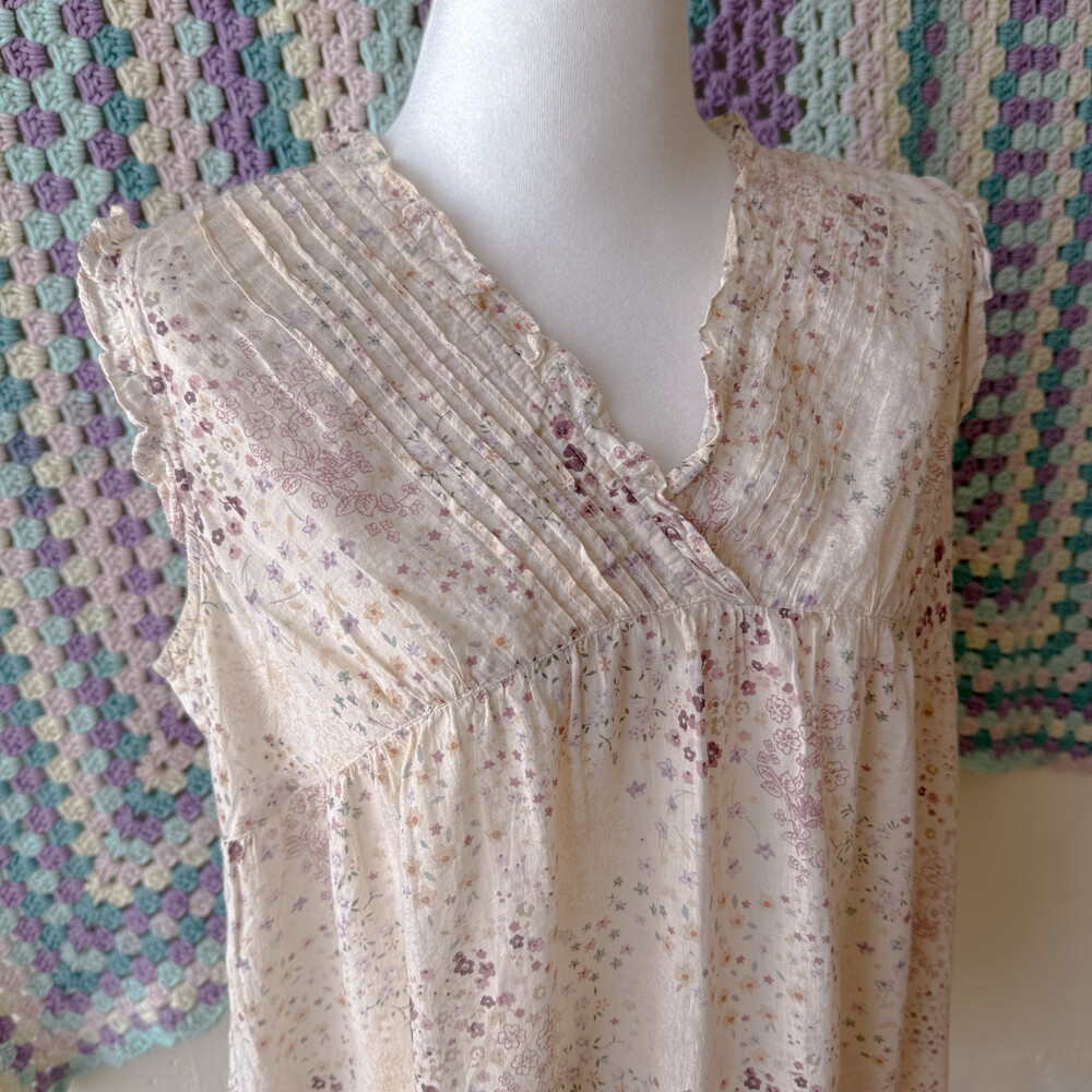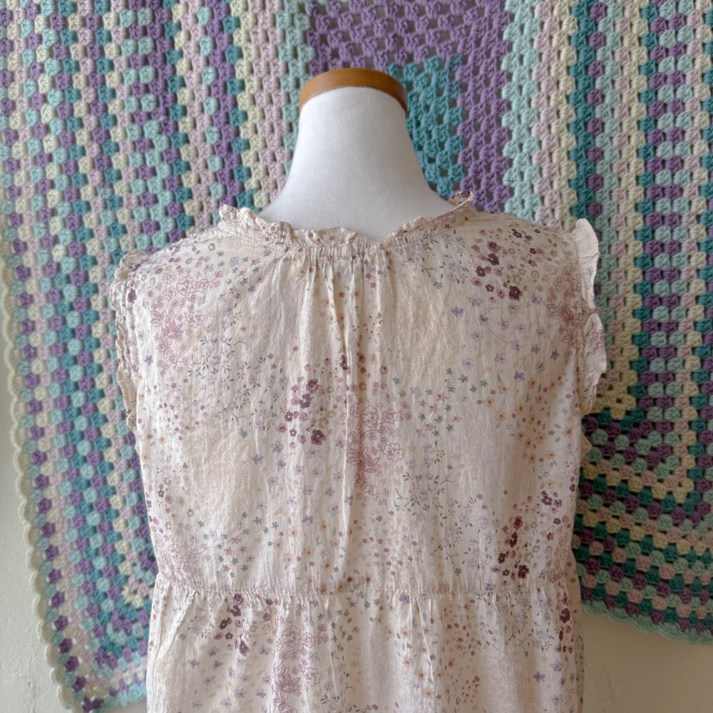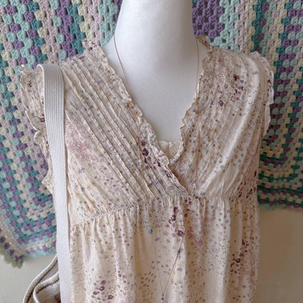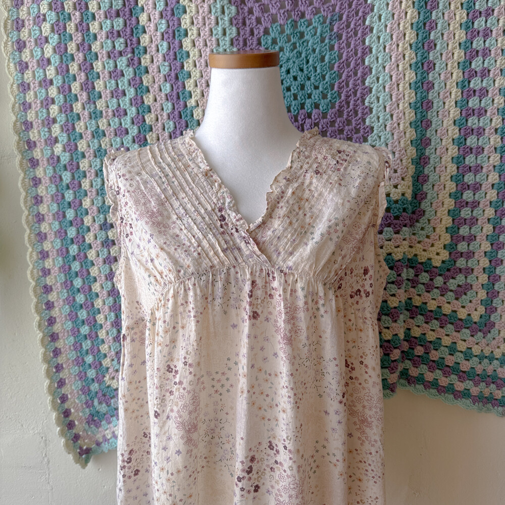 코튼 소재구요, 분홍색 보라색 계열의 잔꽃들이 가득 들어가 있어요
