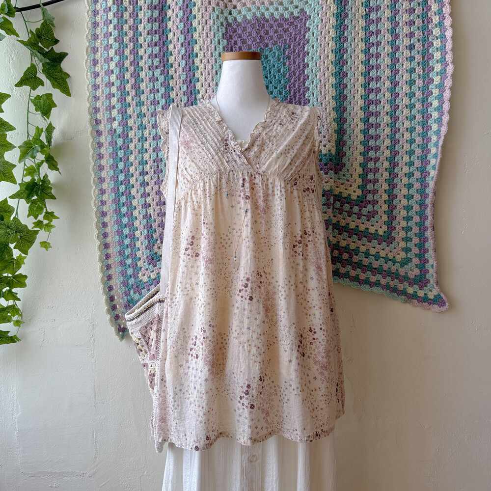프릴, 핀턱 디자인 넥라인의 민소매 블라우스예요