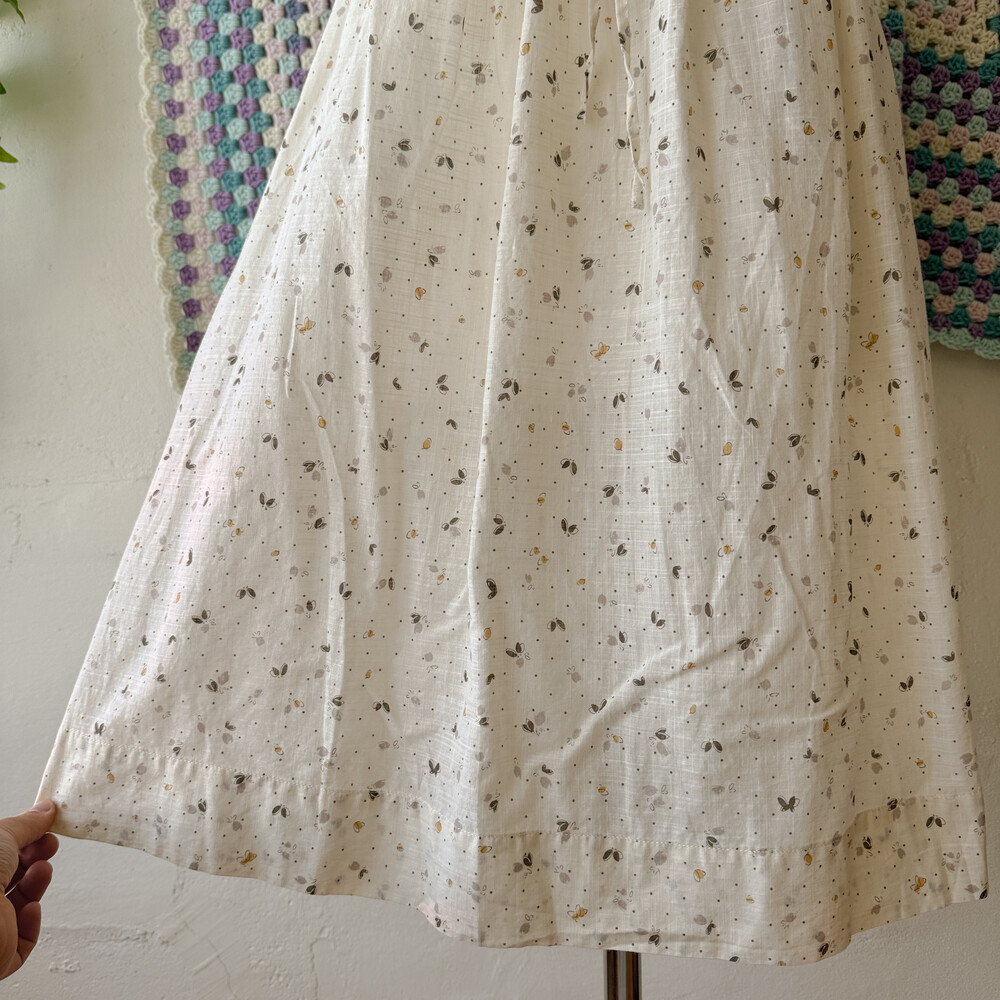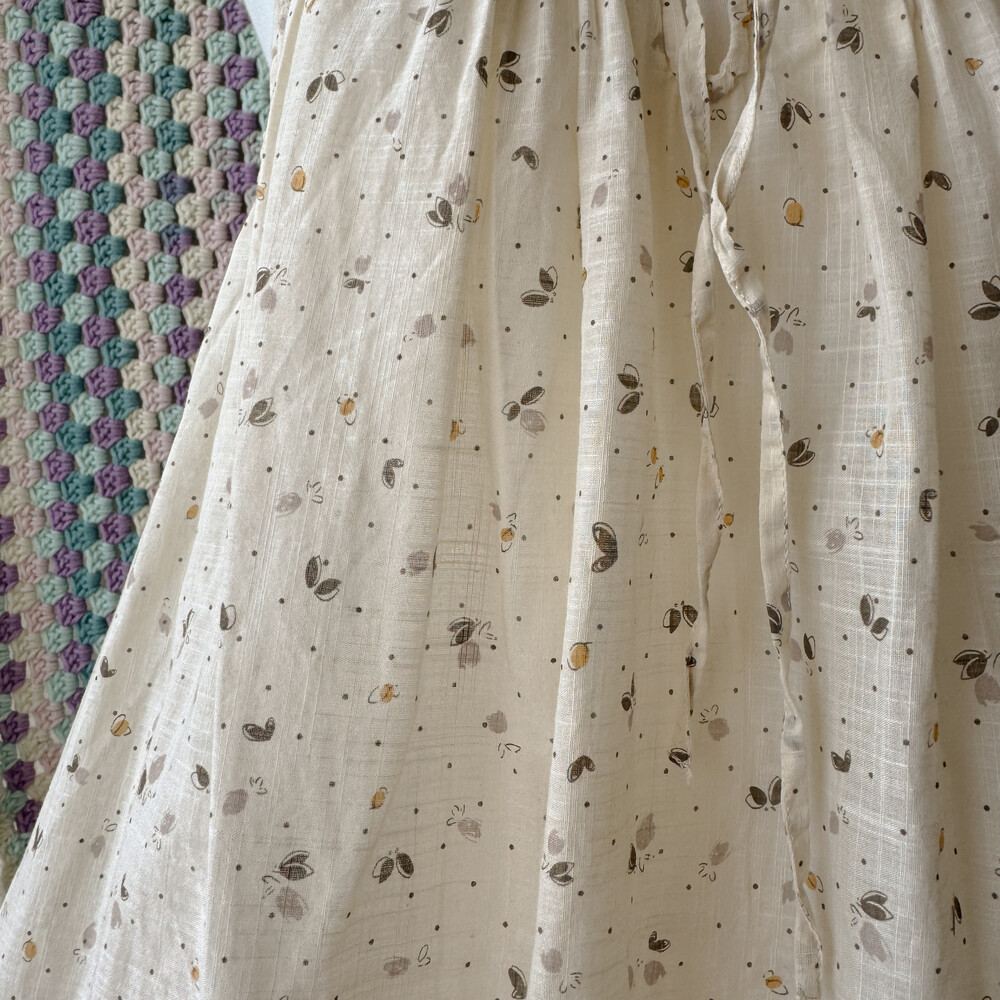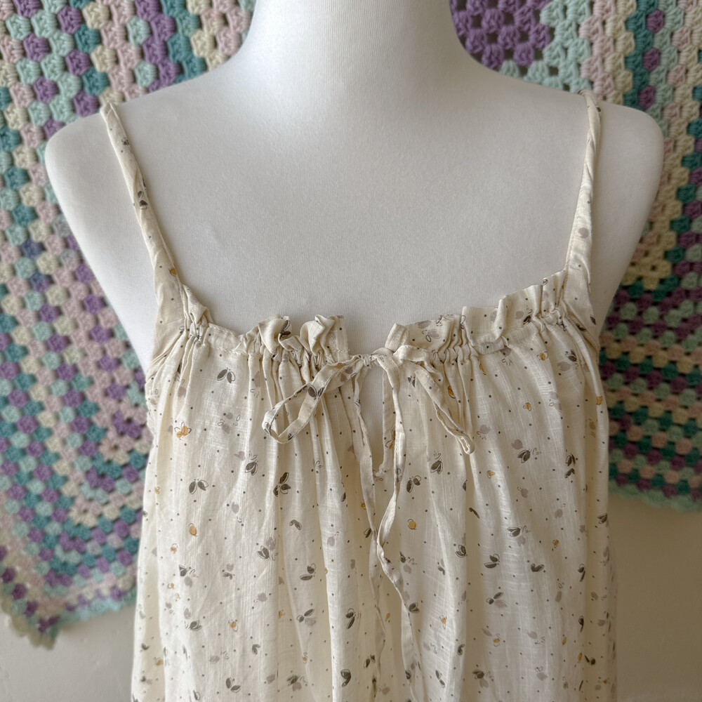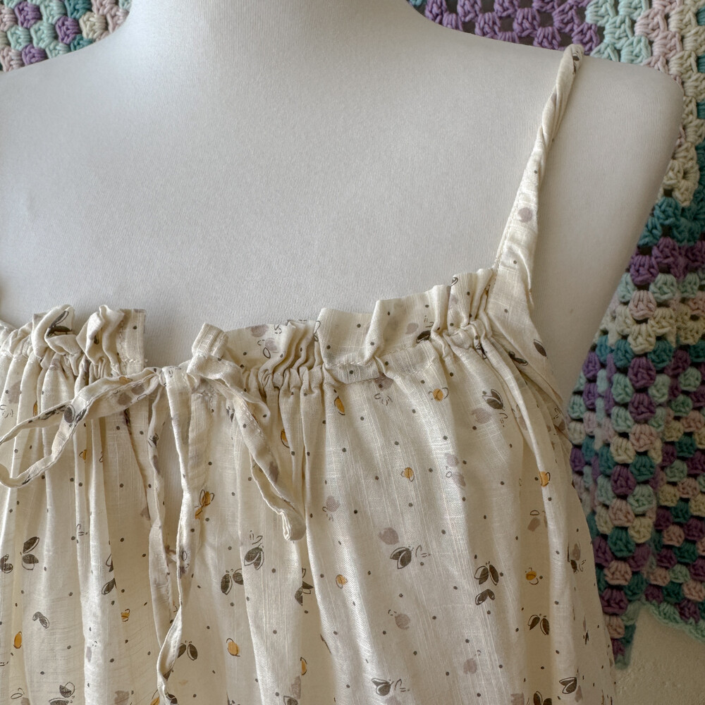 아이보리 색감의 나비, 잎 패턴 끈 블라우스예요