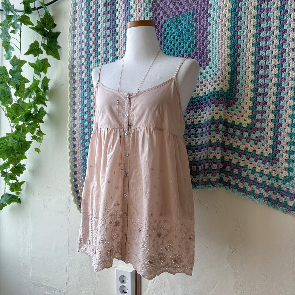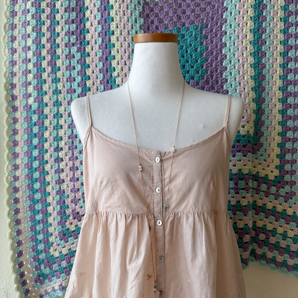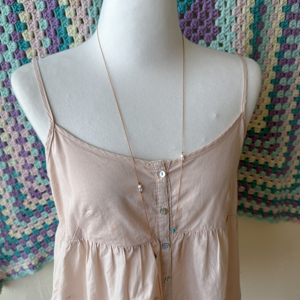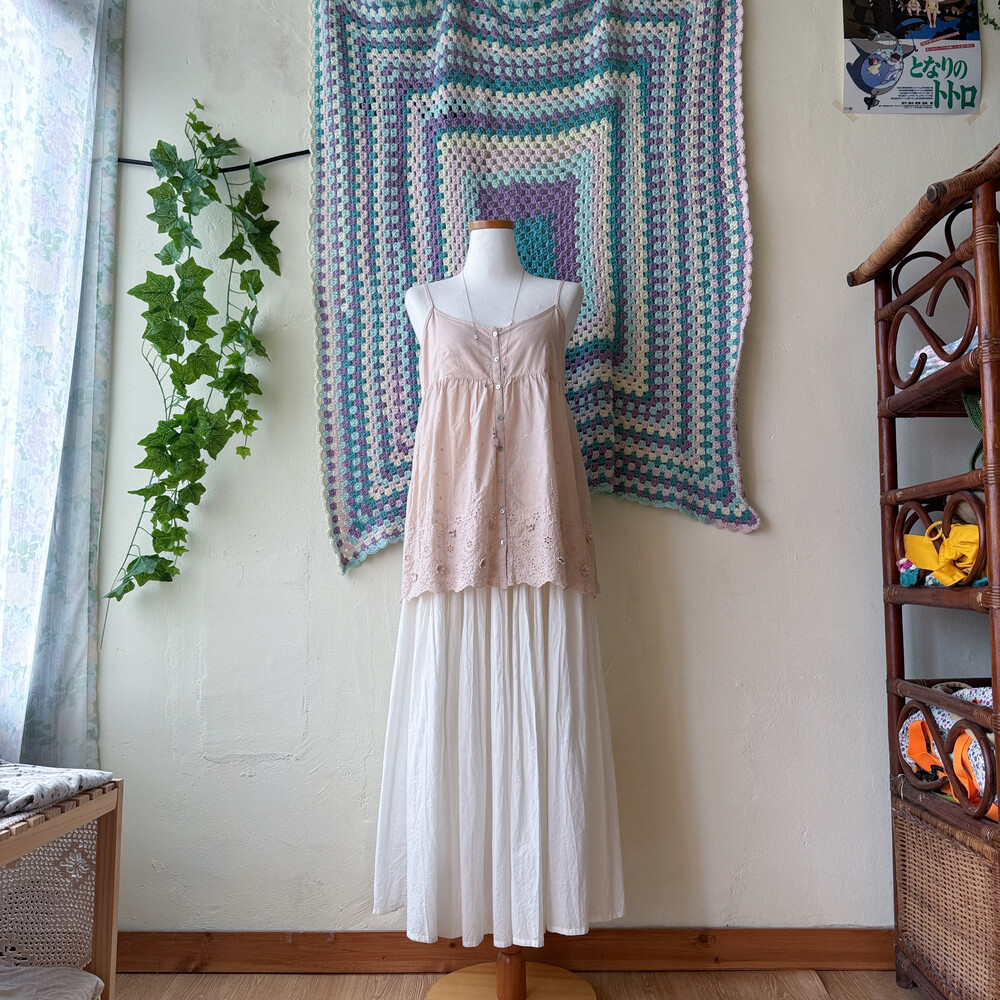 코튼 소재구요, 어깨 끈 길이 조절 가능해요:)