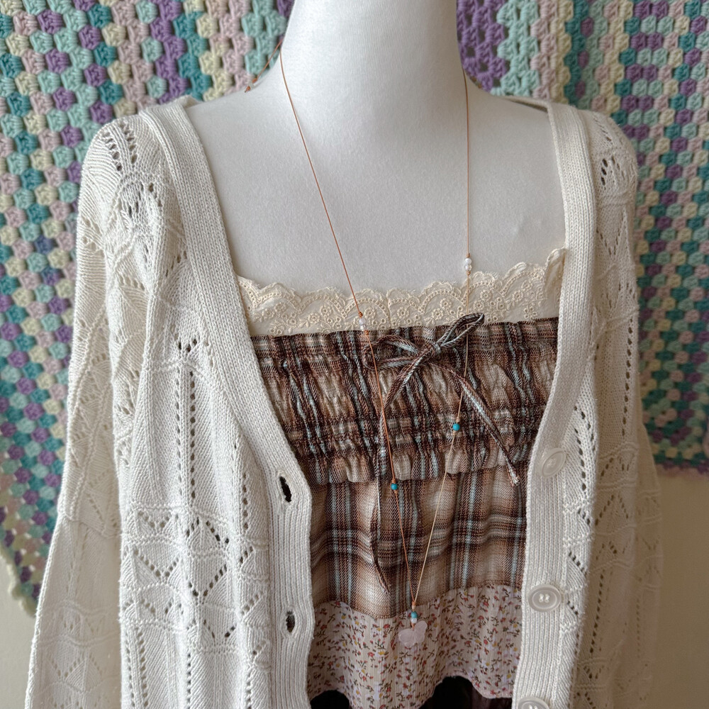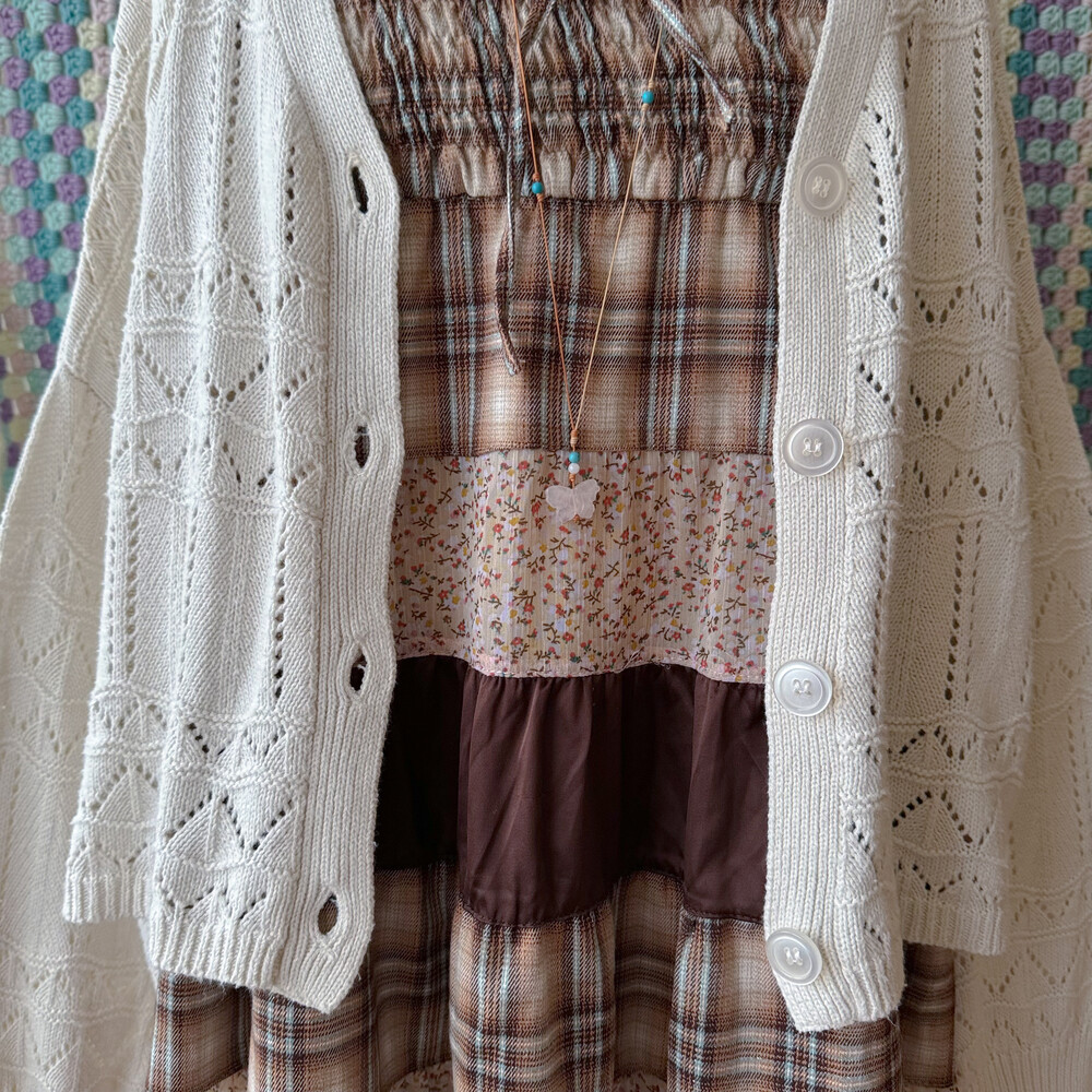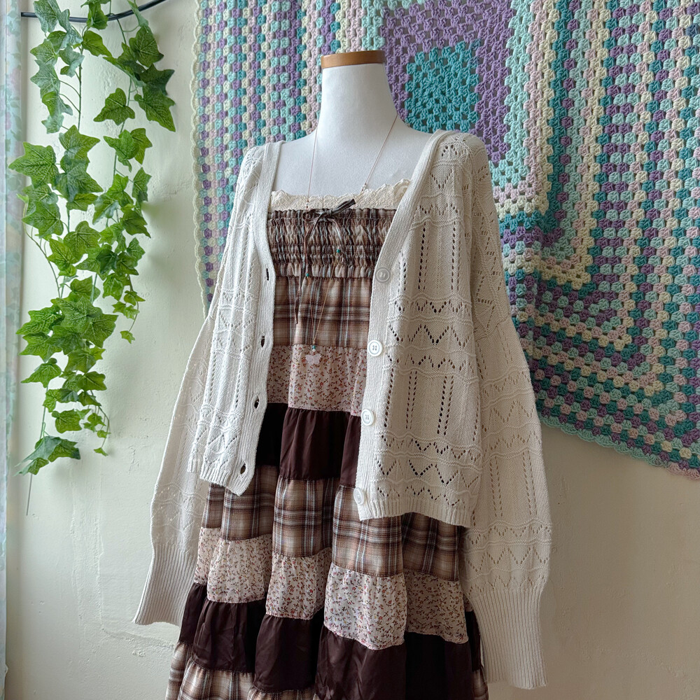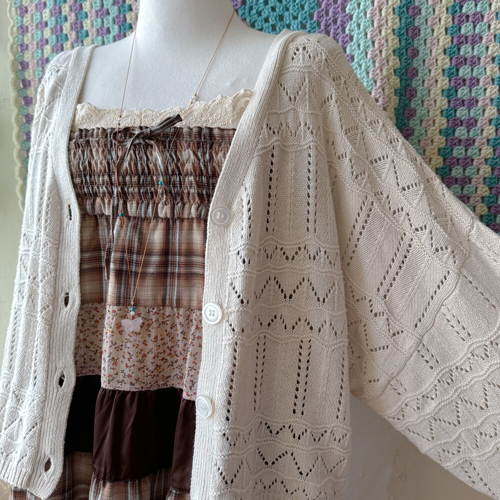 밀크색의 펀칭 브이넥 오버사이즈 가디건이에요
