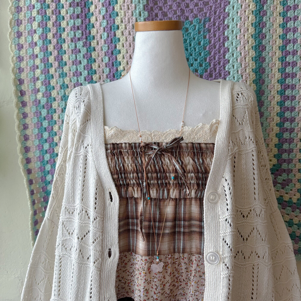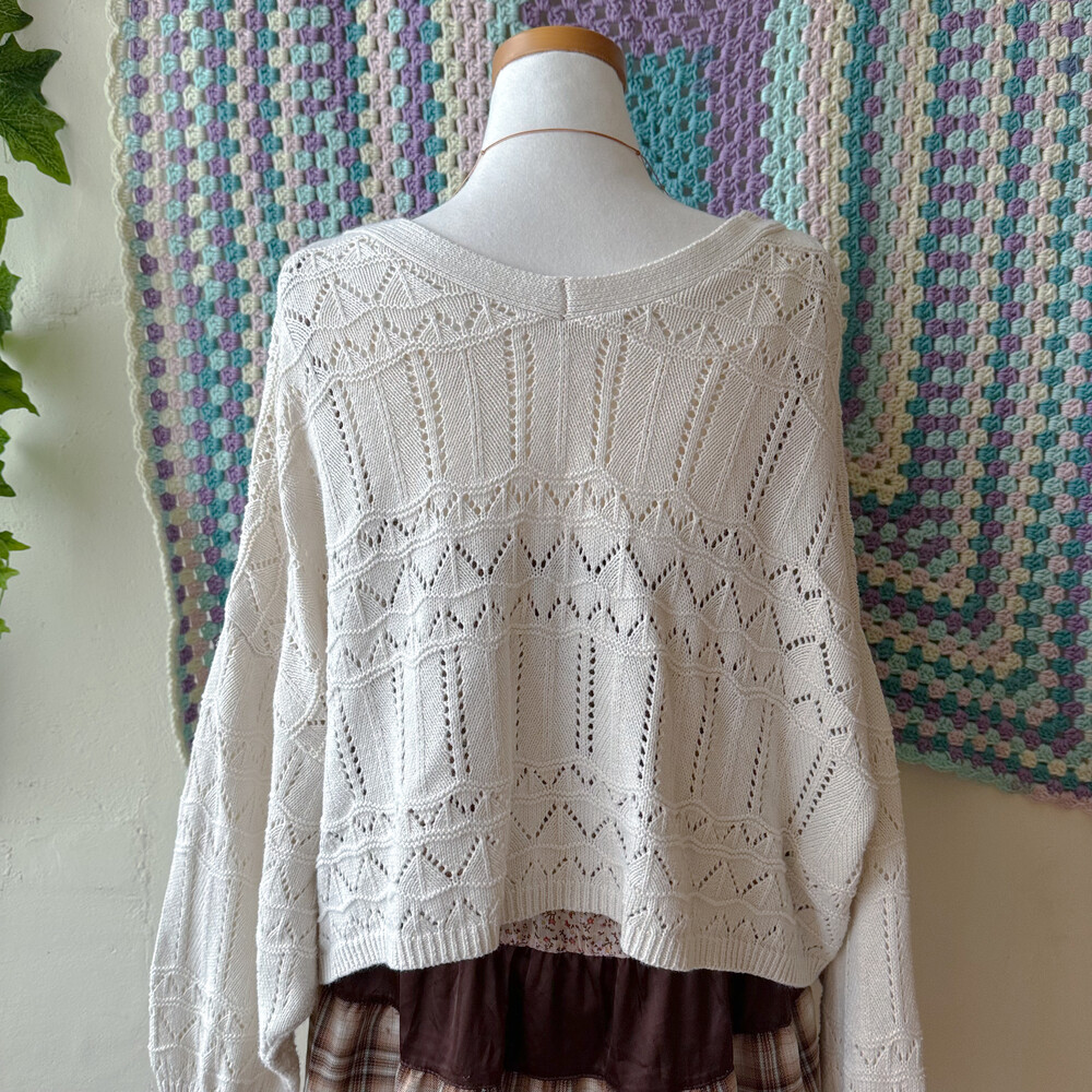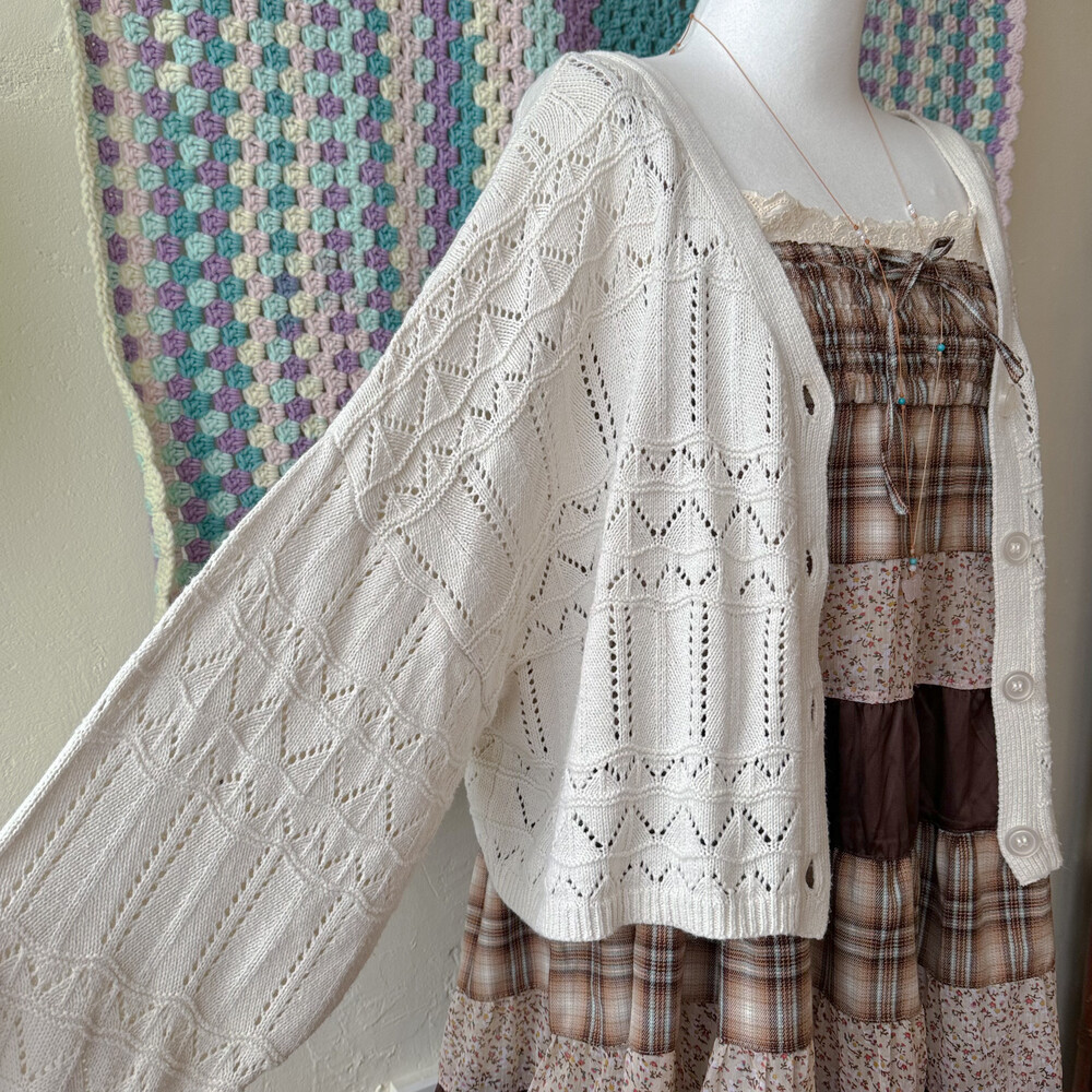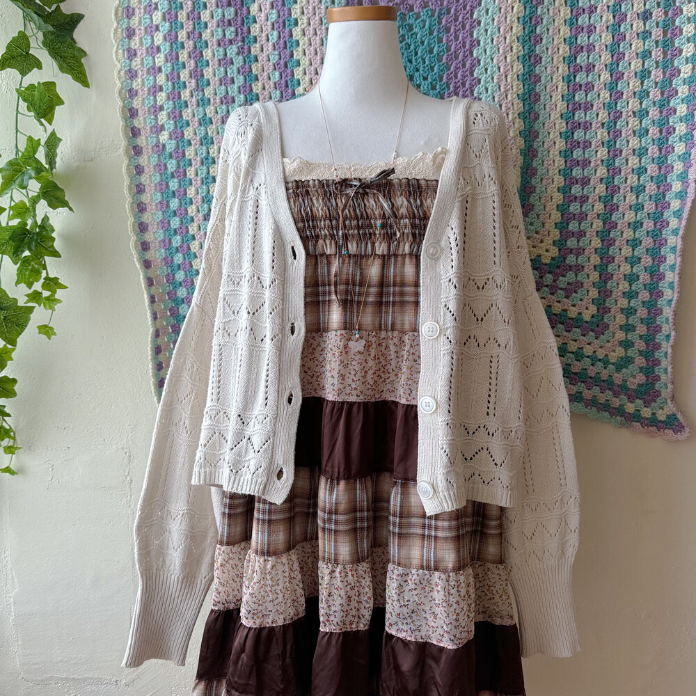 밀크색의 펀칭 브이넥 오버사이즈 가디건이에요