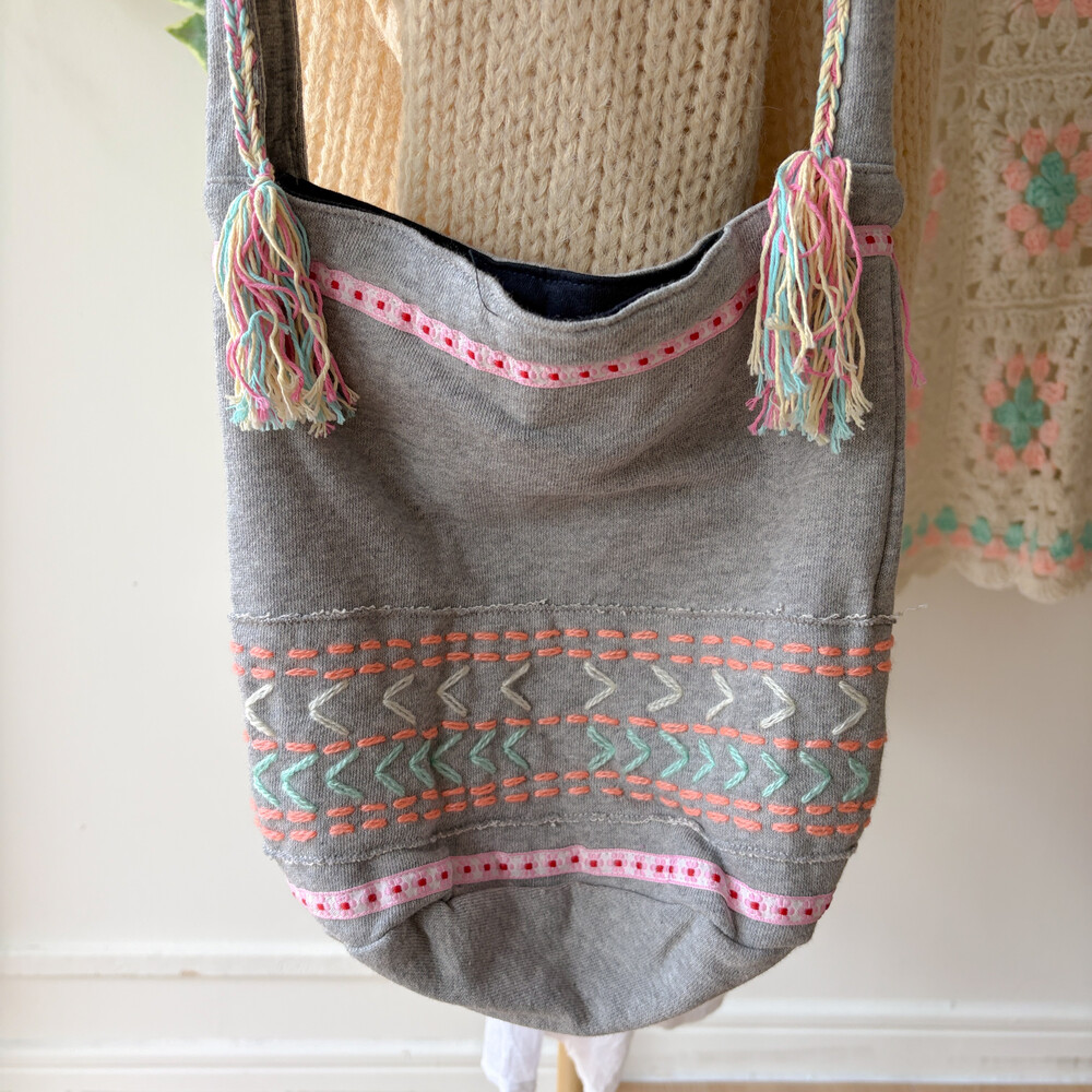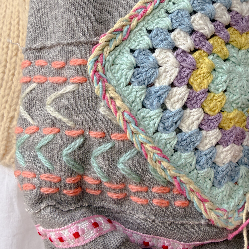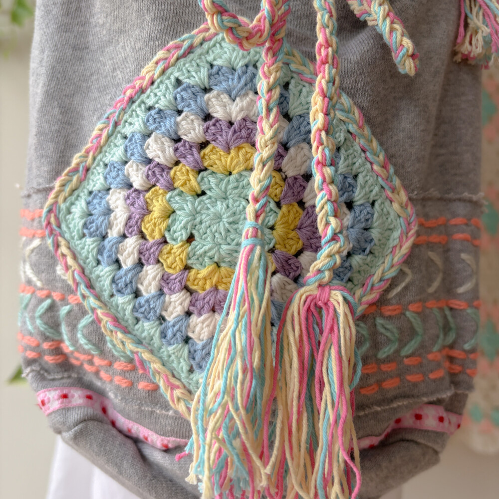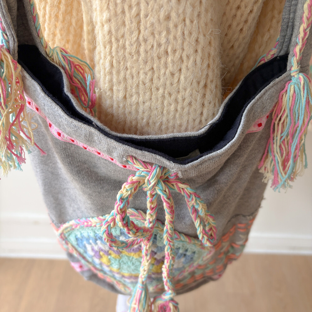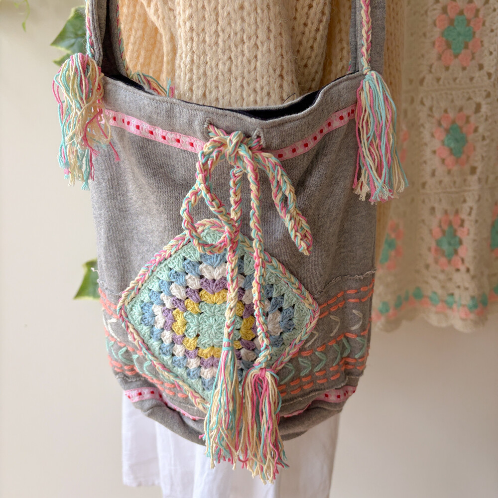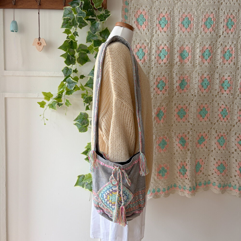 mori gray granny square shoulder bag
