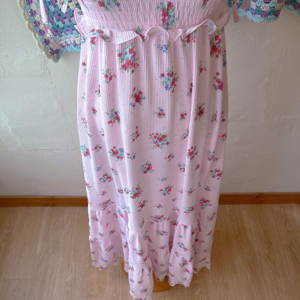 딸기우유 색감의 끈원피스예요