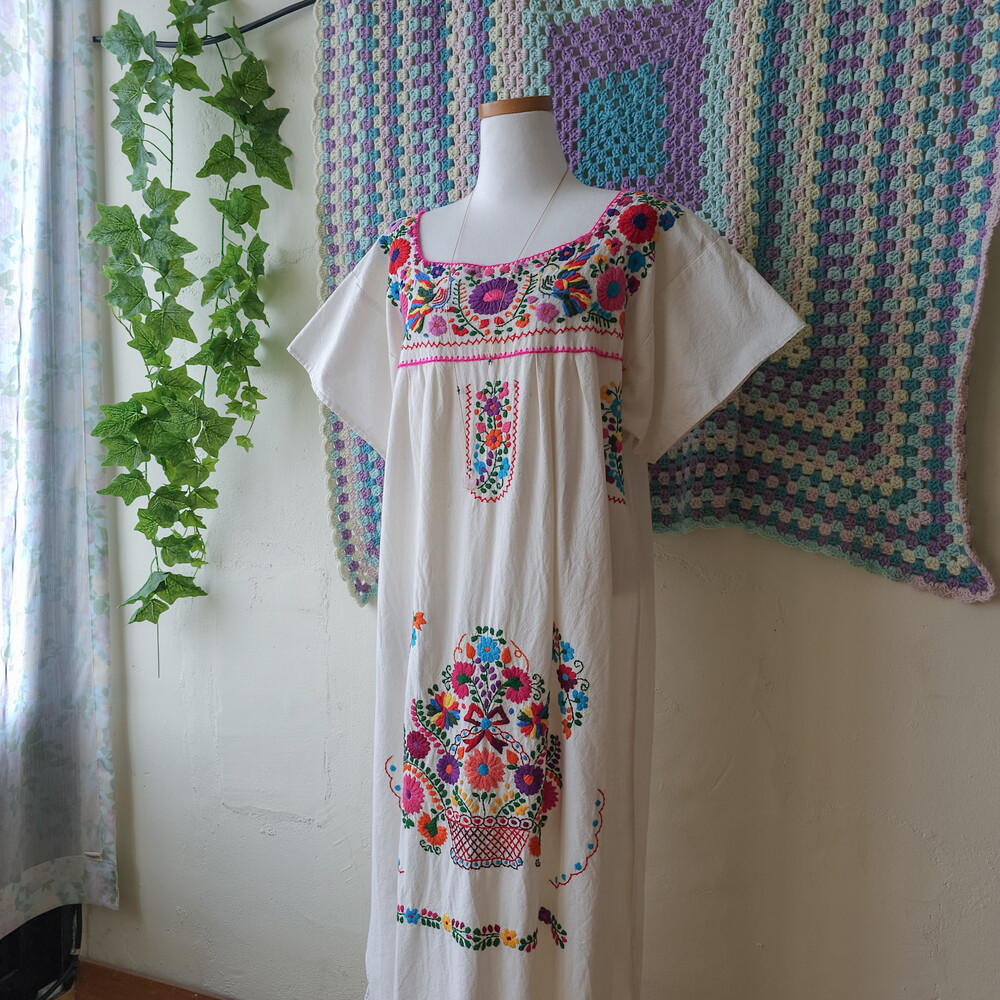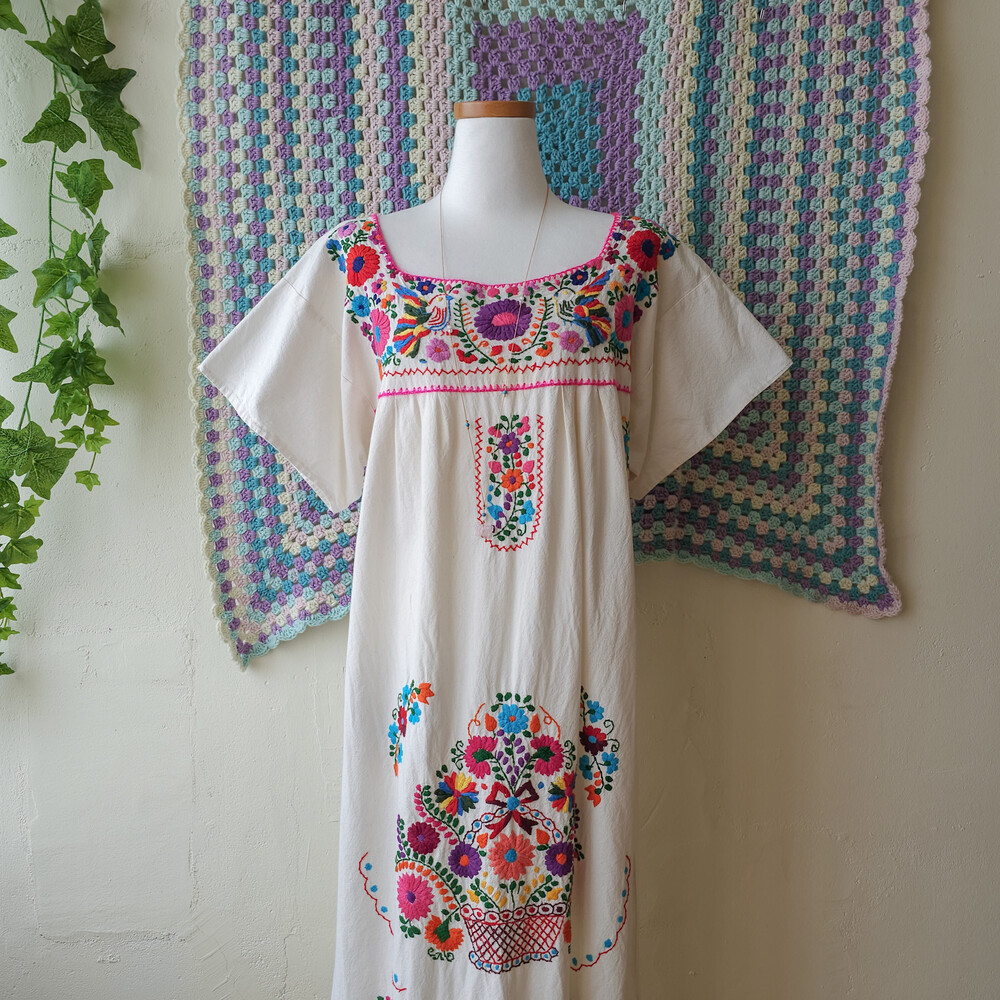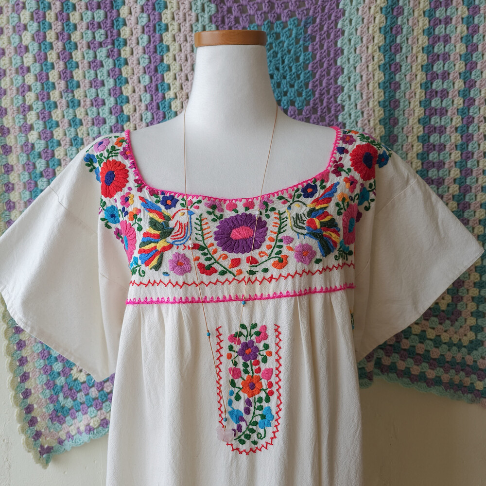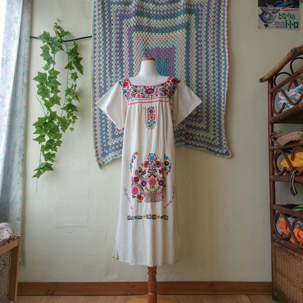 티티카카의 멕시칸 자수 코튼 원피스예요