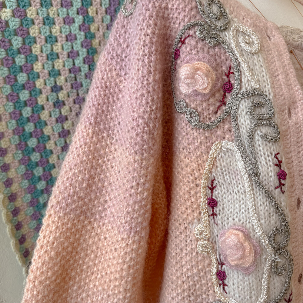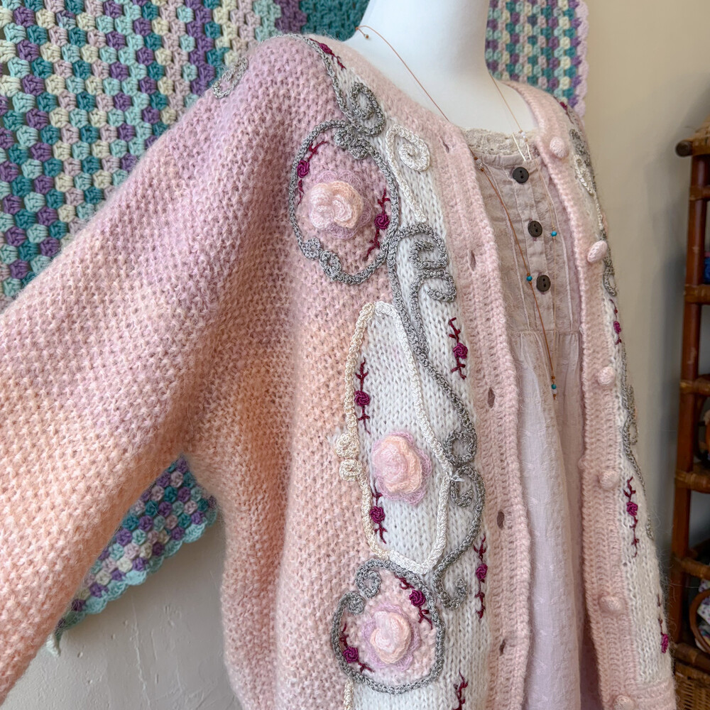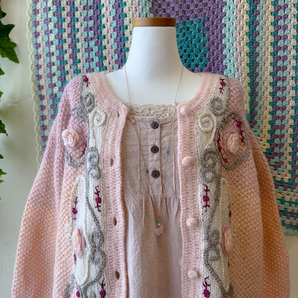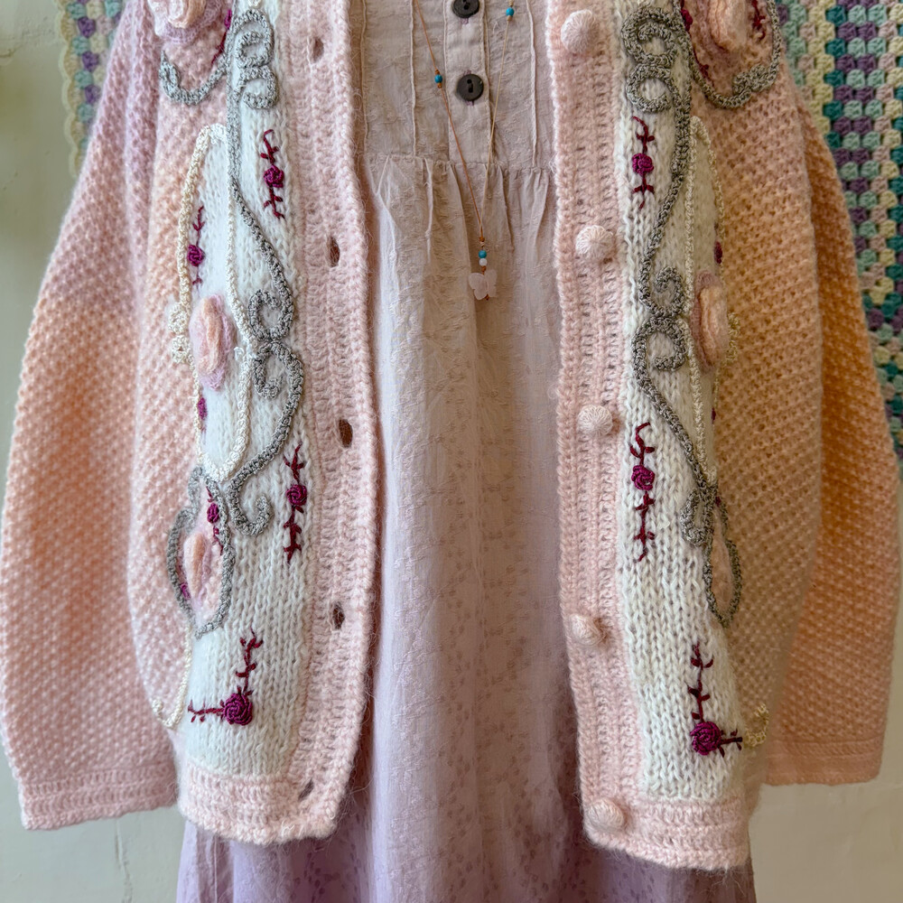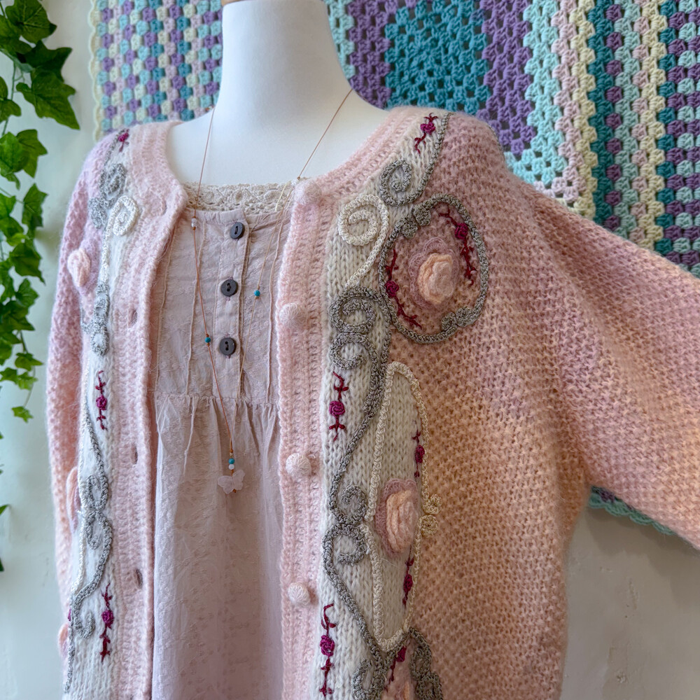 보라, 분홍색 그라데이션 모티브 가디건이에요