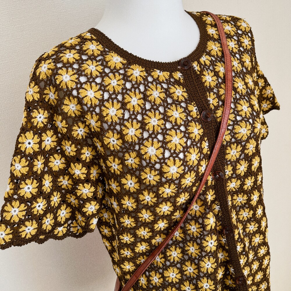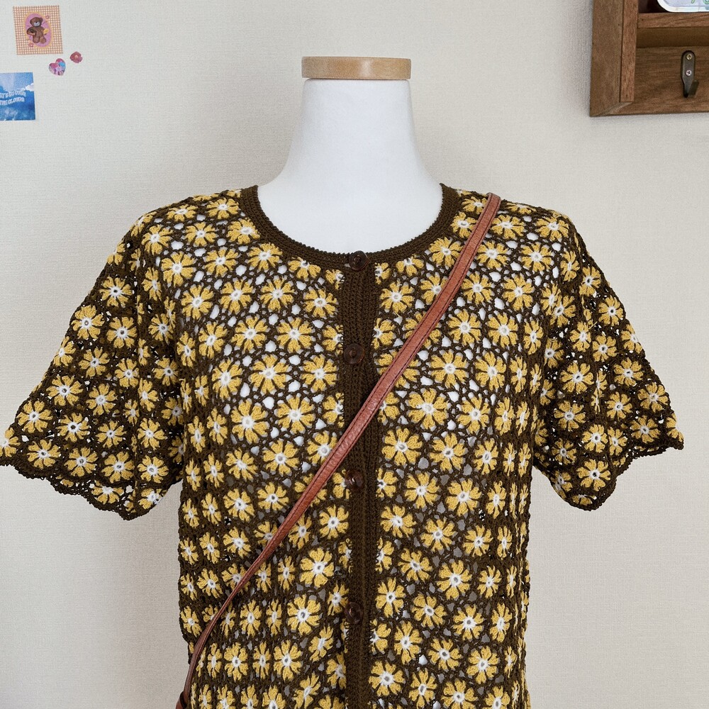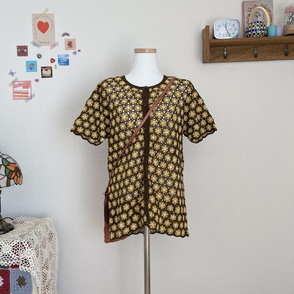 러블리한 노랑꽃 패턴의 크로셰 가디건이에요