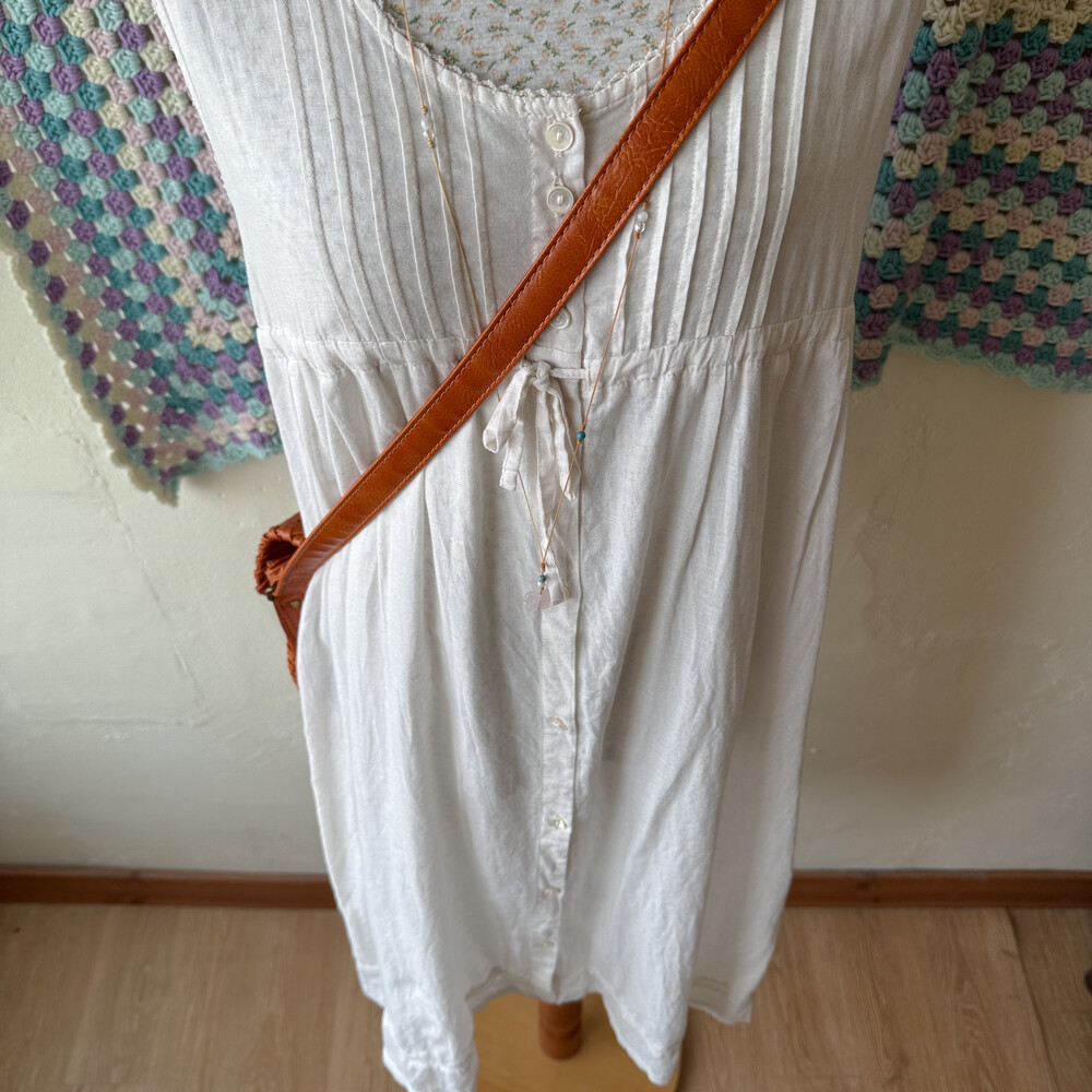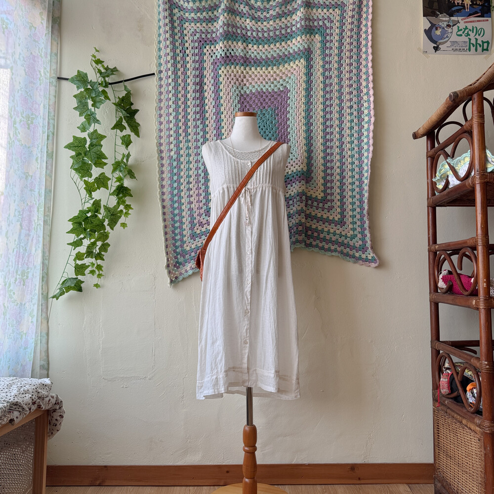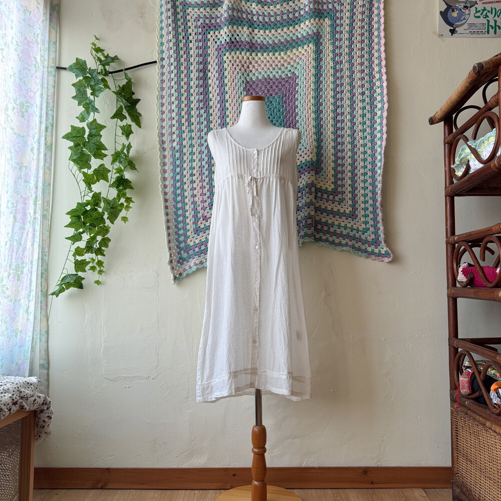 아이보리 색감의 민소매 코튼 원피스예요
