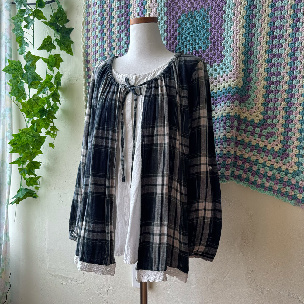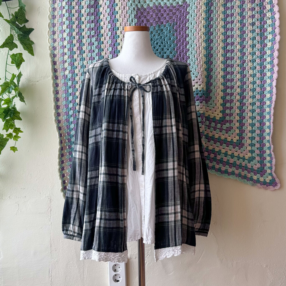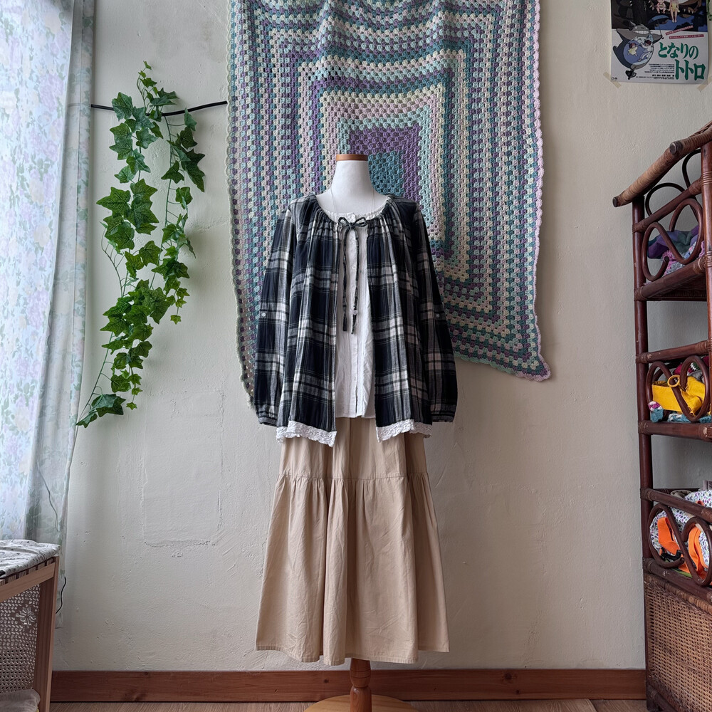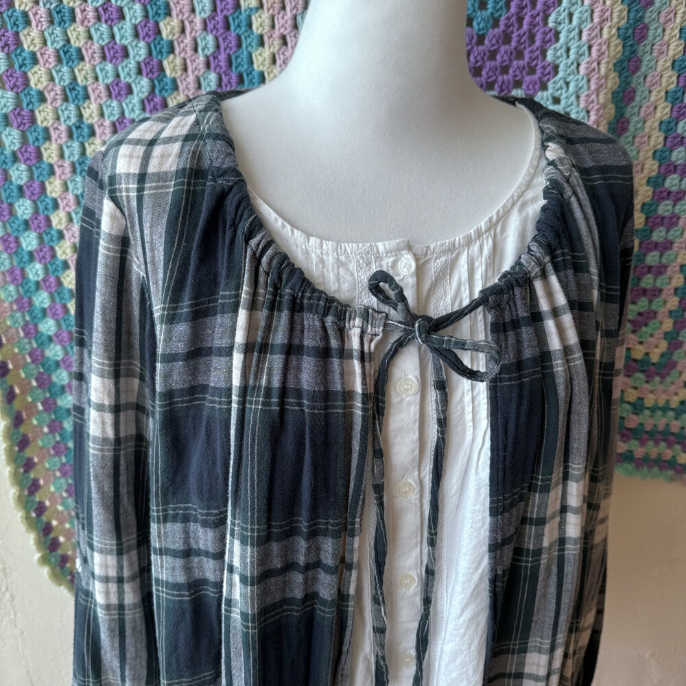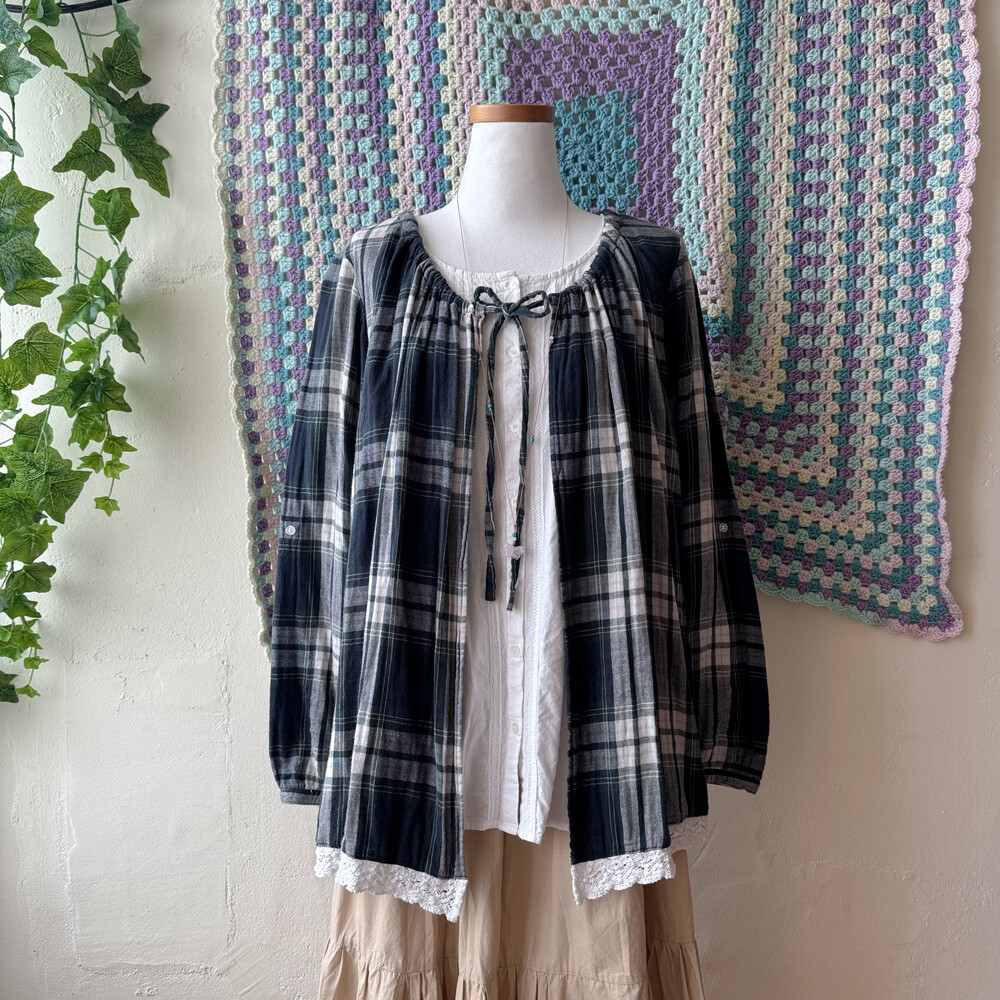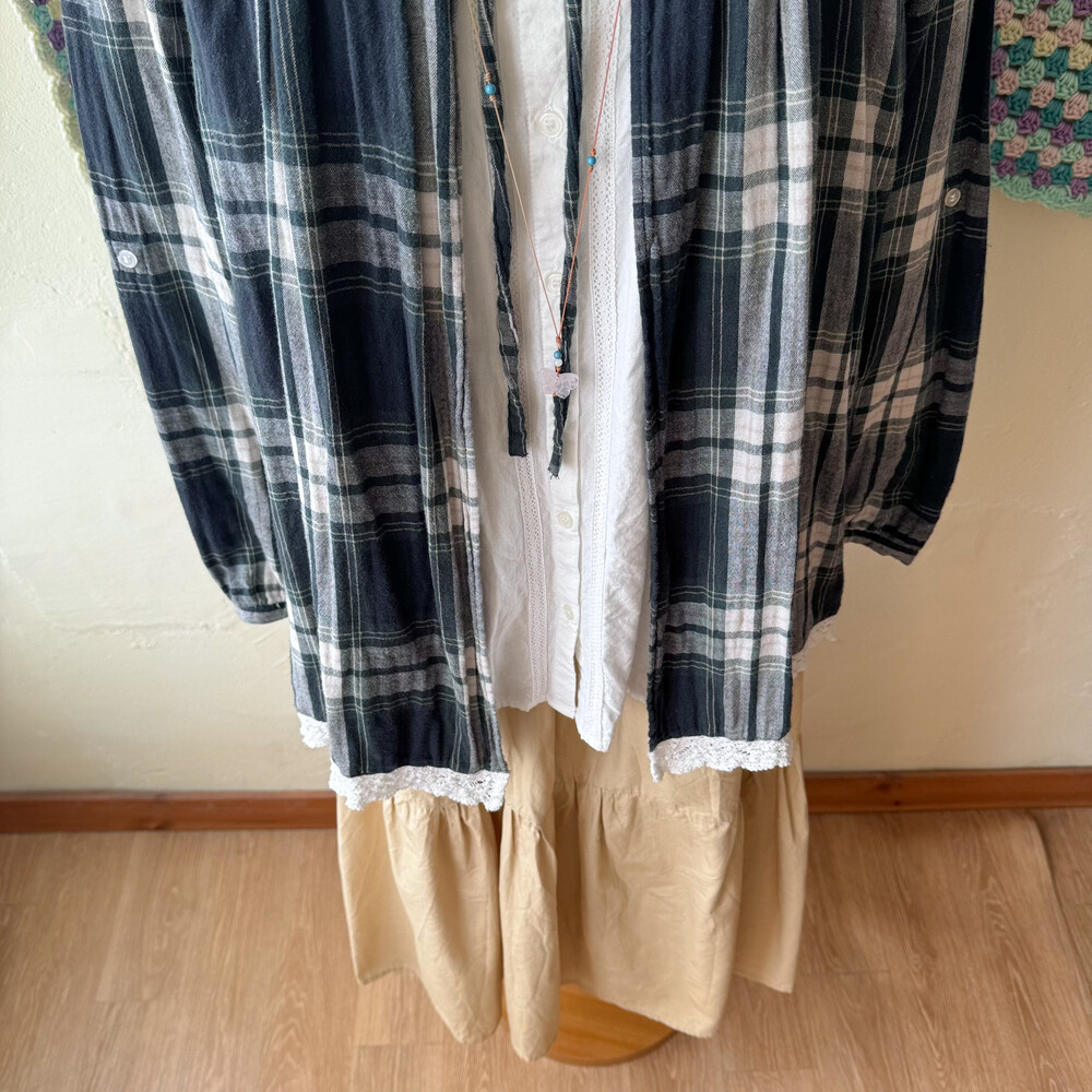 cozy green check layared bl