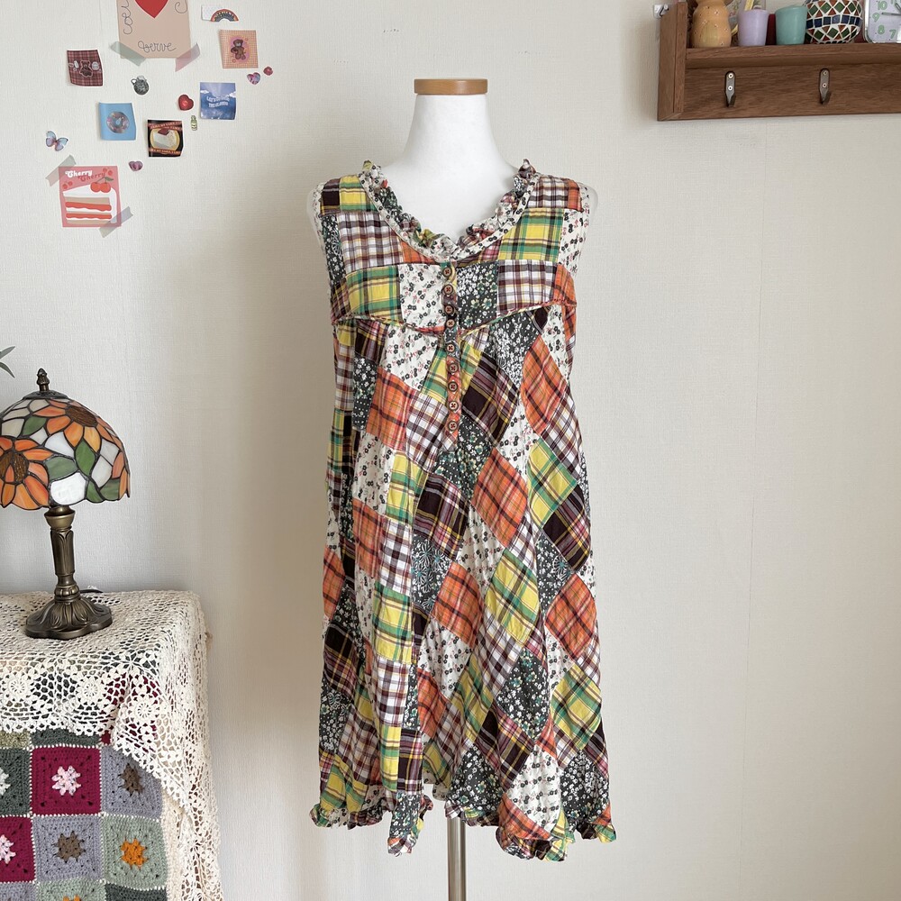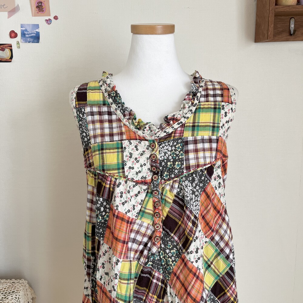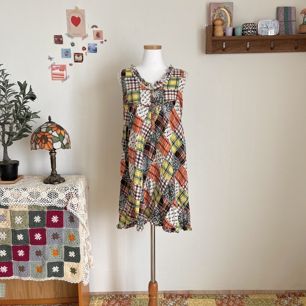 green&orange check patch sleeveless ops