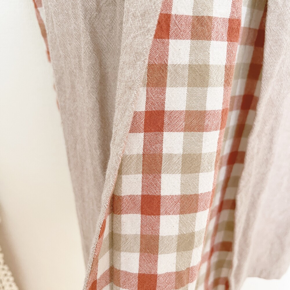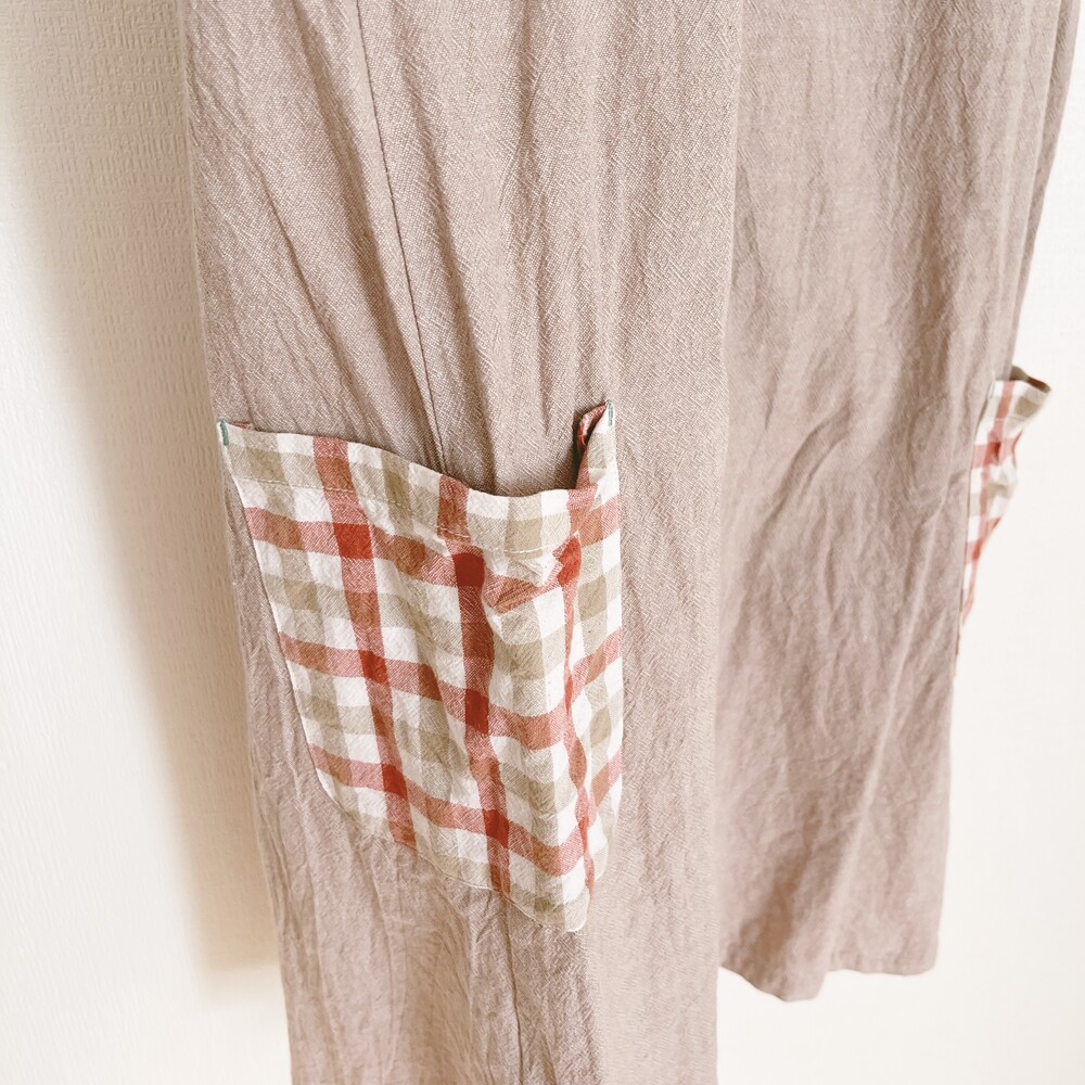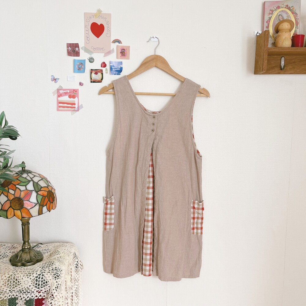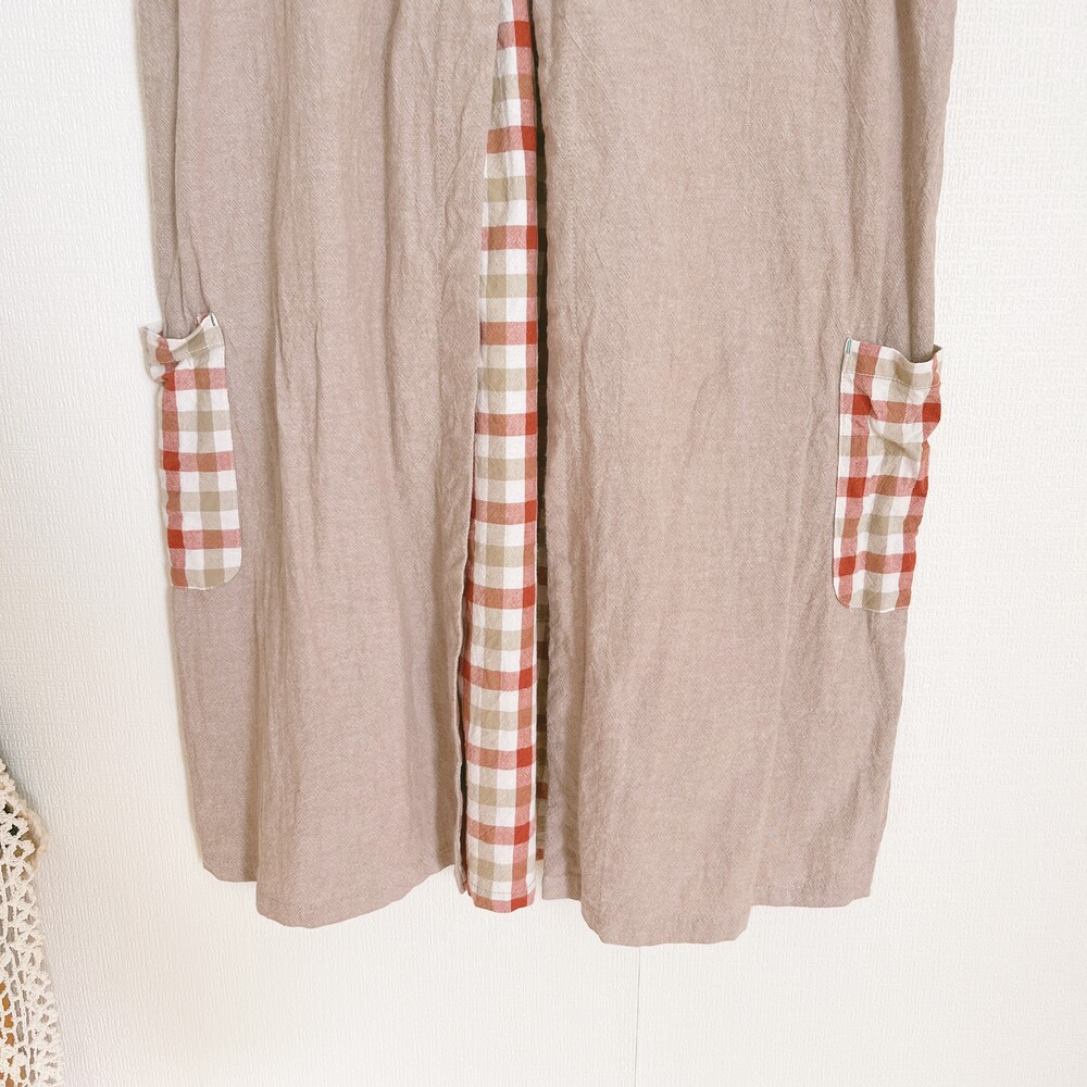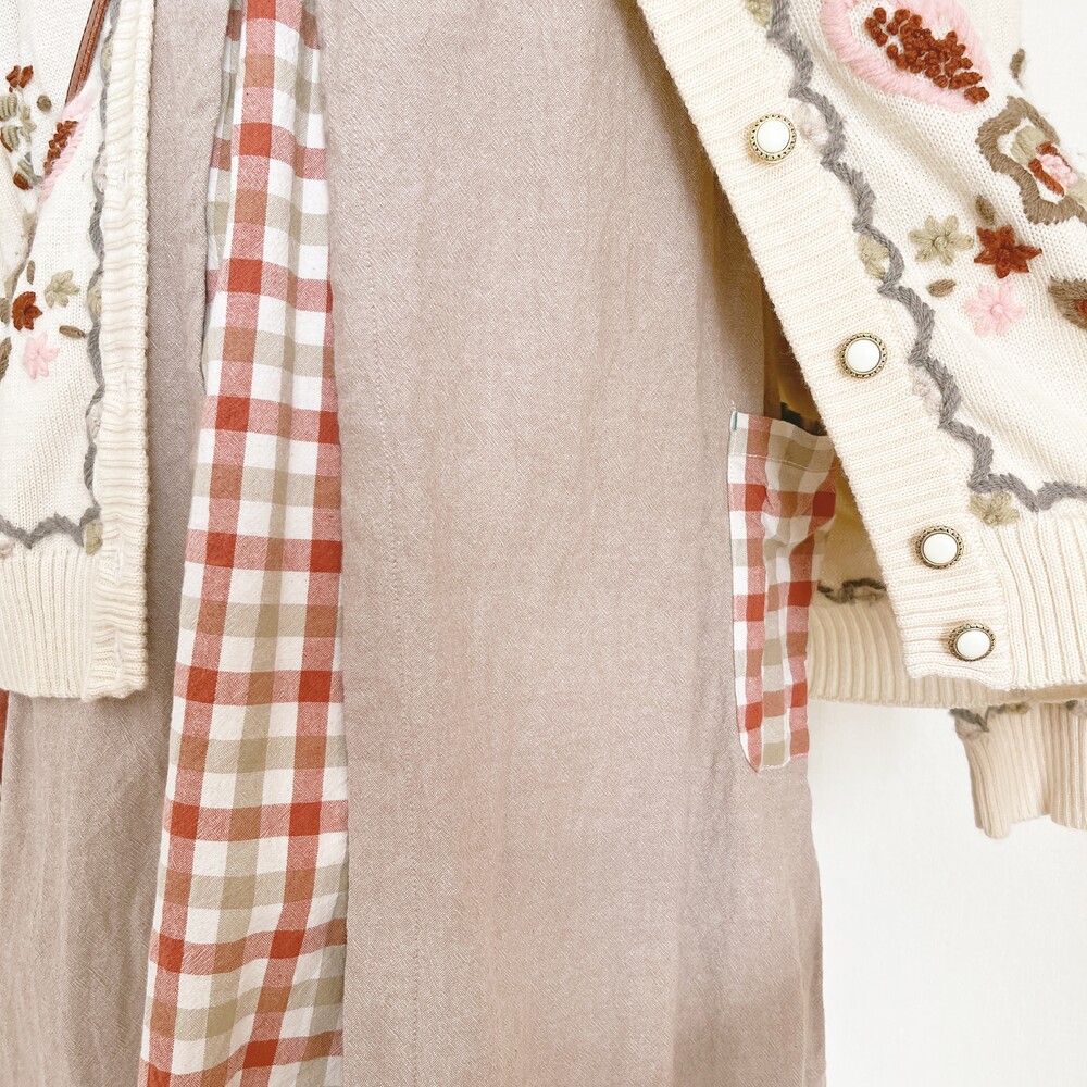 벽돌 브라운 색감 체크 포인트의 민소매 원피스예요
