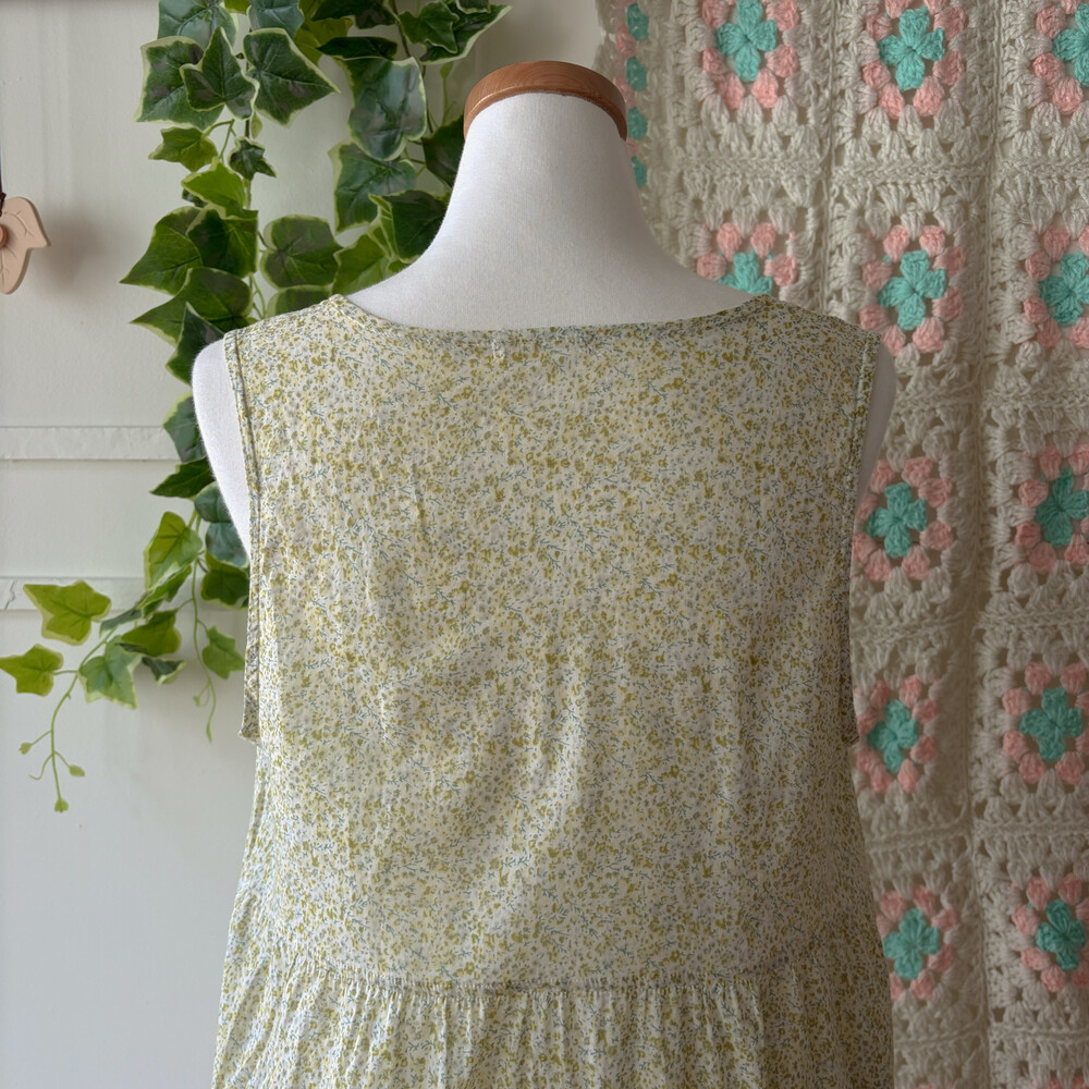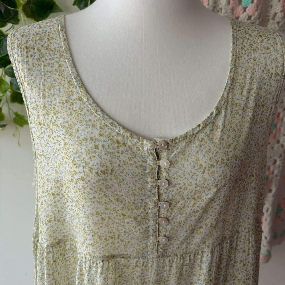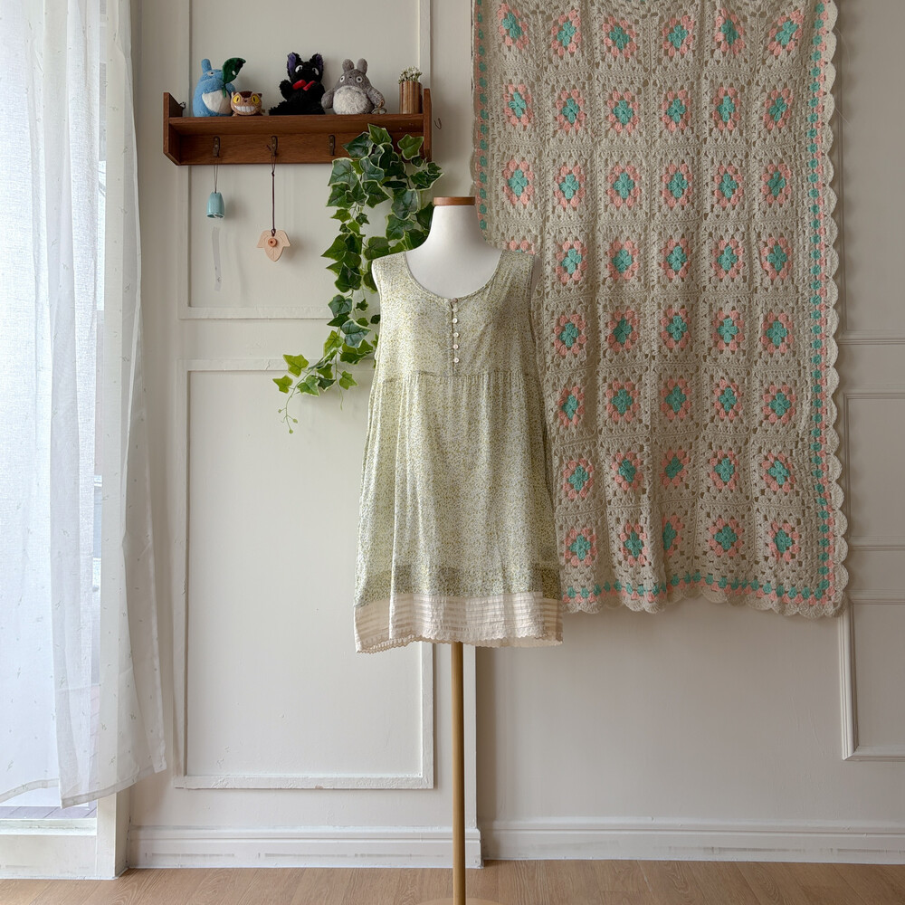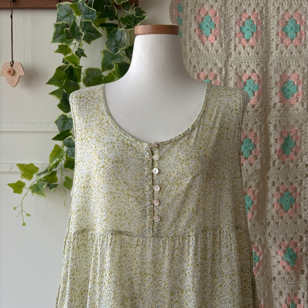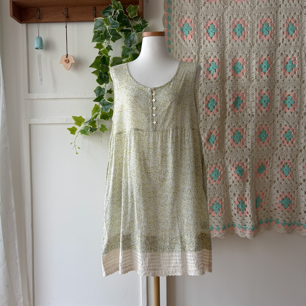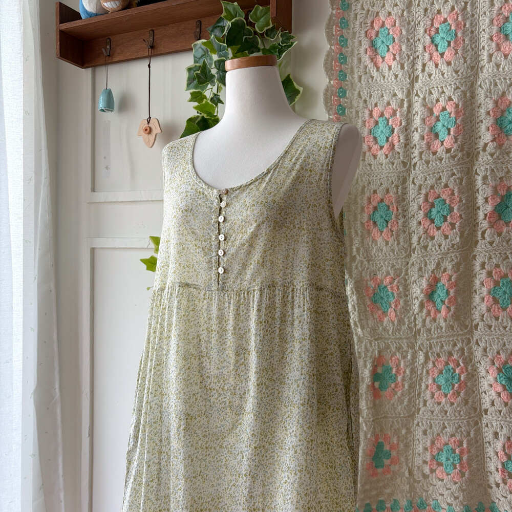 그리너리한 잔꽃 코튼 민소매 원피스예요