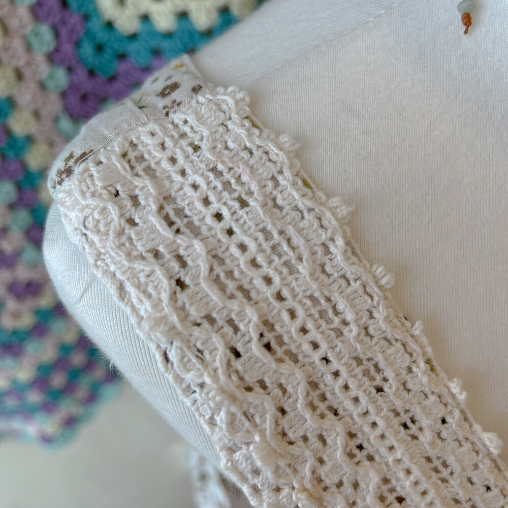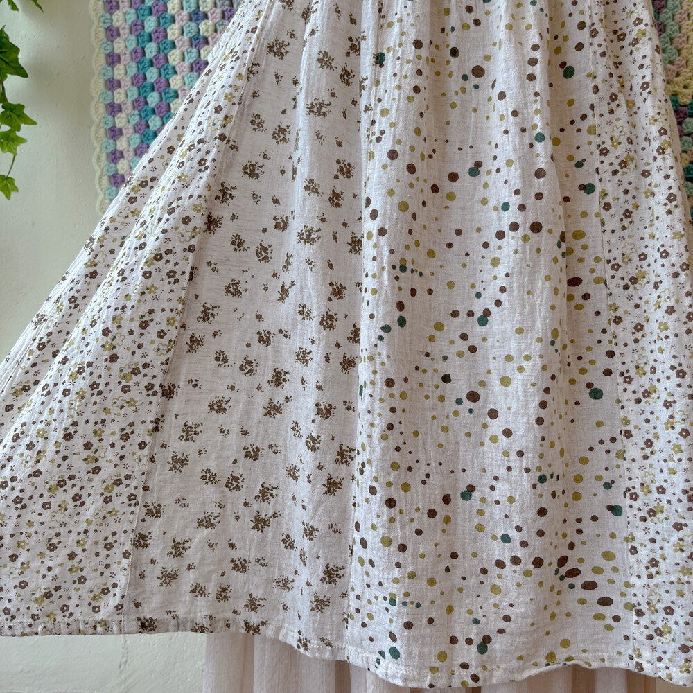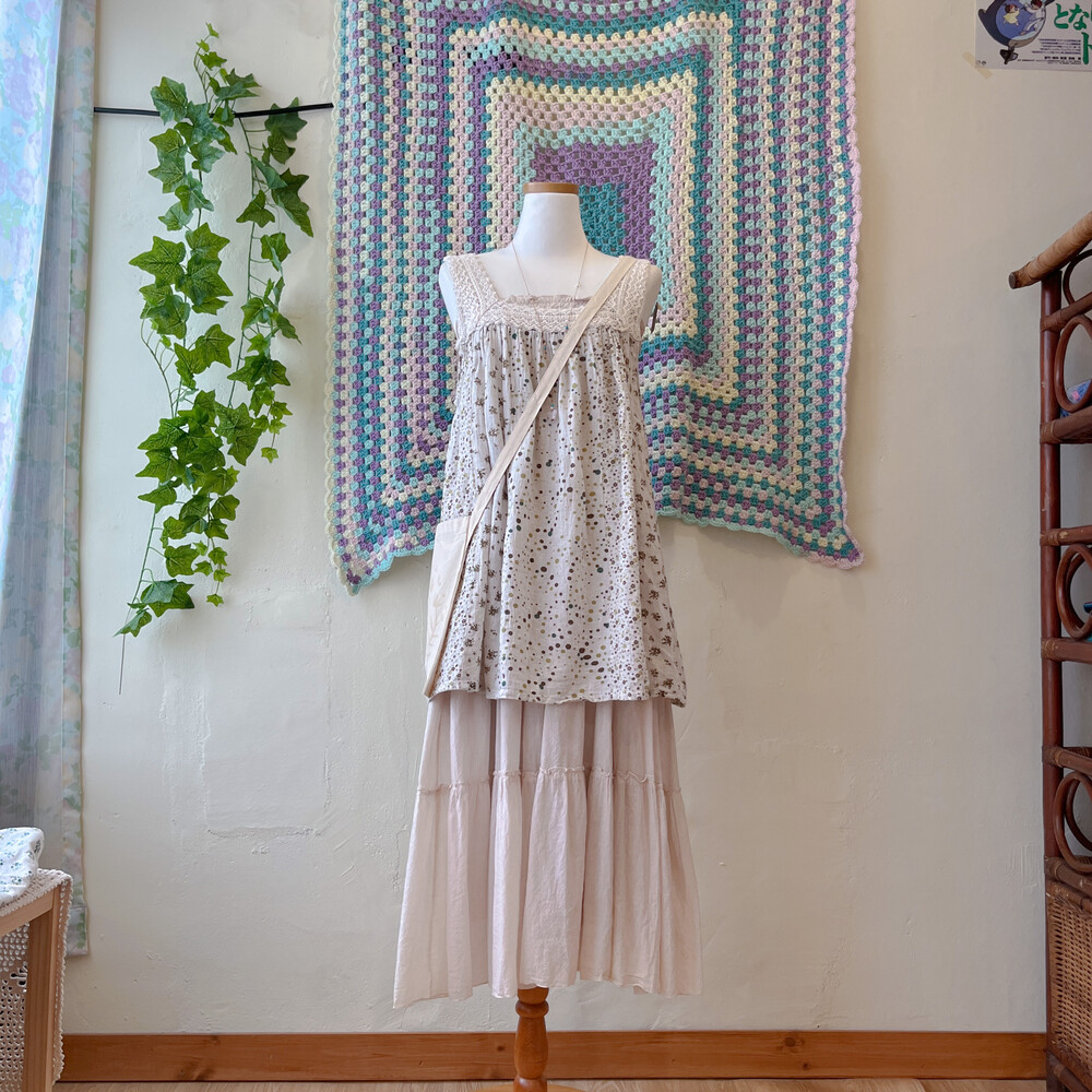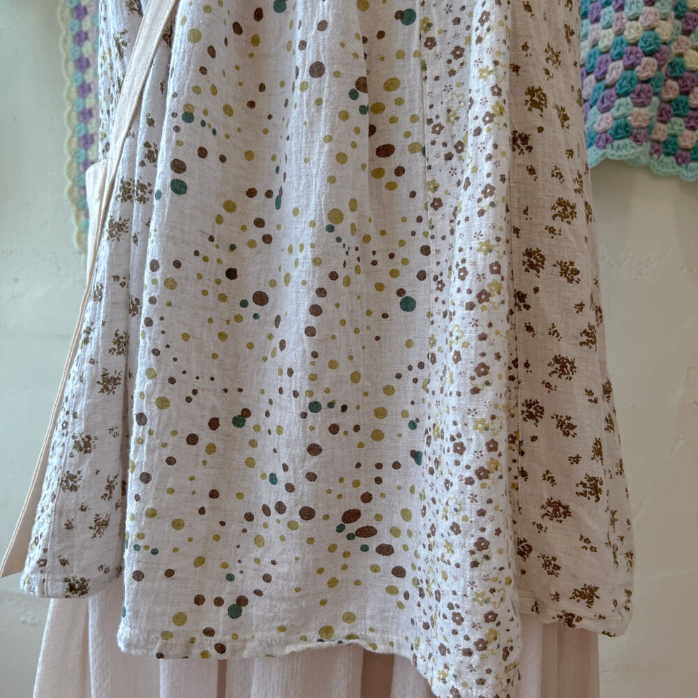 오트밀 색감 바탕에 그리너리한 패턴이 가득한 패치로 조합되어 있어요