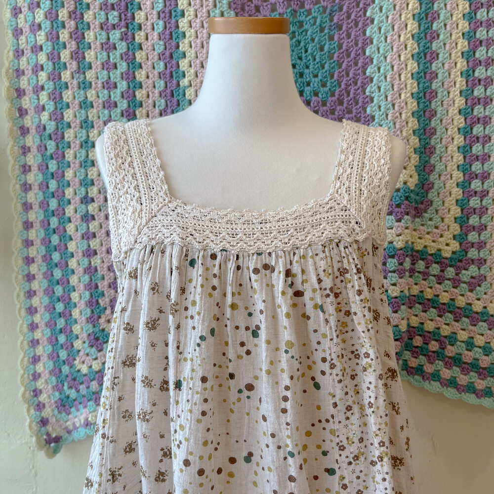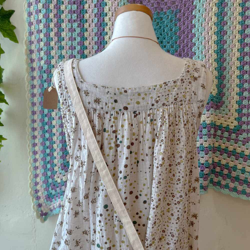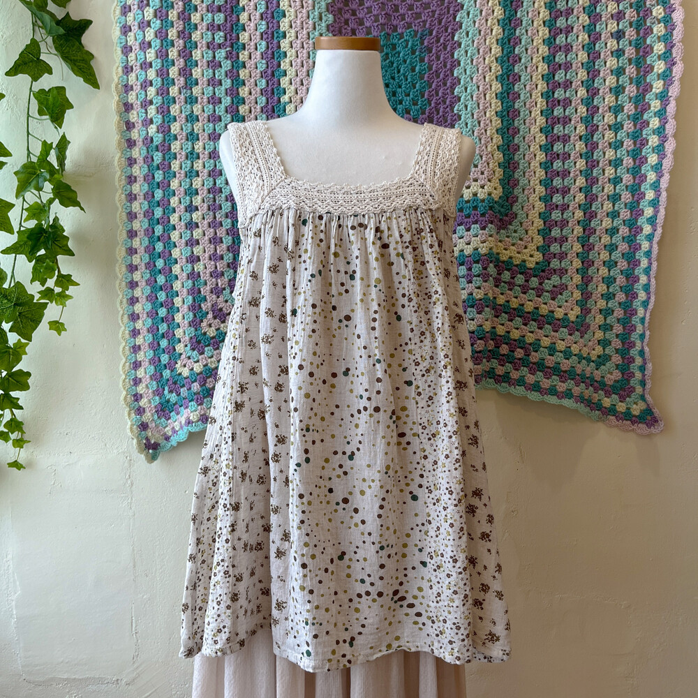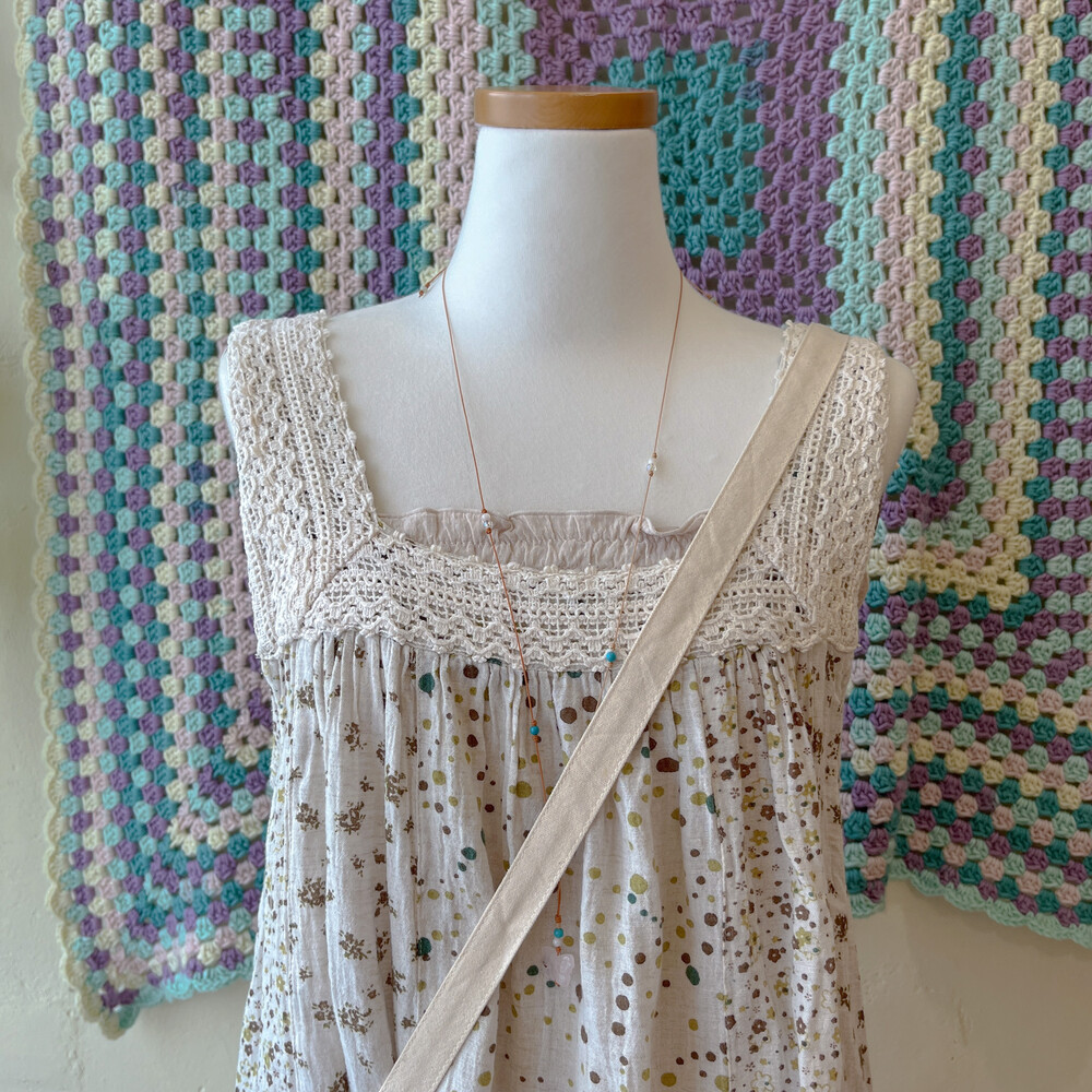 오트밀 색감 바탕에 그리너리한 패턴이 가득한 패치로 조합되어 있어요