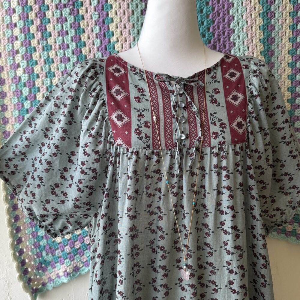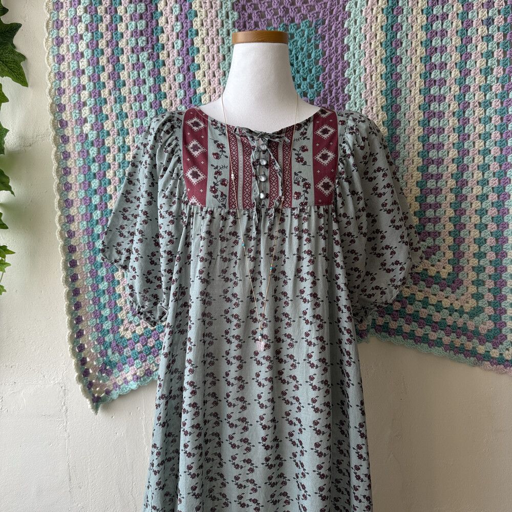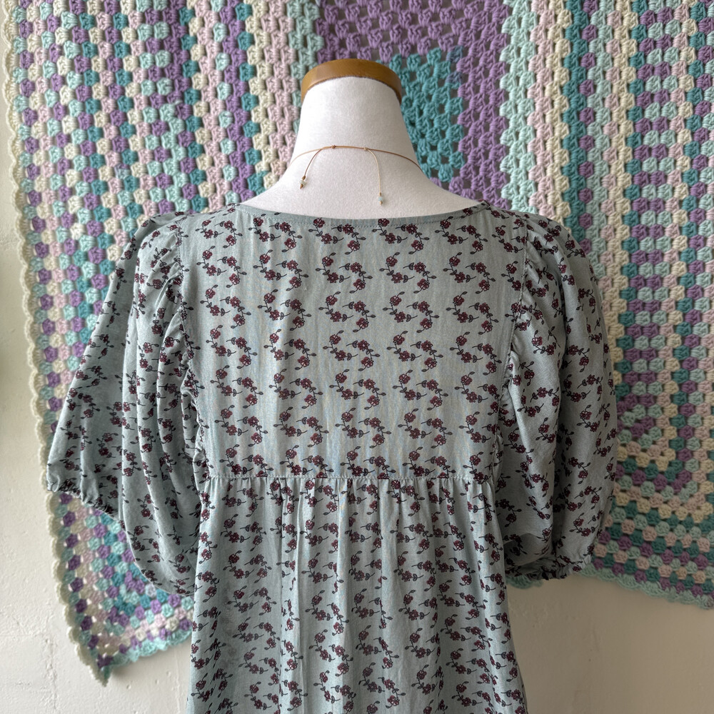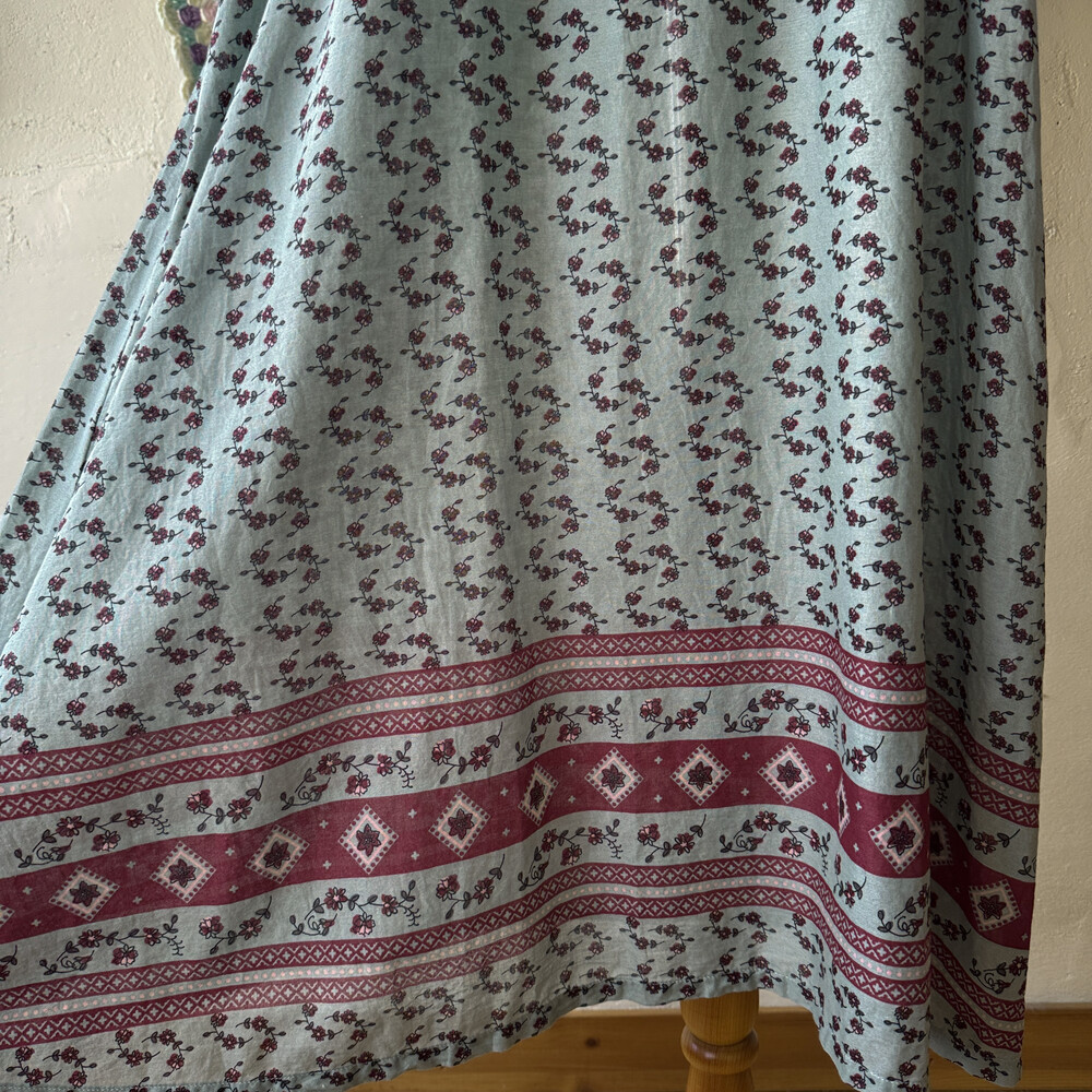 소라색 바탕에 꽃무늬 패턴이 가득한 원피스예요