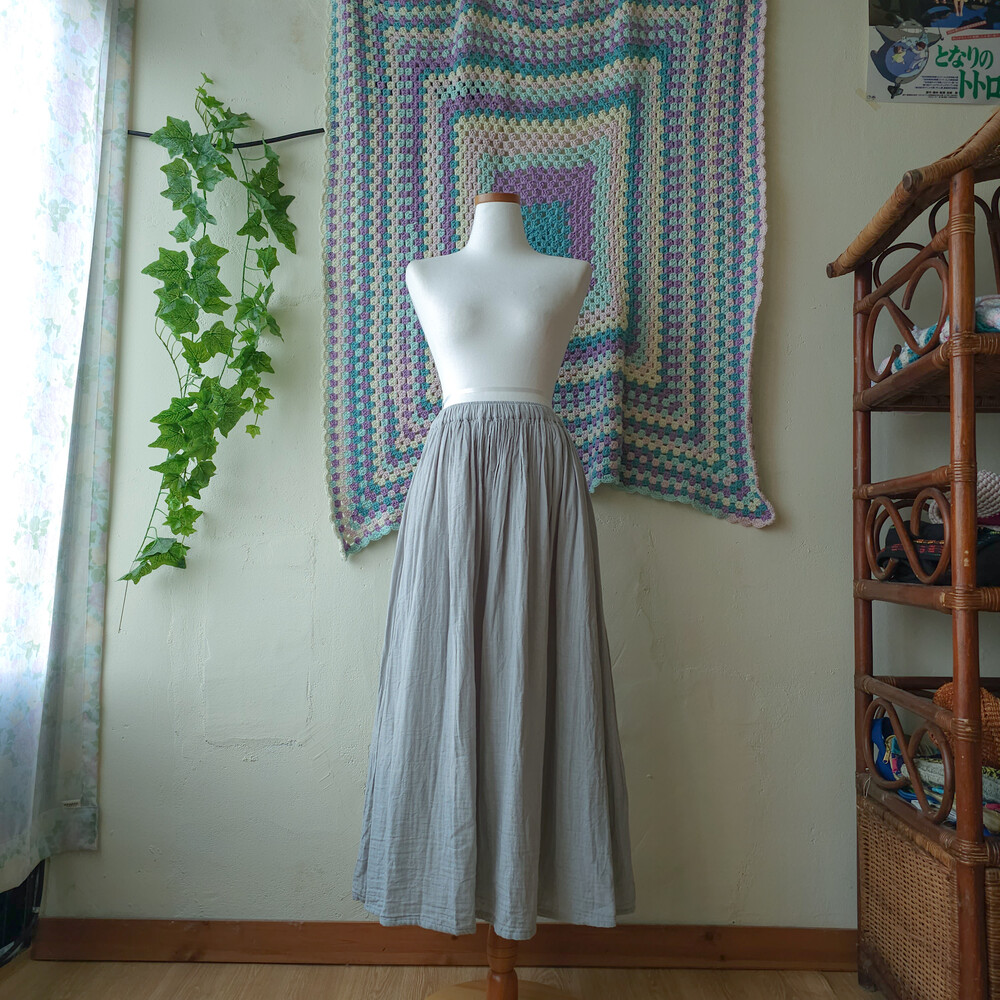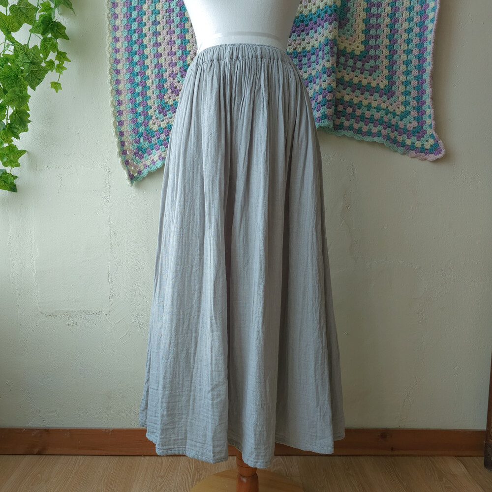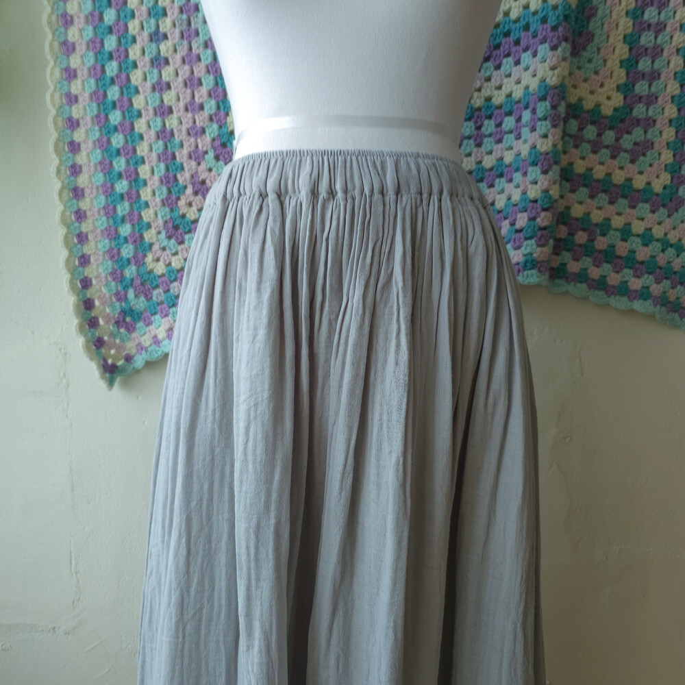소라색에 그레이가 살짝 섞인 듯한 색감의 코튼 스커트예요