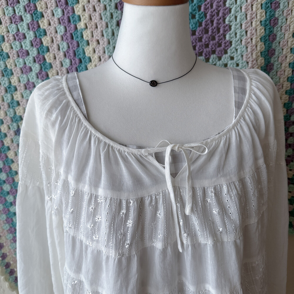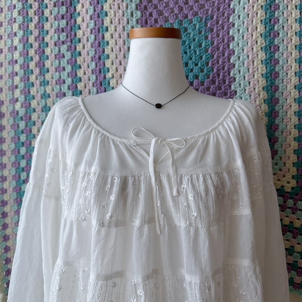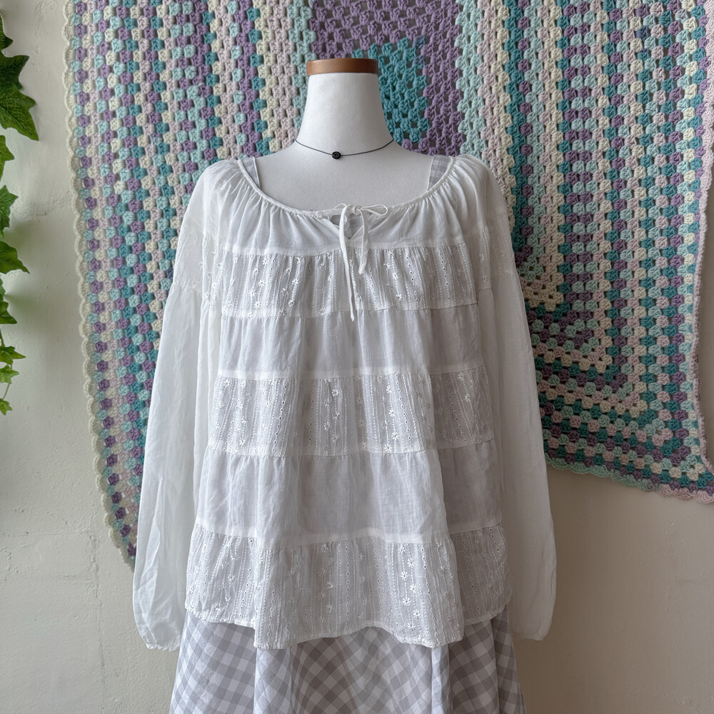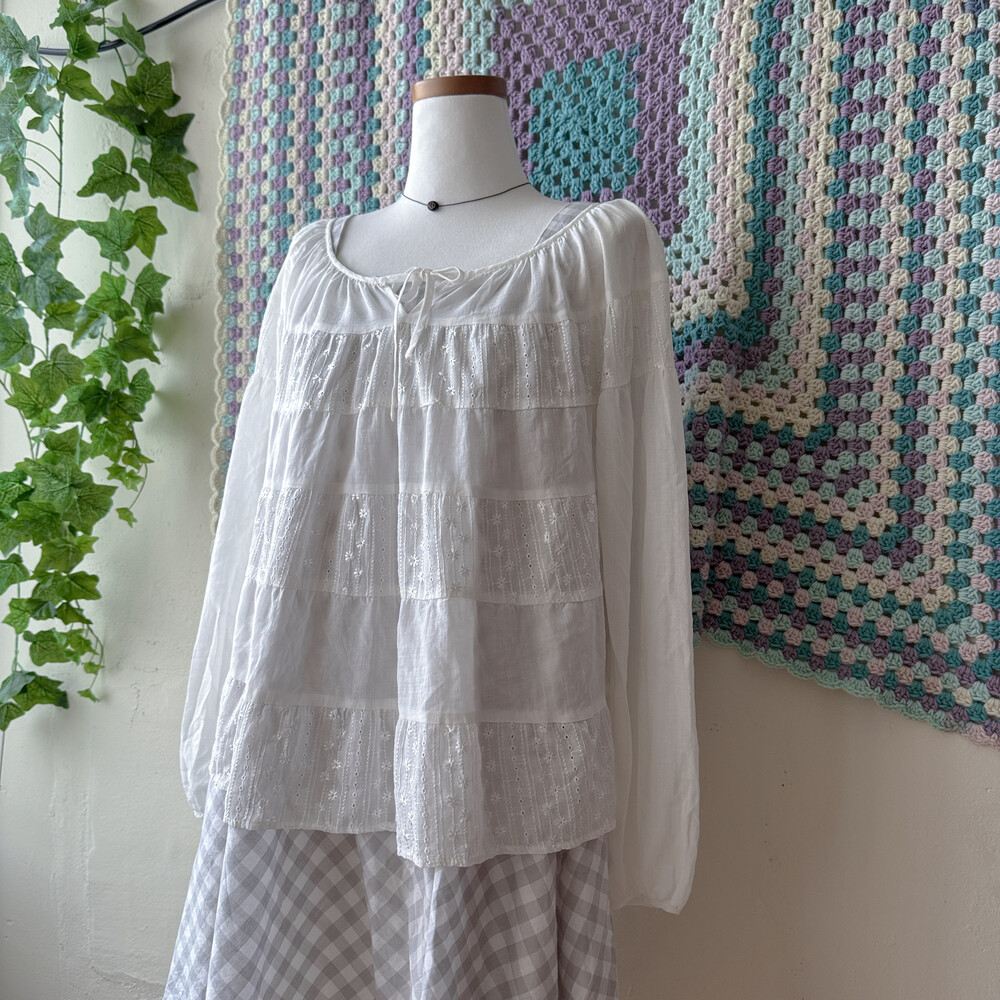시원한 시어 소재의 화이트 패치 블라우스예요