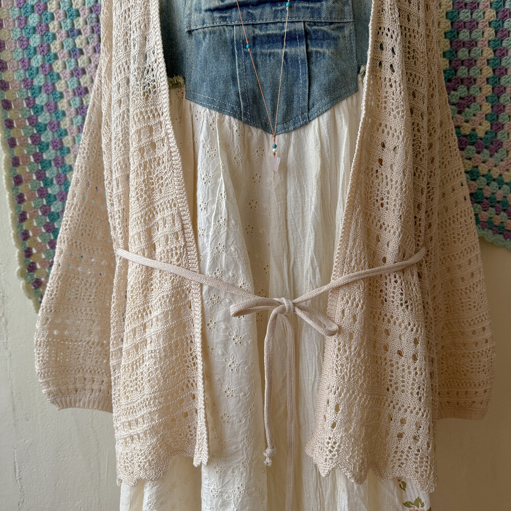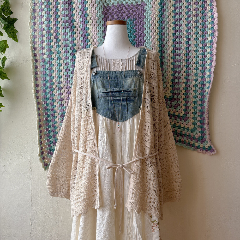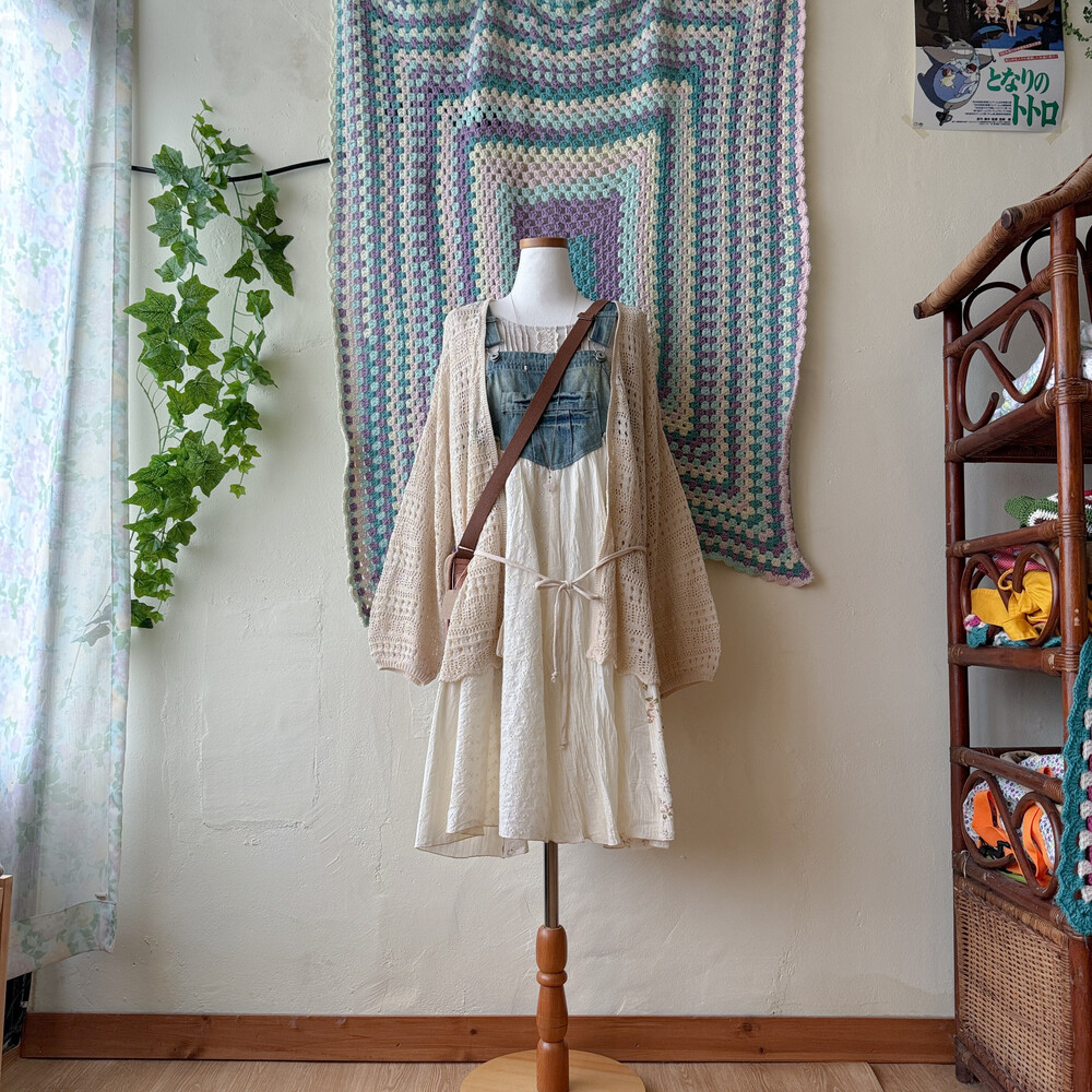 연베이지 색감의 펀칭 오버사이즈 가디건이에요
