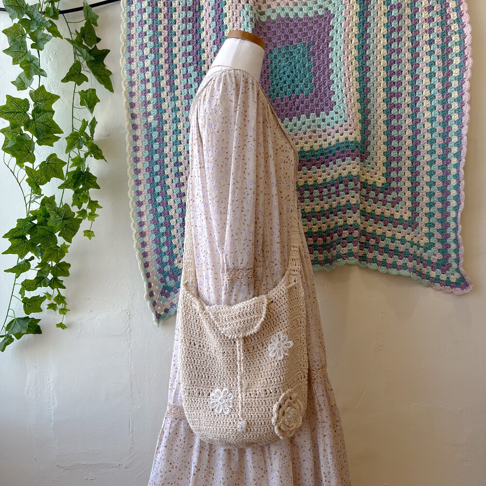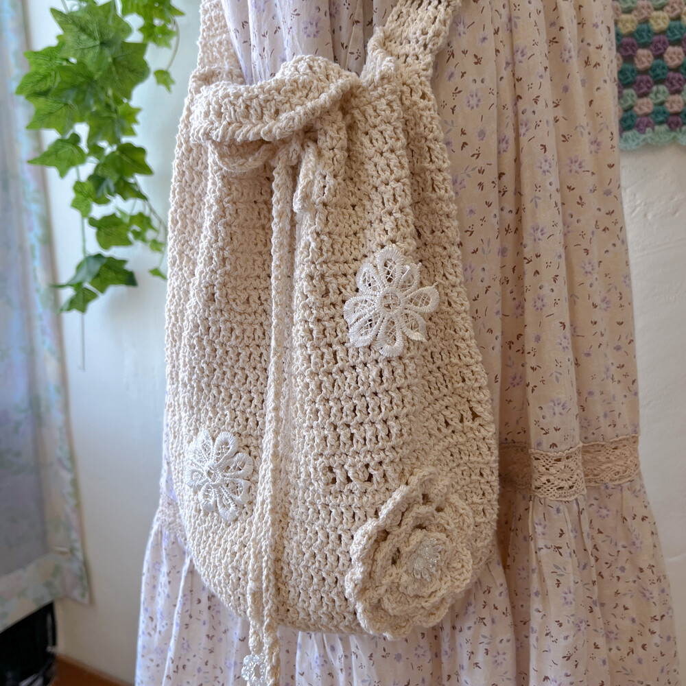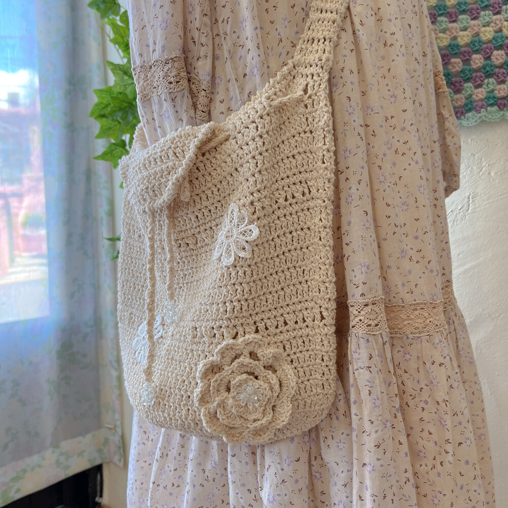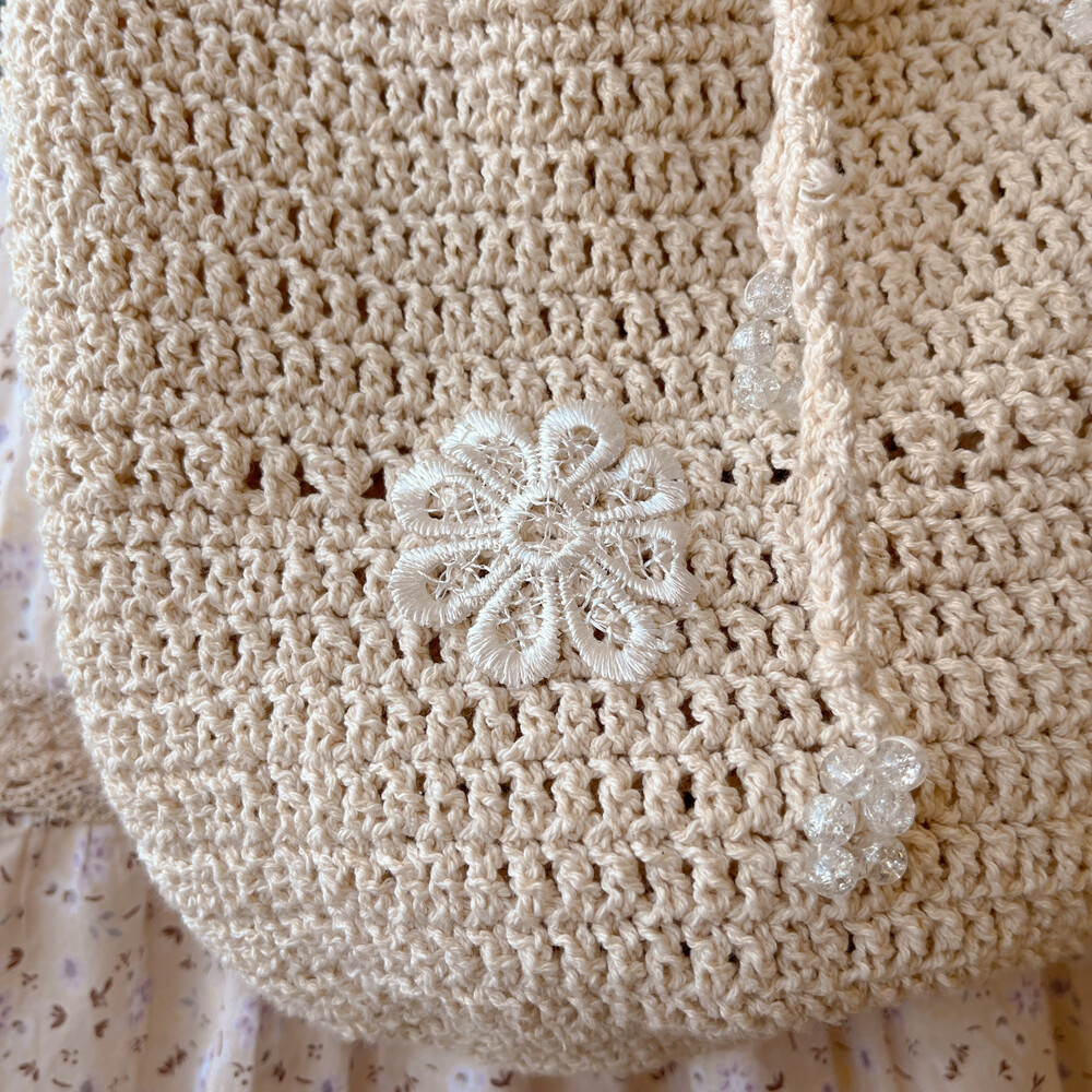 베이지 색감의 크로셰 코튼 크로스백이에요