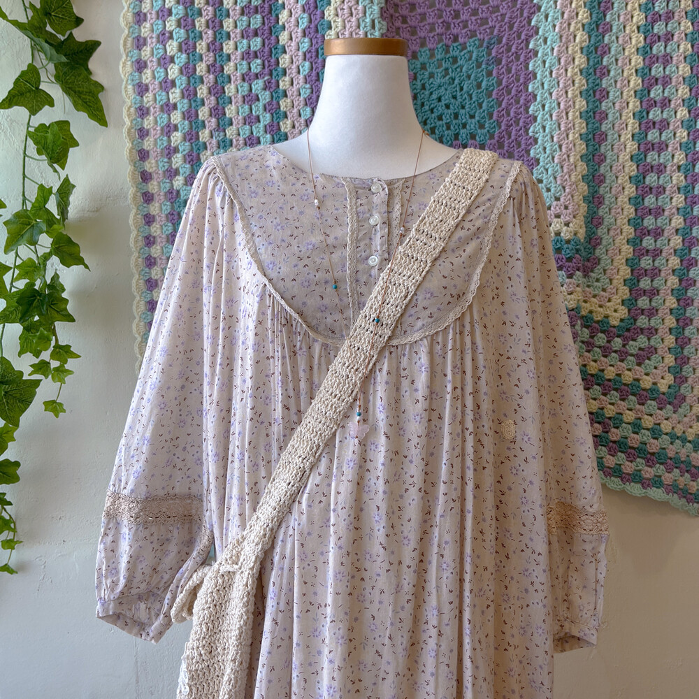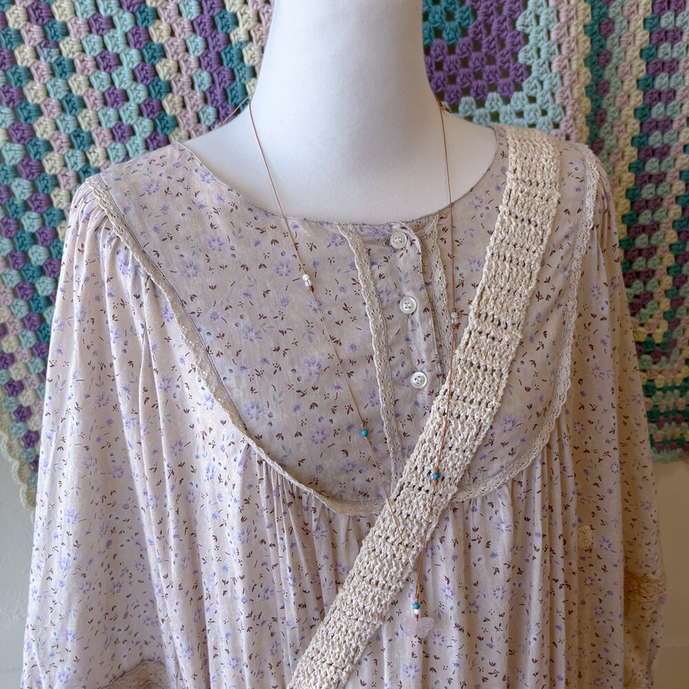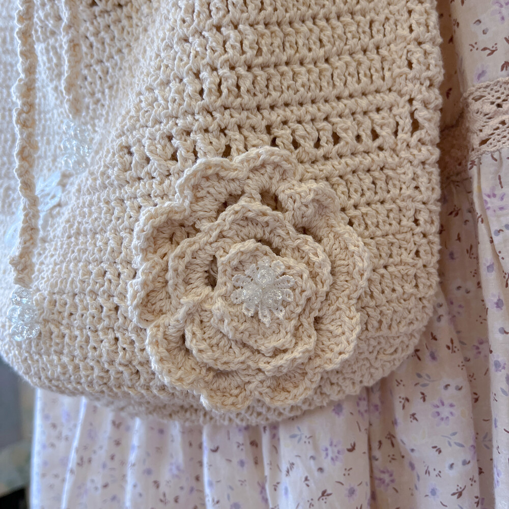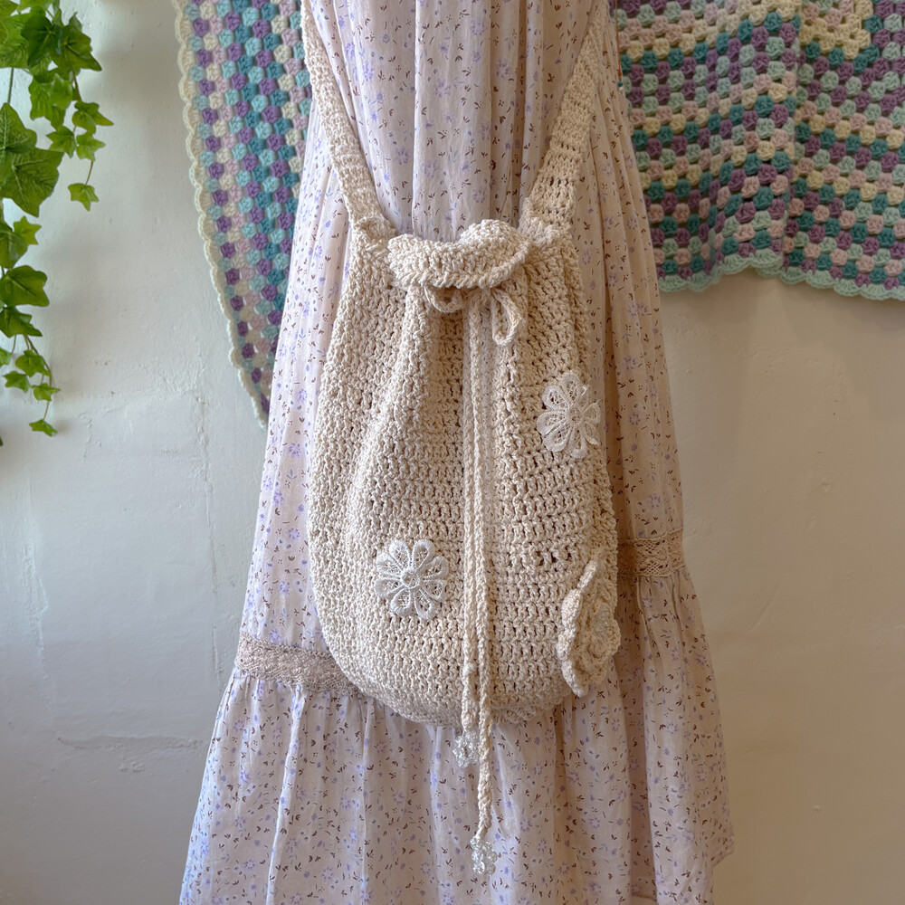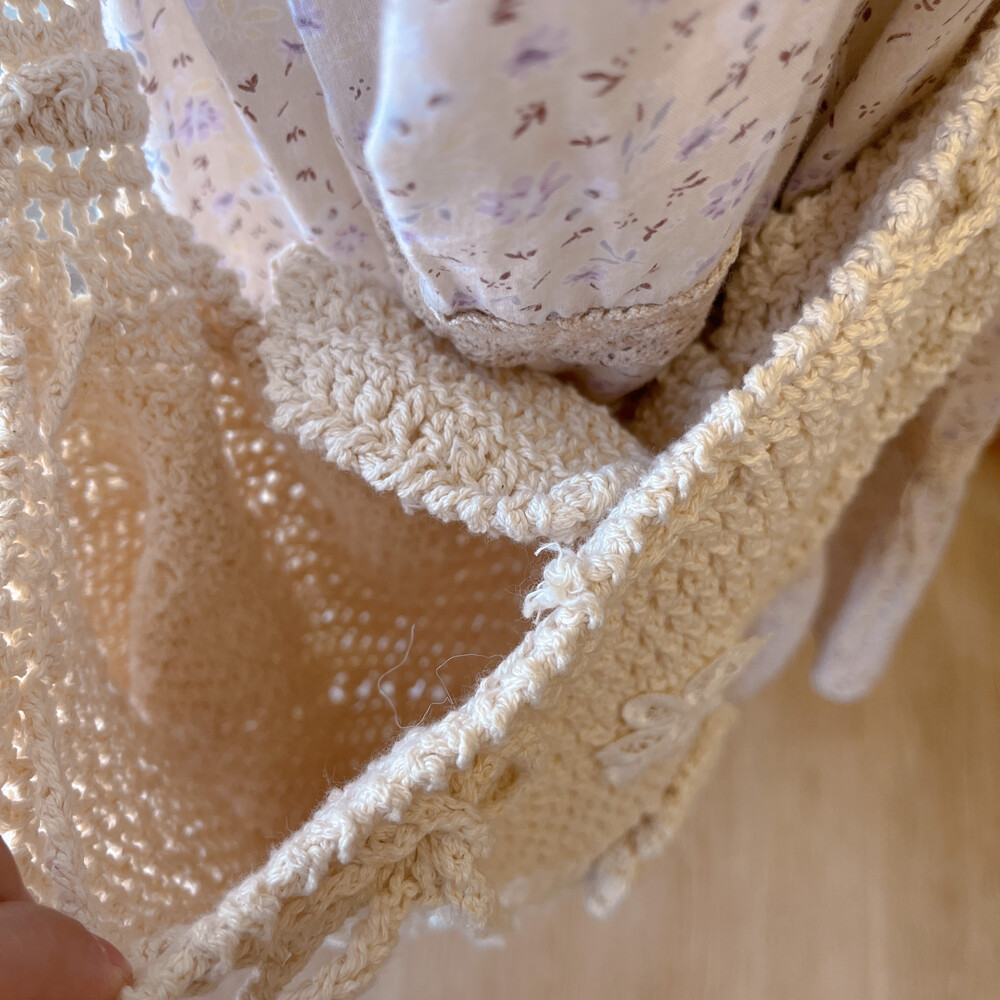 베이지 색감의 크로셰 코튼 크로스백이에요