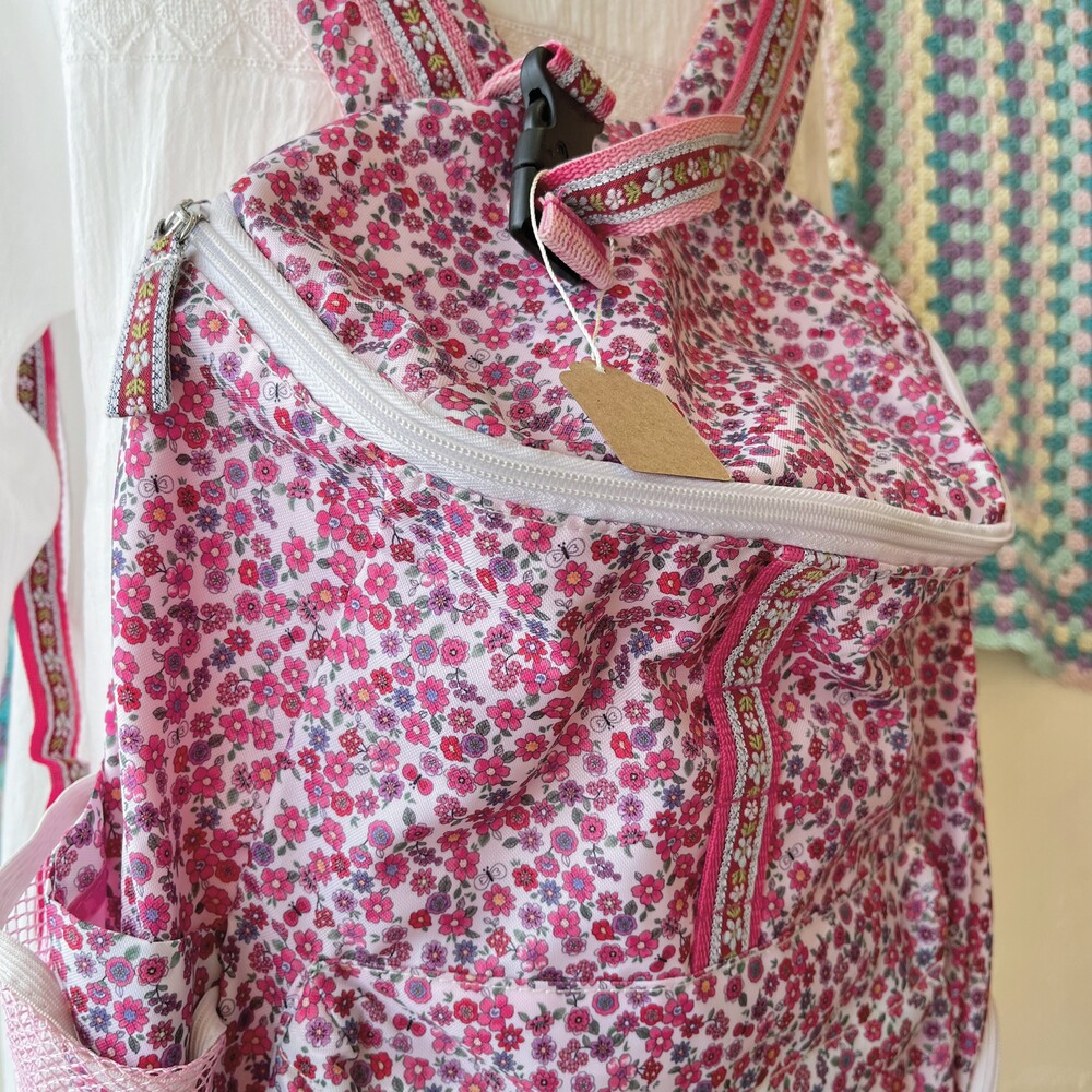 pink mini flower poly backpack