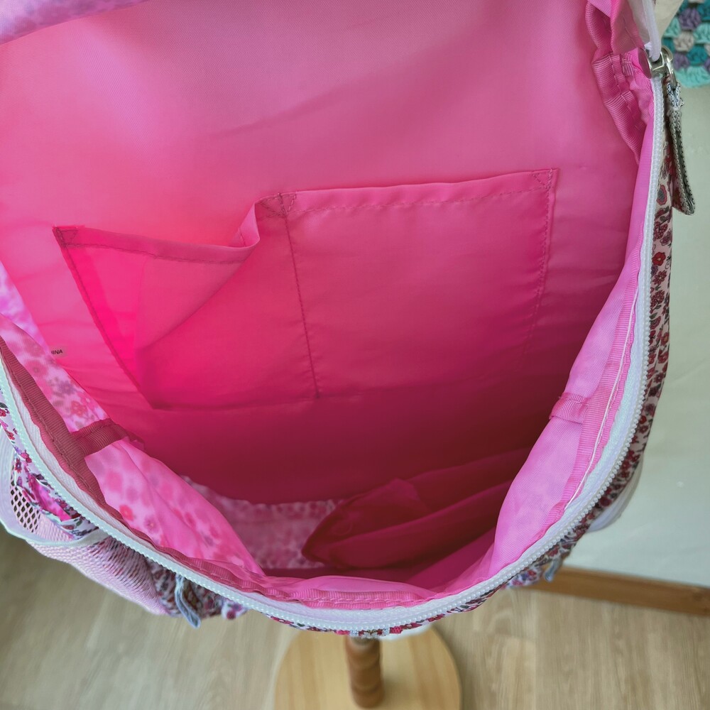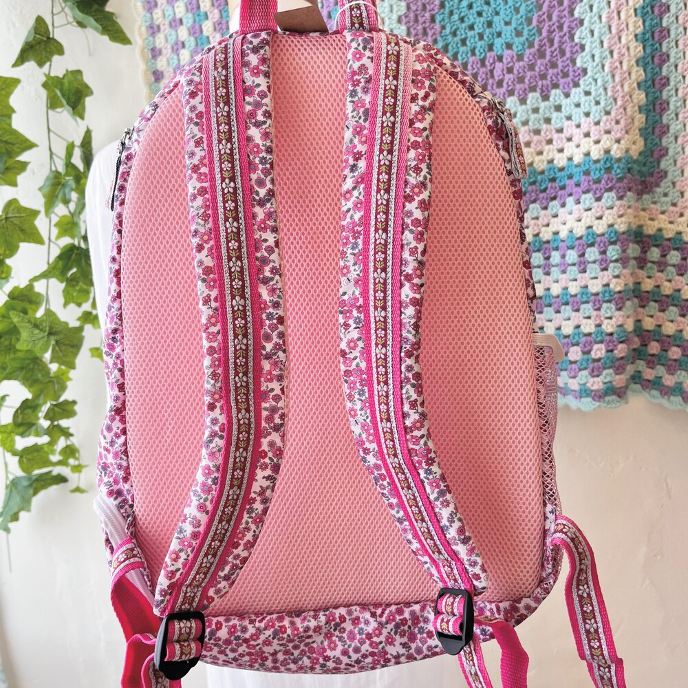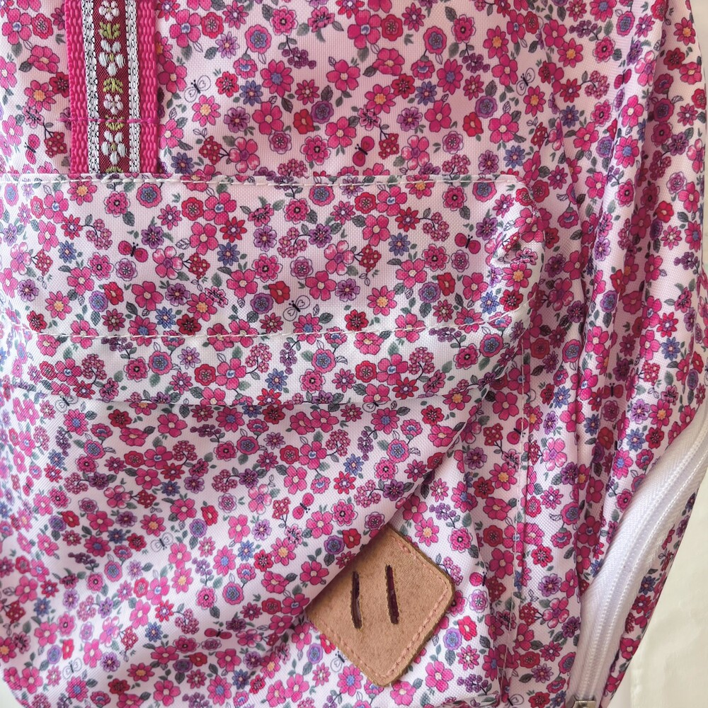 핑크 꽃무늬 패턴의 백팩이에요