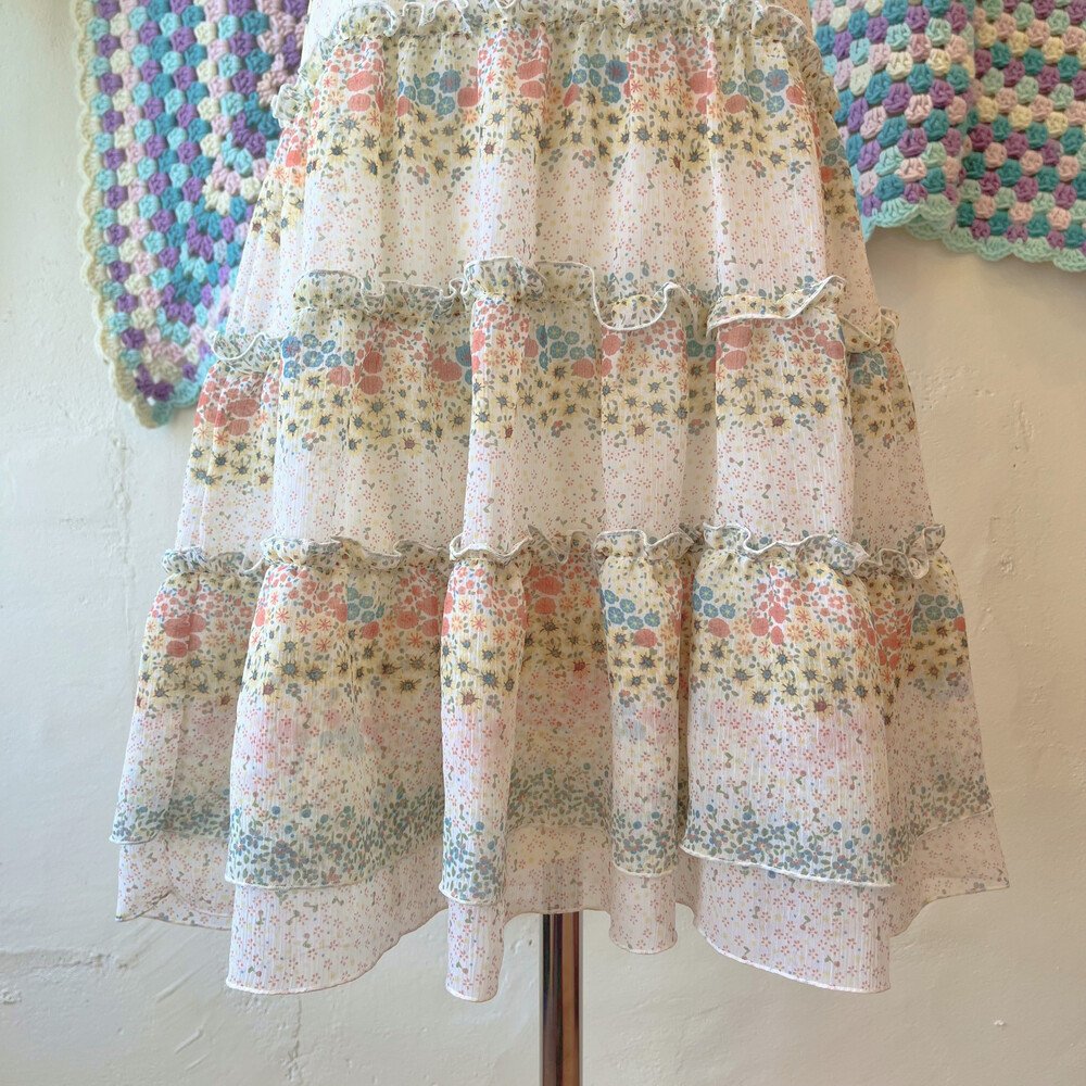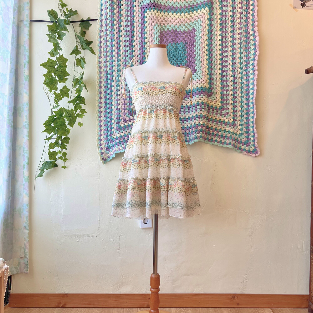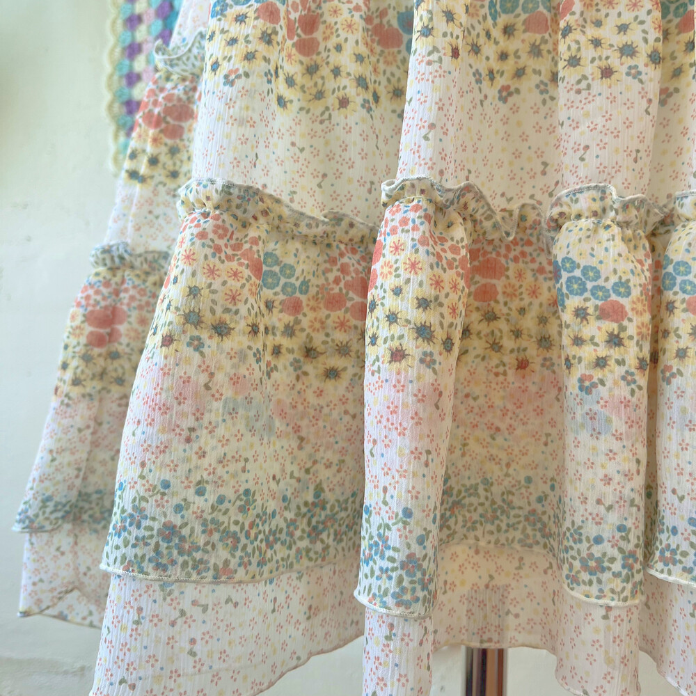 밀키한 색감의 잔꽃 쉬폰 미니 끈원피스예요