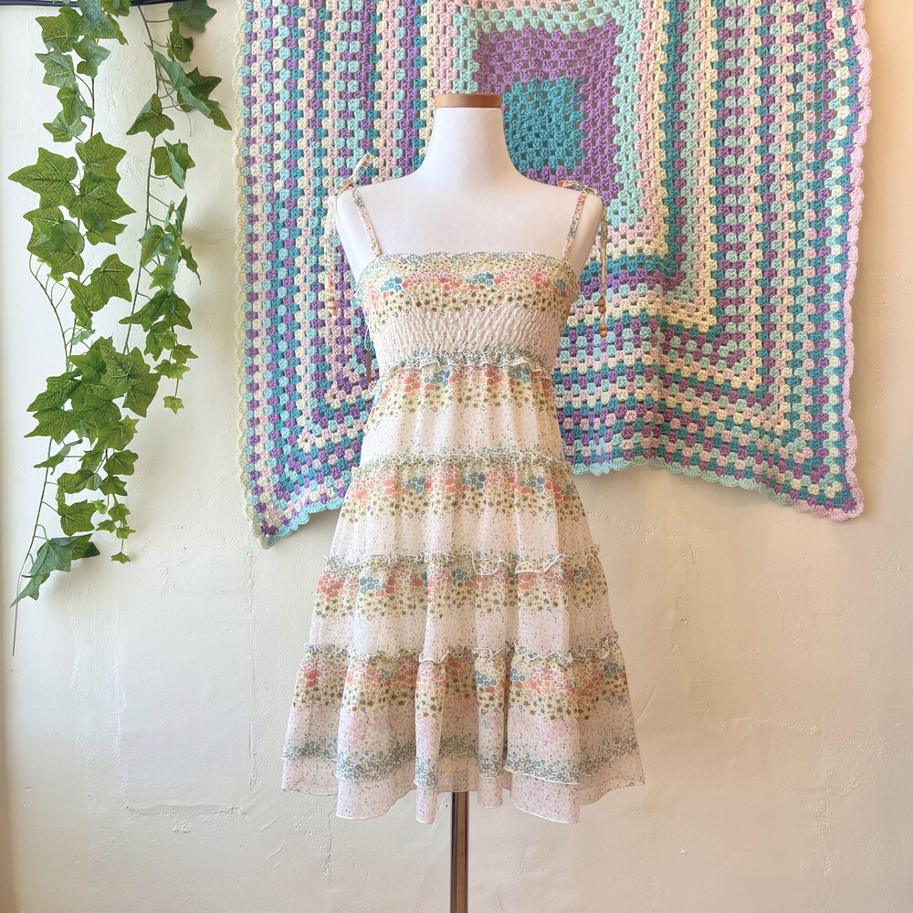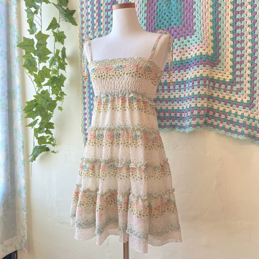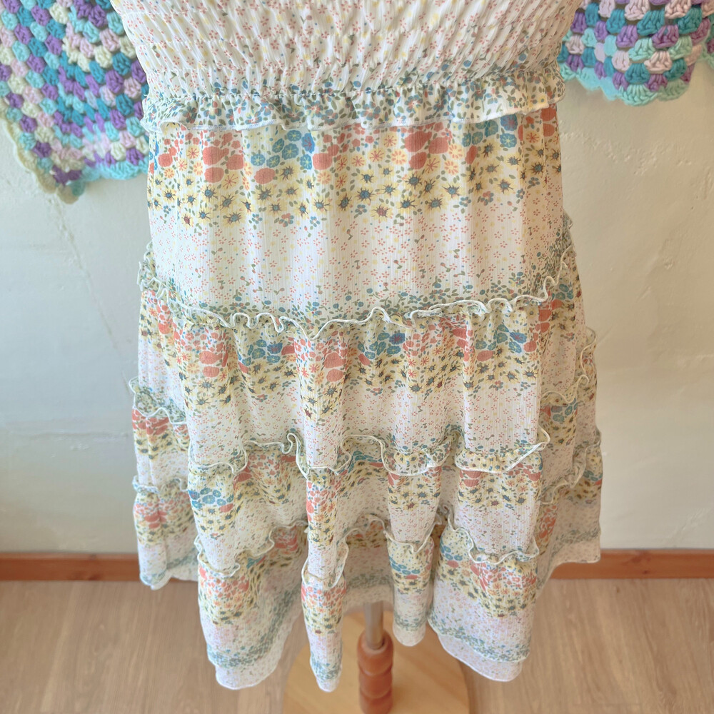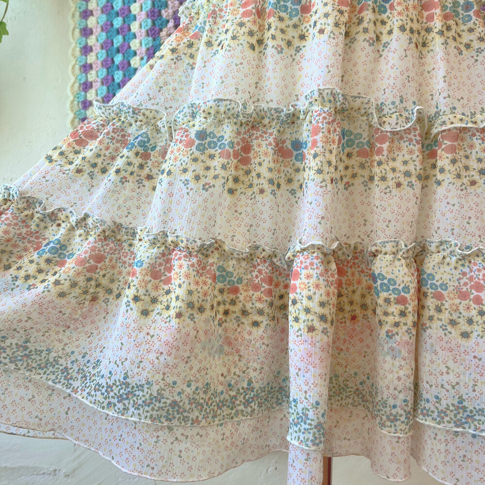 밀키한 색감의 잔꽃 쉬폰 미니 끈원피스예요