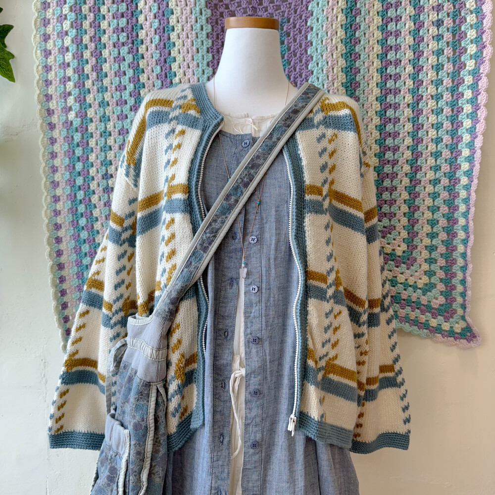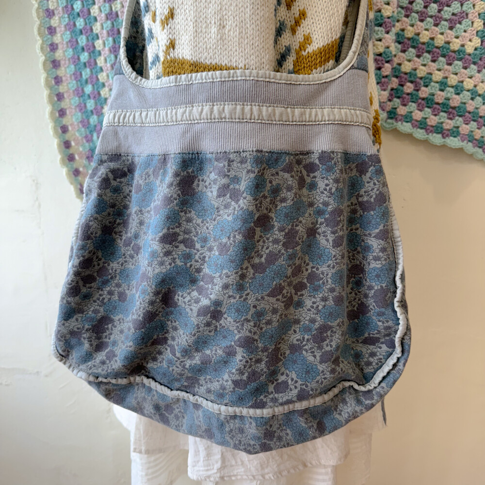 블루, 퍼플 꽃무늬가 가득 들어간 크로스백이에요