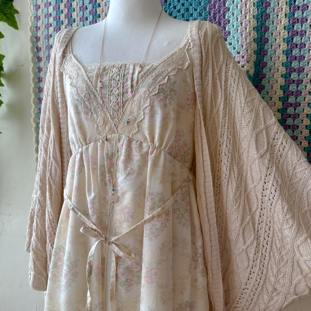 연베이지 색감의 펀칭 볼레로 가디건이에요