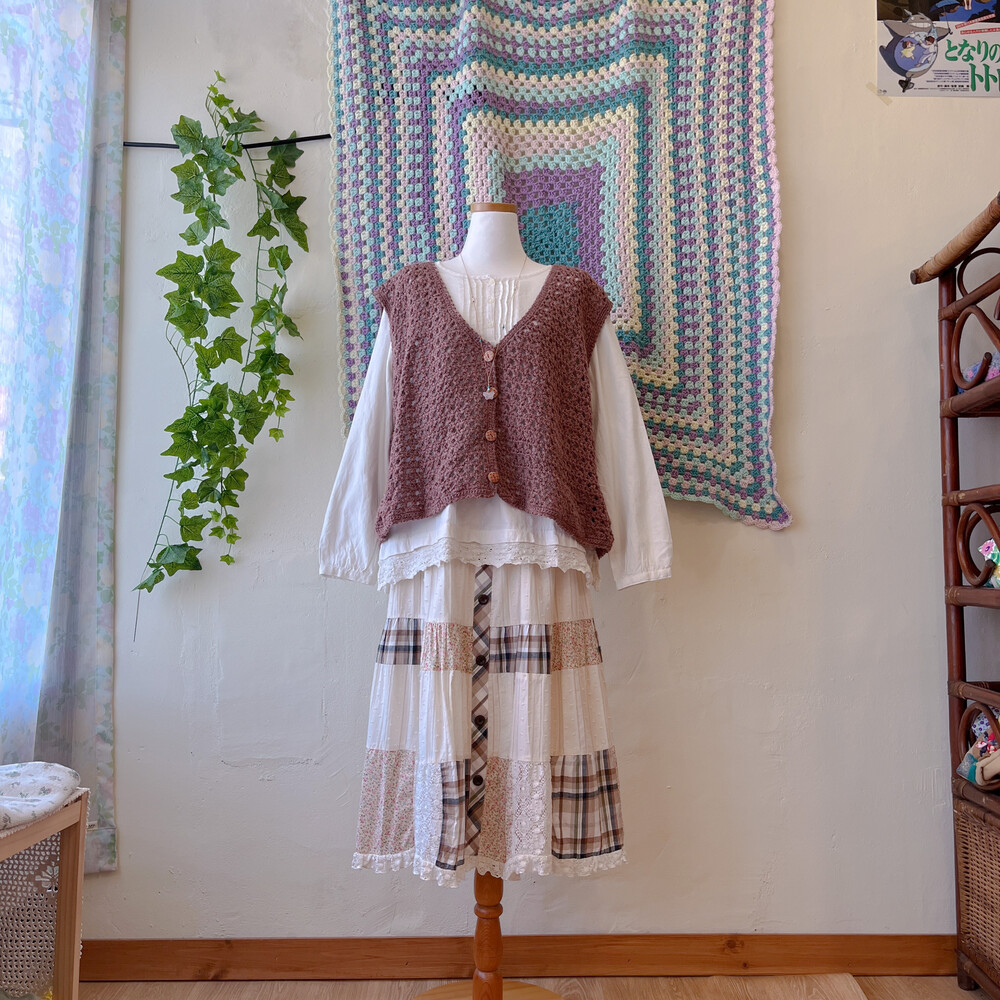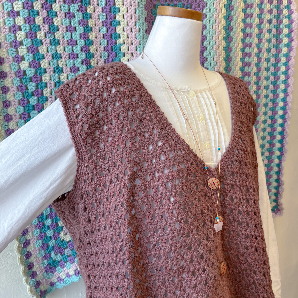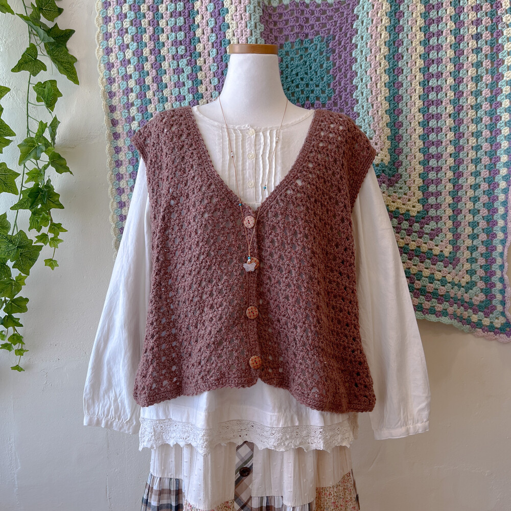 모리모리한 분위기의 오버사이즈 크로셰 조끼예요