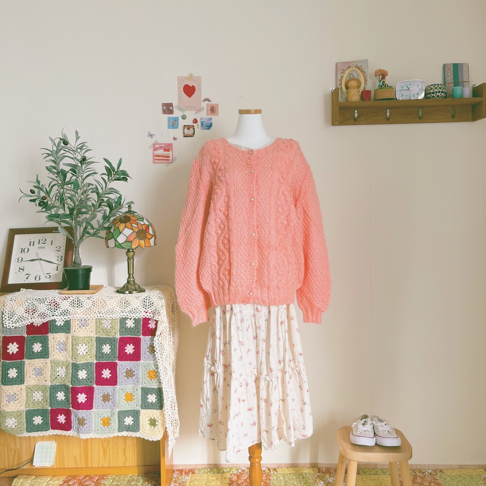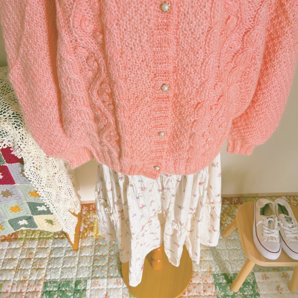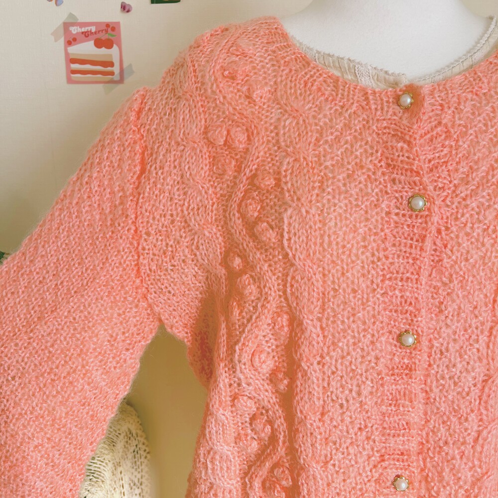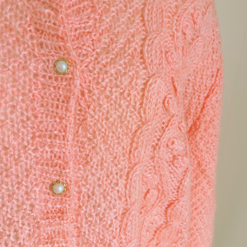 분홍색감의 폼폼 가디건이에요