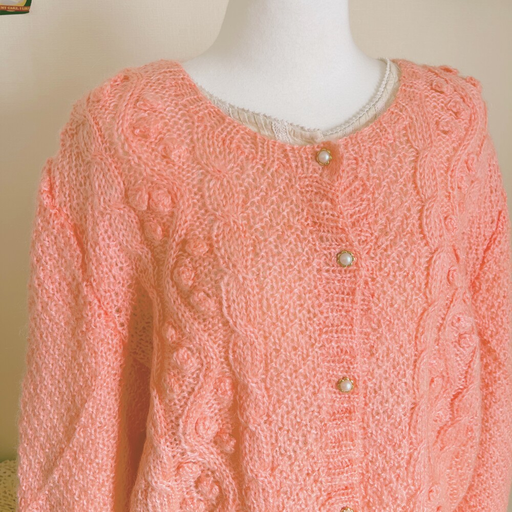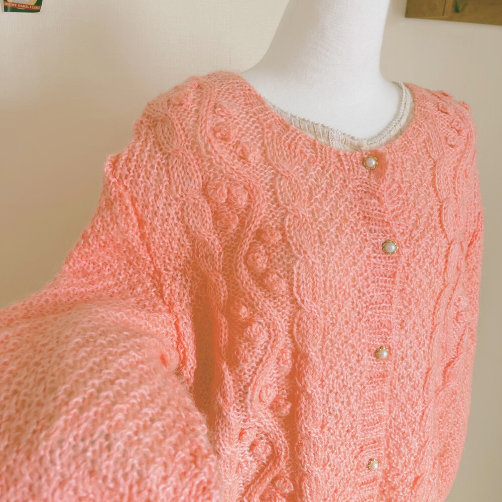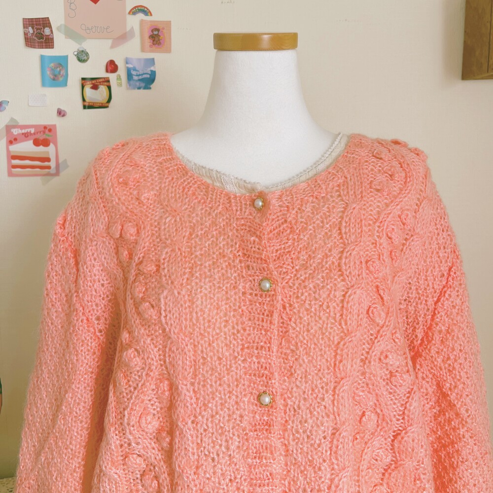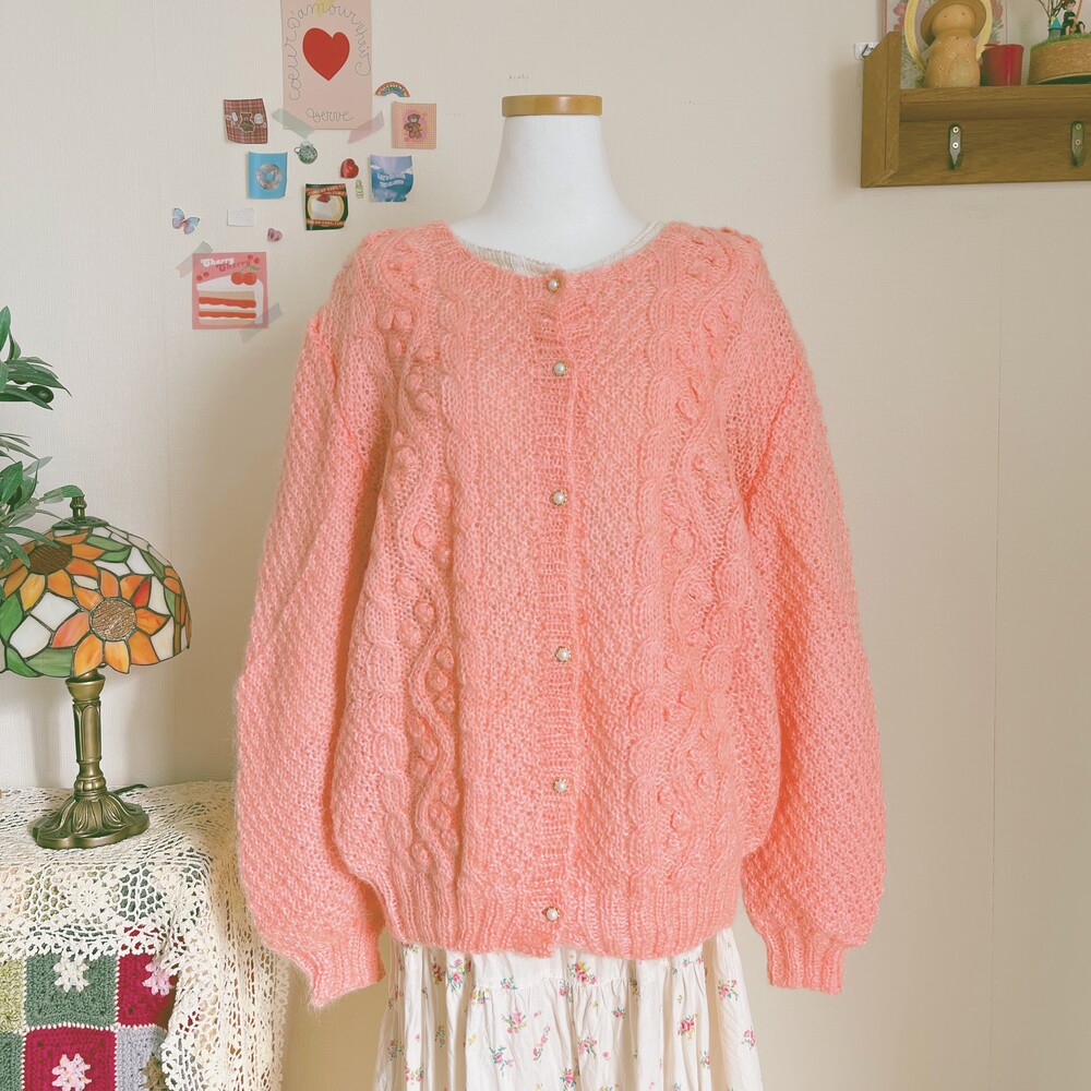 분홍색감의 폼폼 가디건이에요