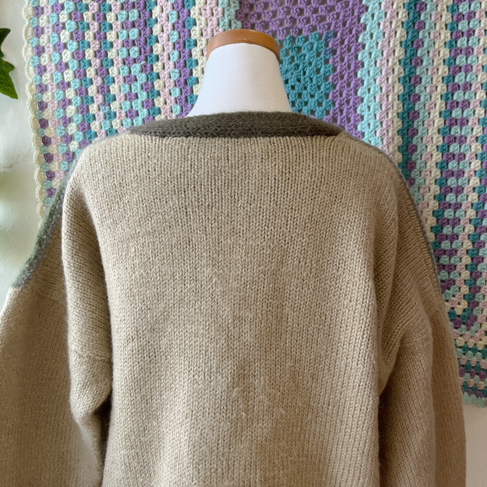 khaki&beige pattern v-neck wool cd
