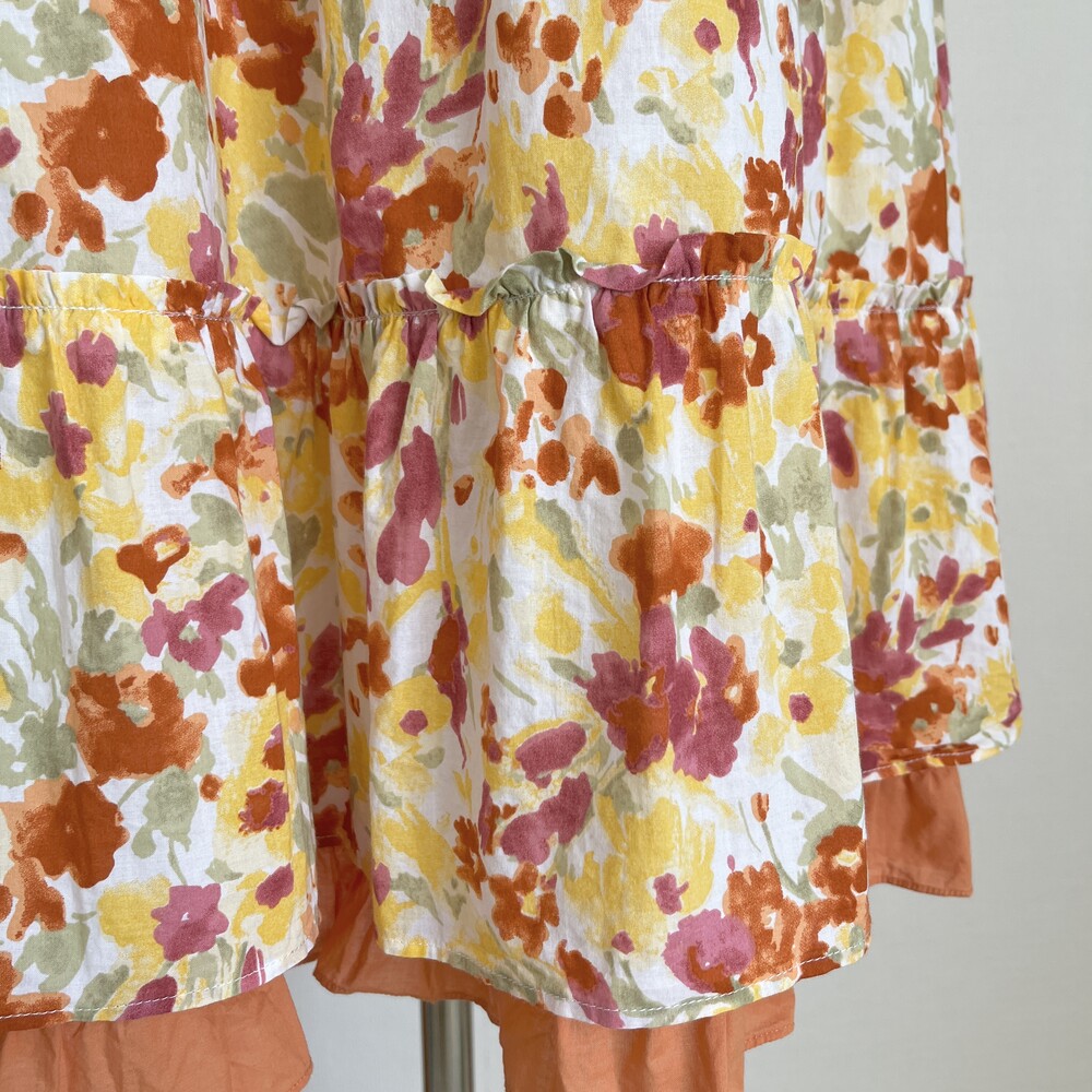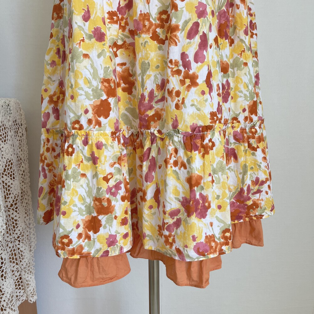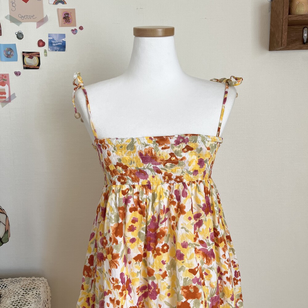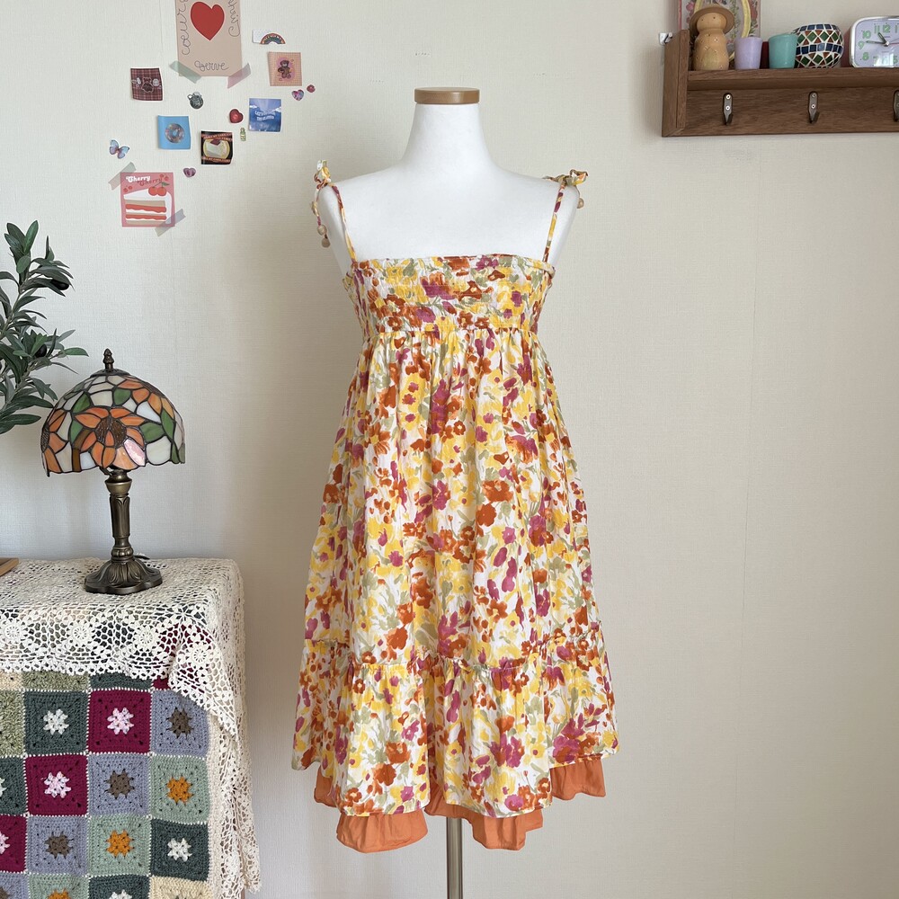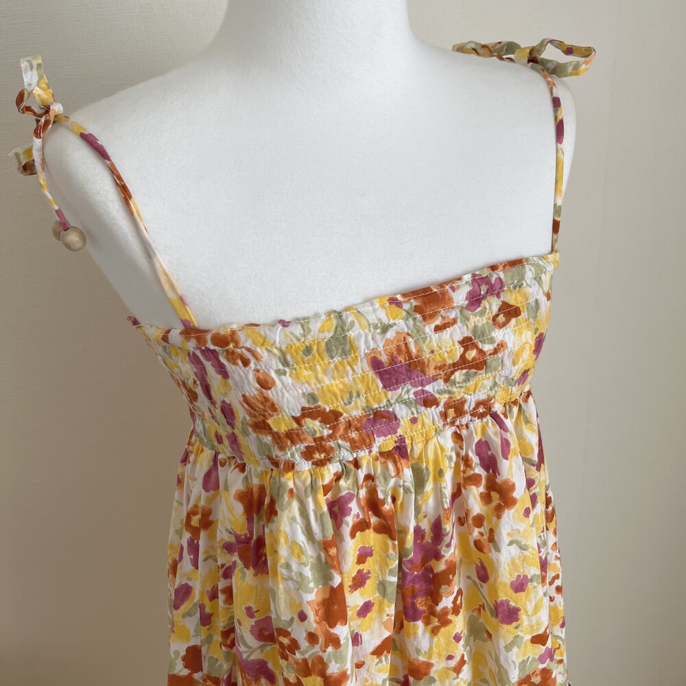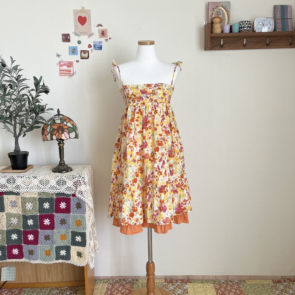 주황 노랑 색감이 섞인 코튼 끈원피스예요