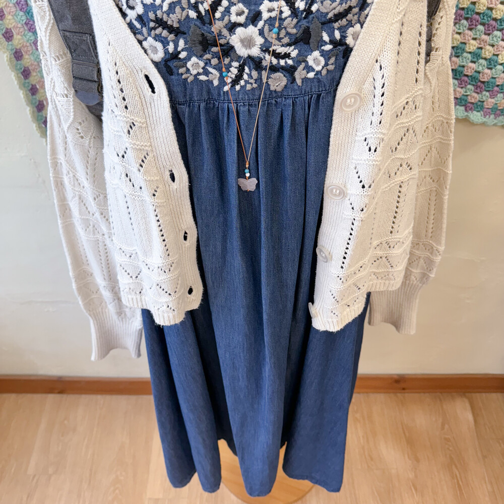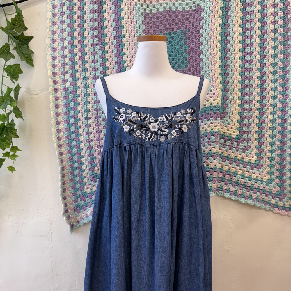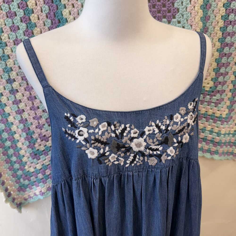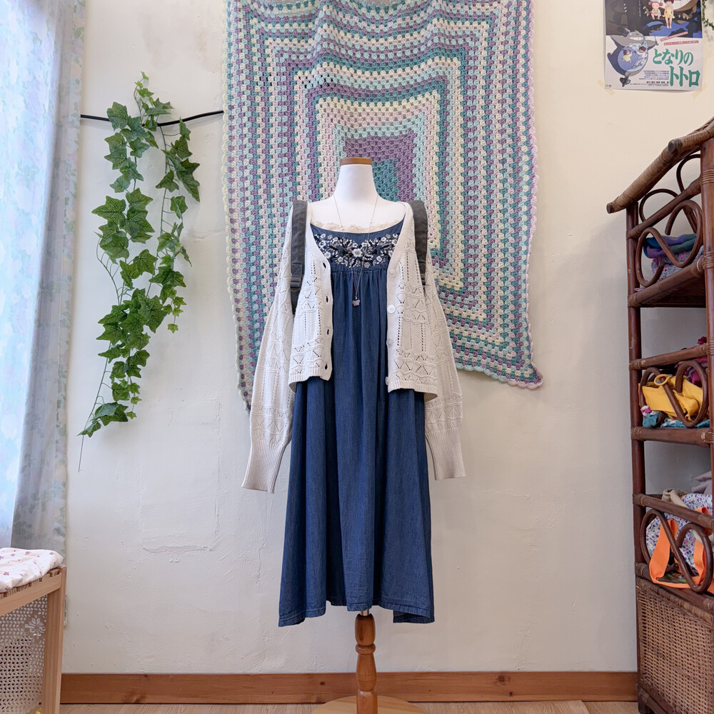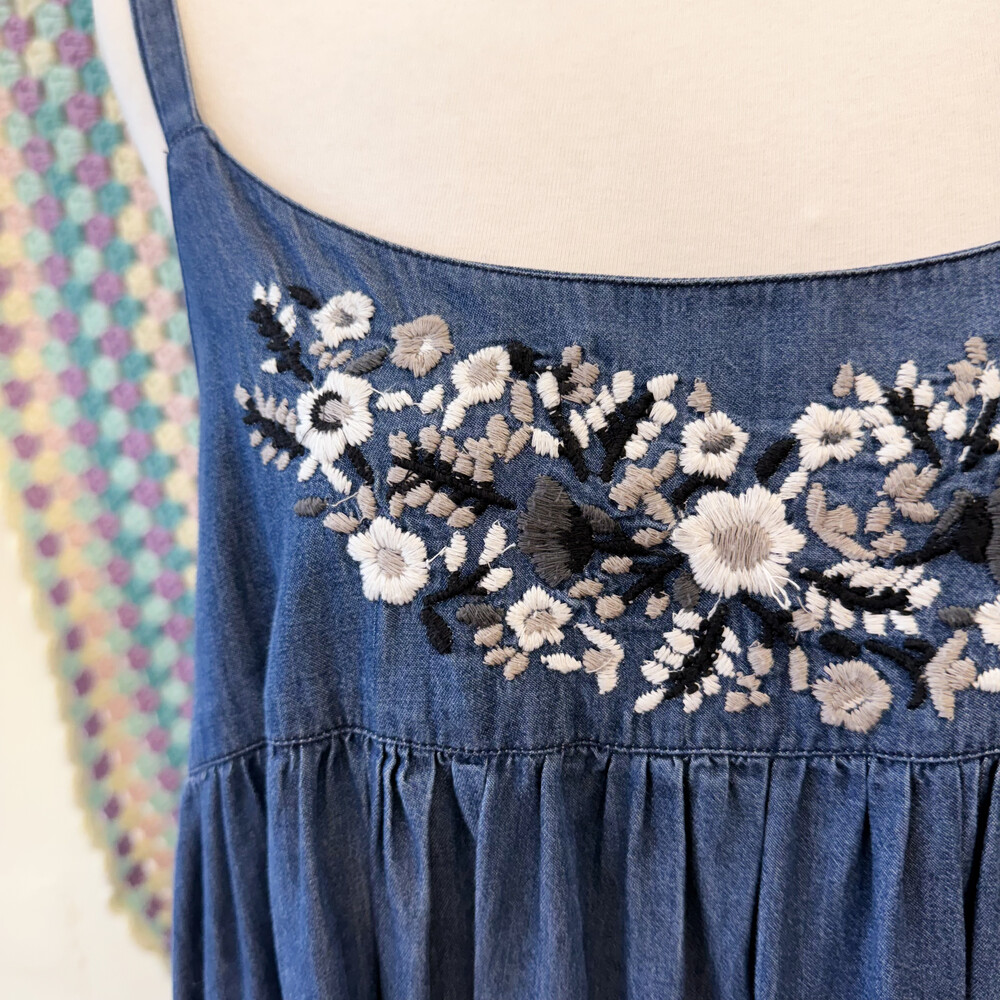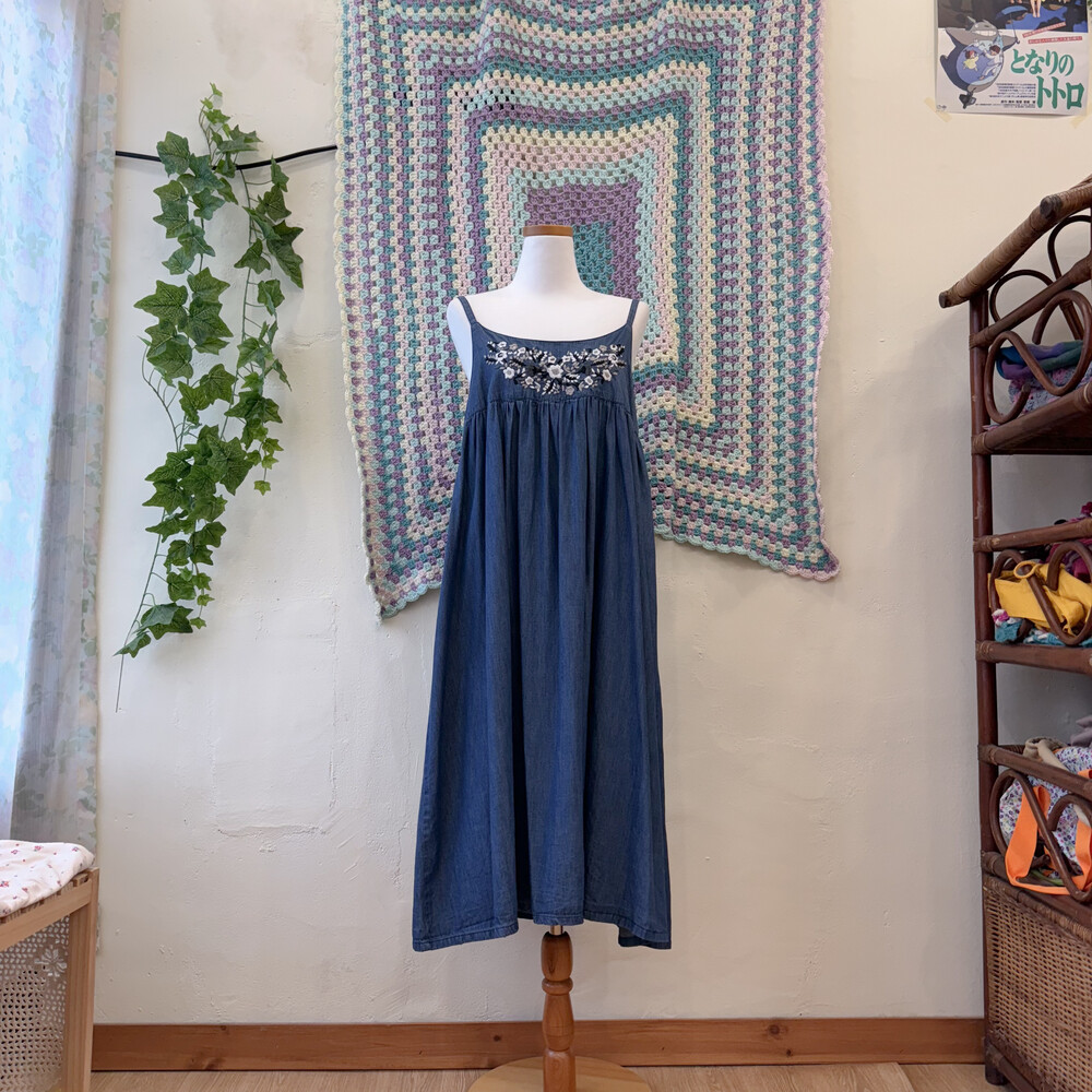 denim mute embroidery sleeveless ops