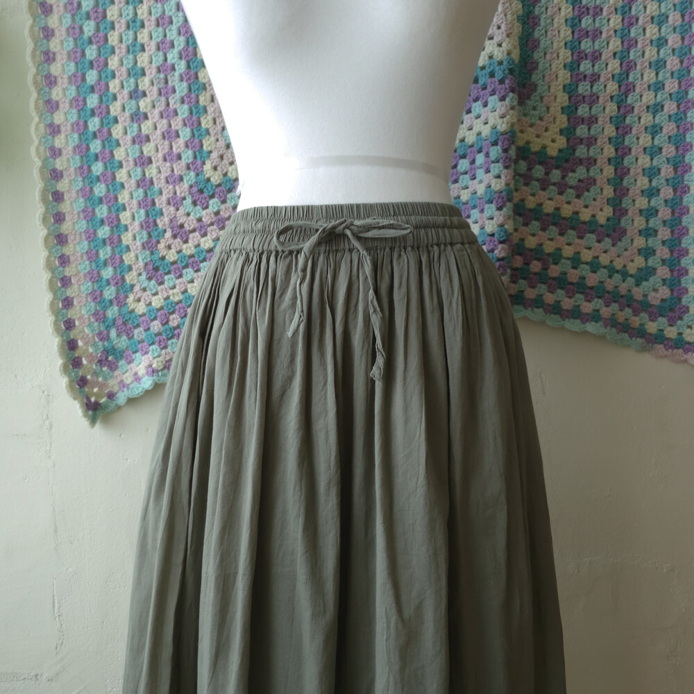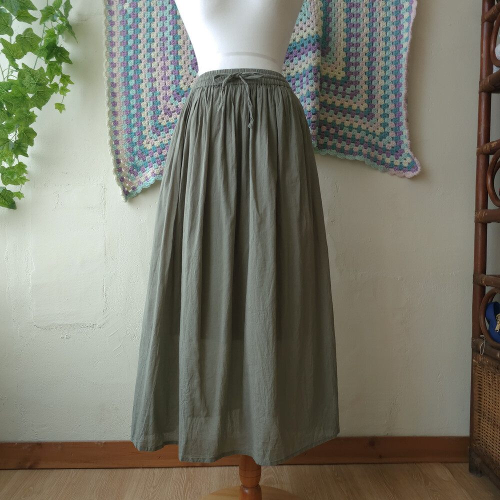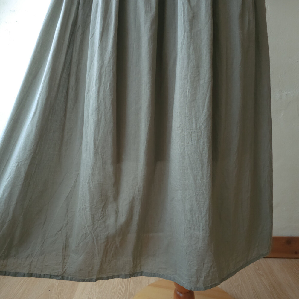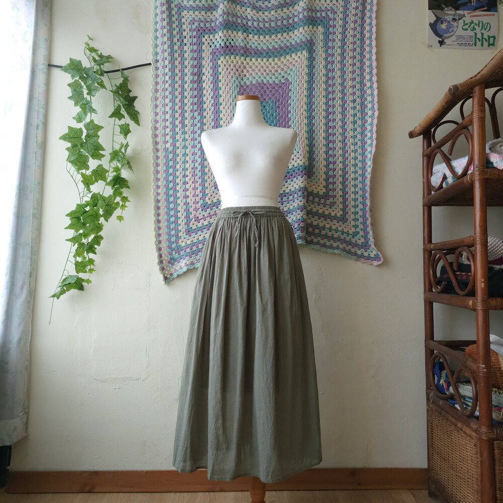 카키 색감의 코튼 플레인 스커트예요