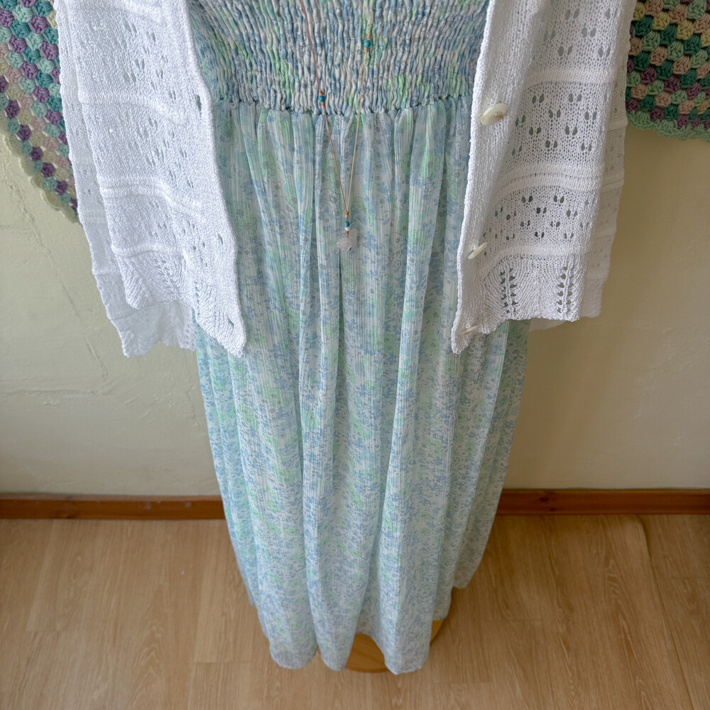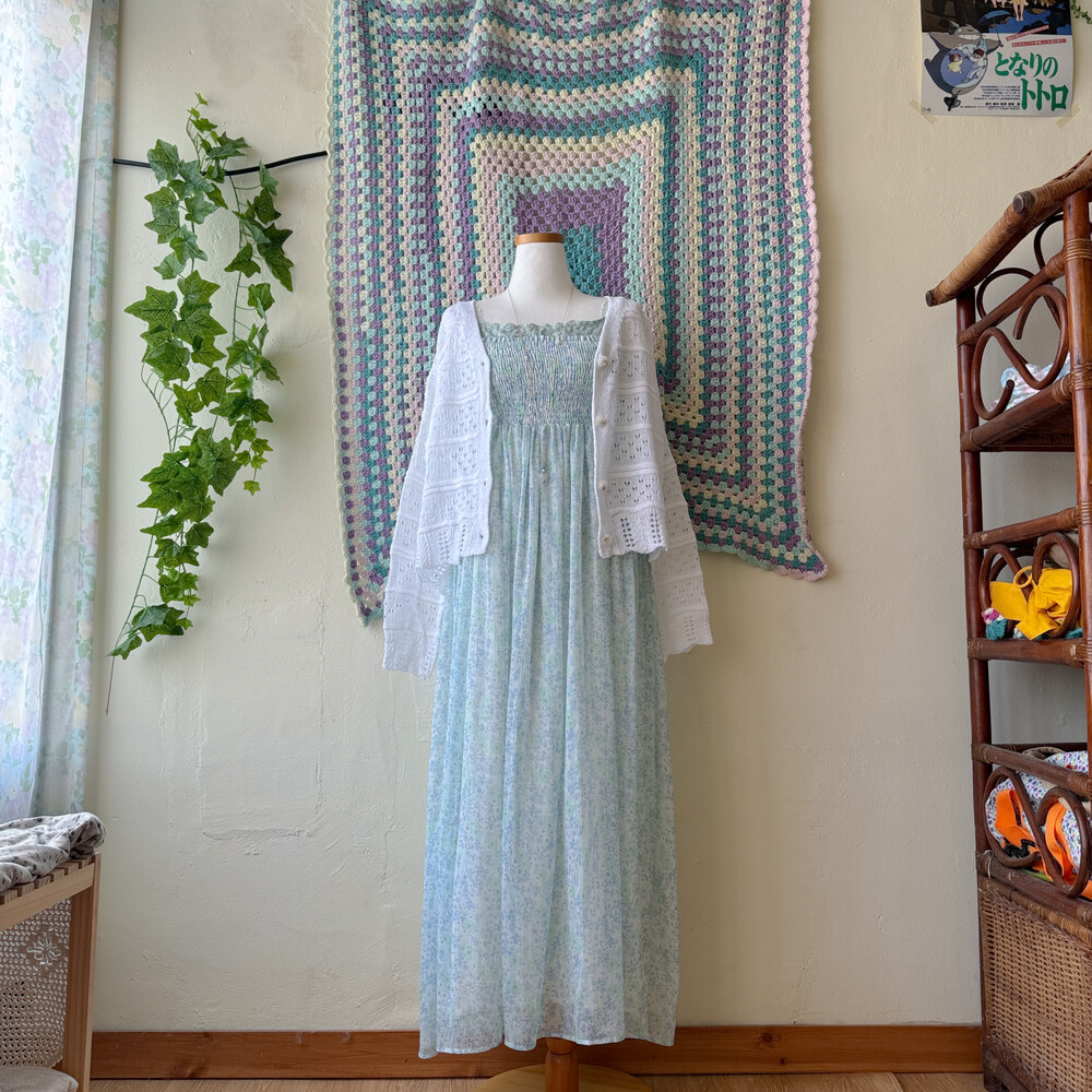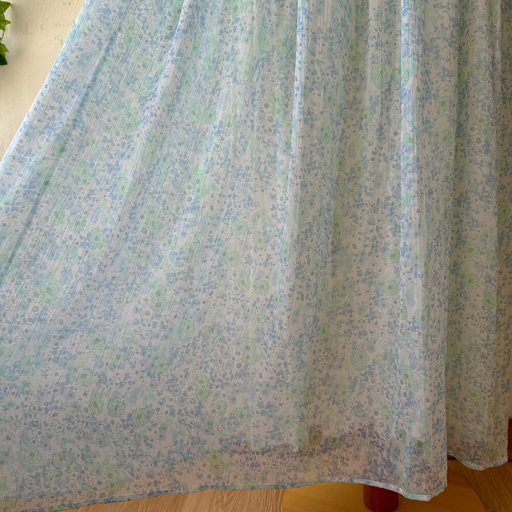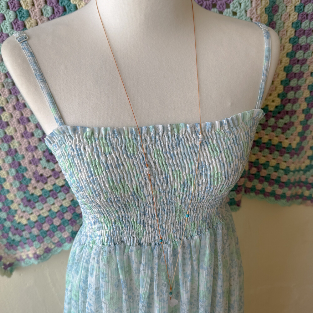 블루, 그린 색감 조합의 잔꽃 끈원피스예요