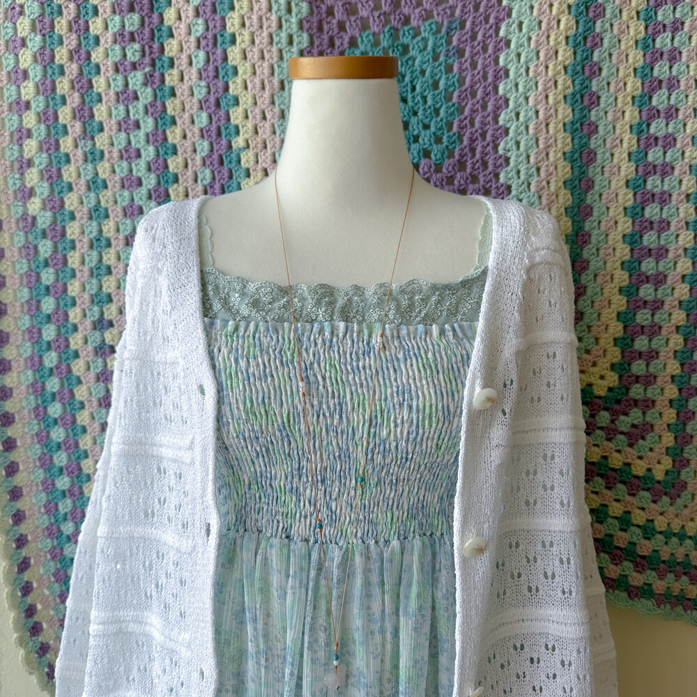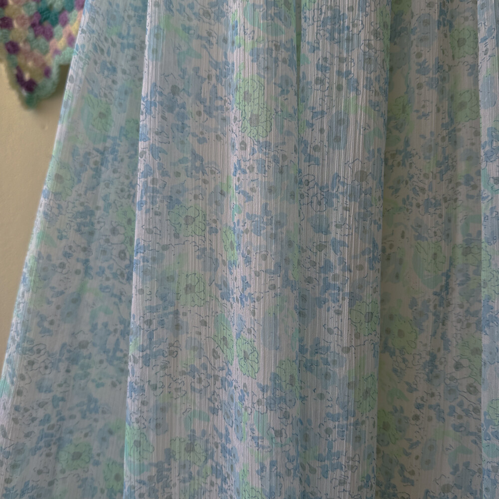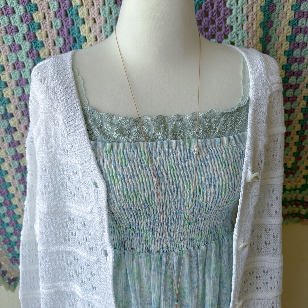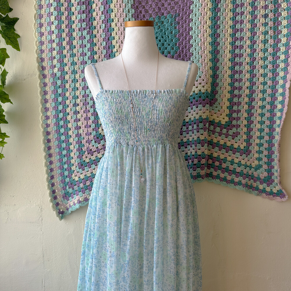 블루, 그린 색감 조합의 잔꽃 끈원피스예요